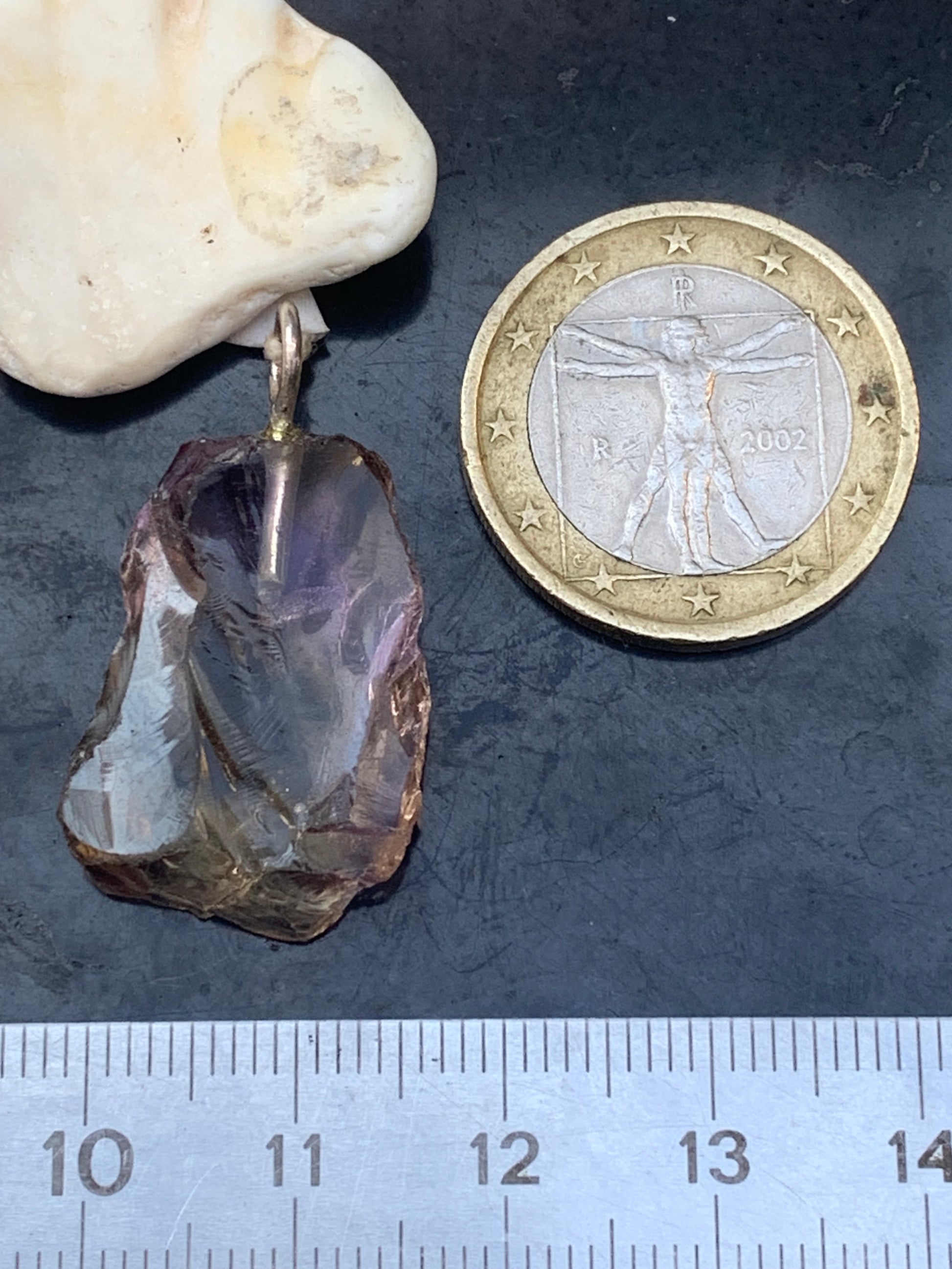 Amétrine, superbe pendentif de 32 mm de hauteur x 16 de largeur x 7 d'épaisseur. Vendu avec cordon réglable de couleur noire offert !
