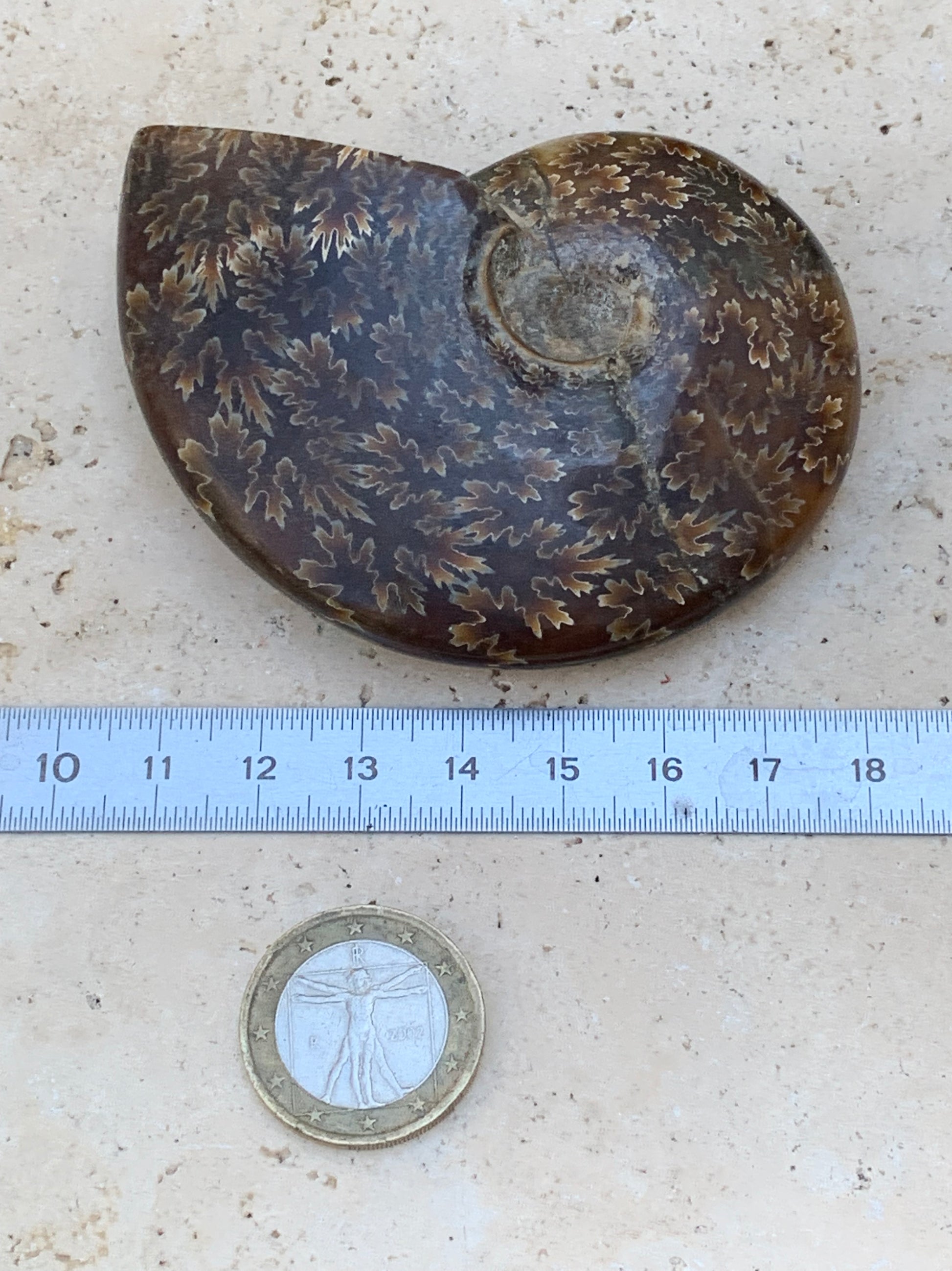 Ammonite fougĂšre, de 78mm x 63 x 22 - 124,7 grammes. Parfait pour collection, exposition...
