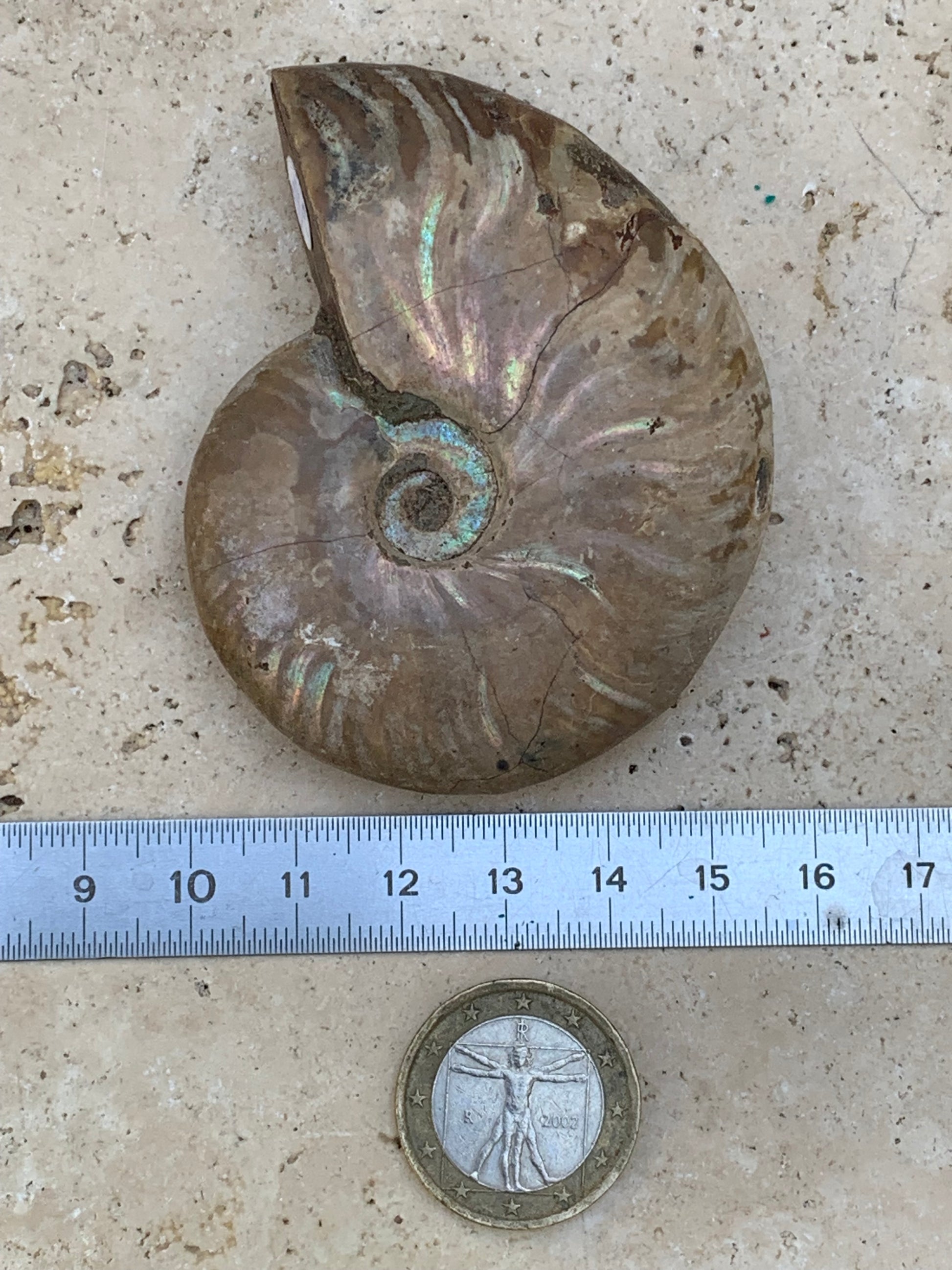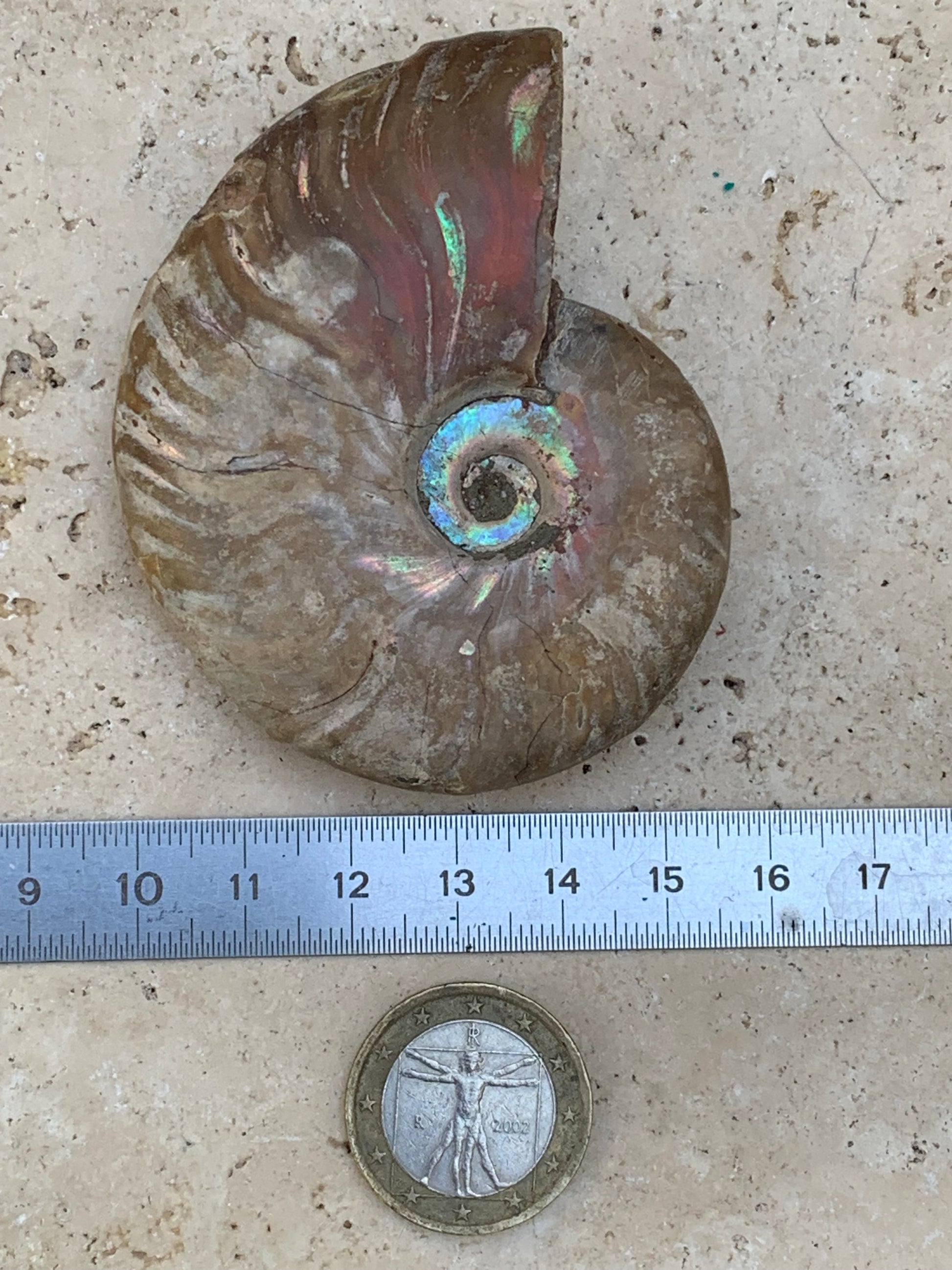 Ammonite nacrée, de 72mm x 56 x 22 - 101,6 grammes. Parfait pour collection, exposition...