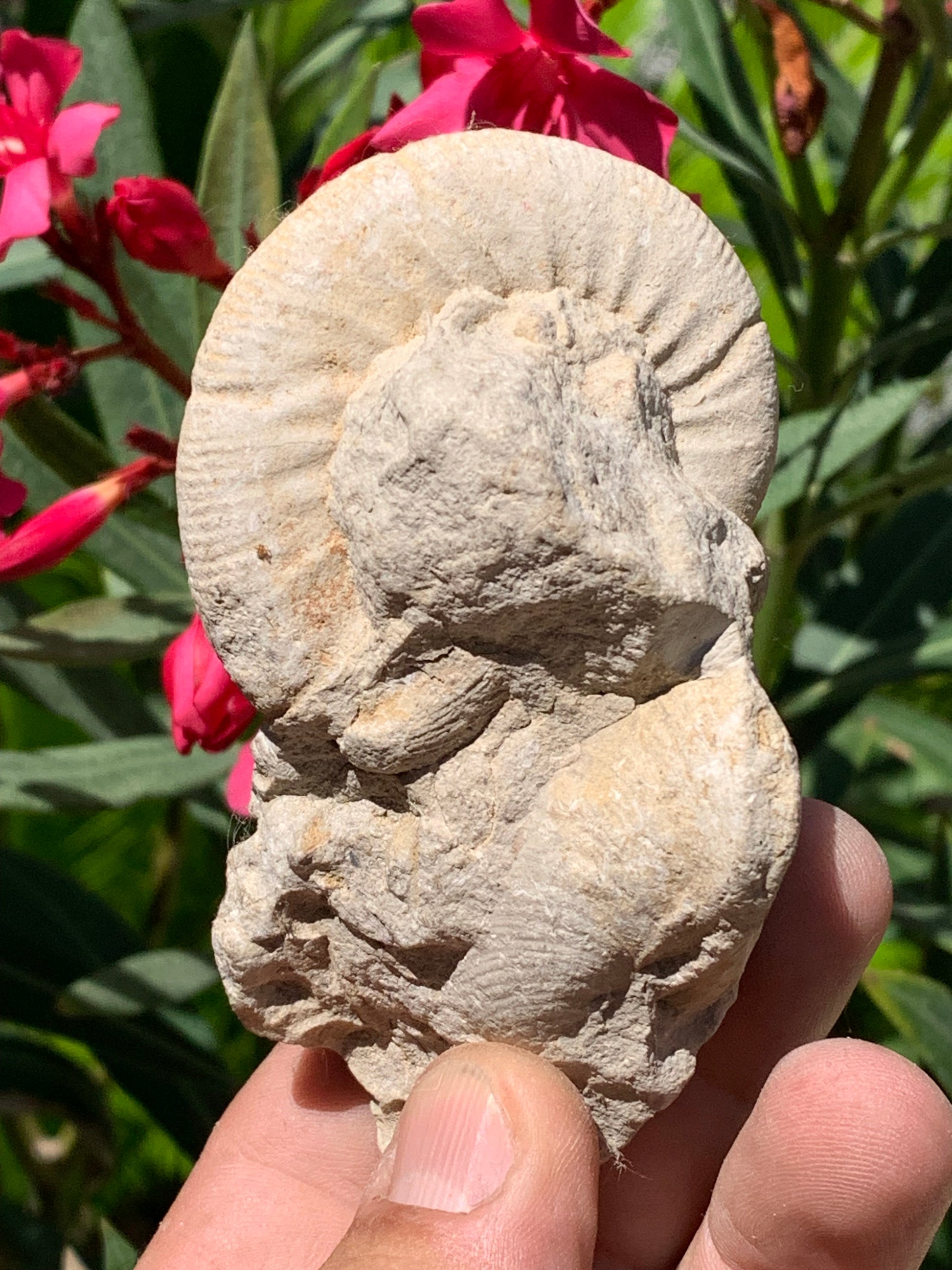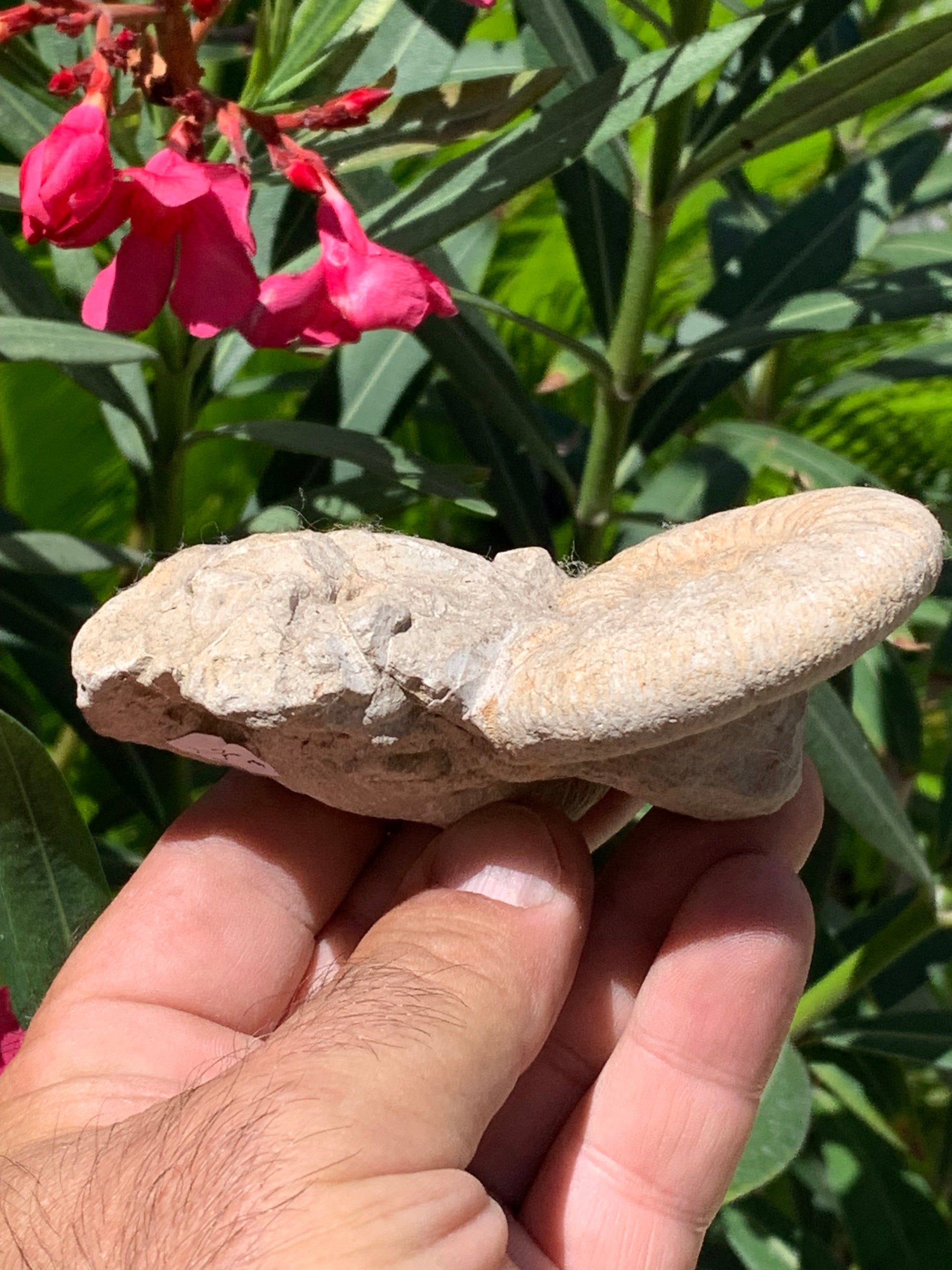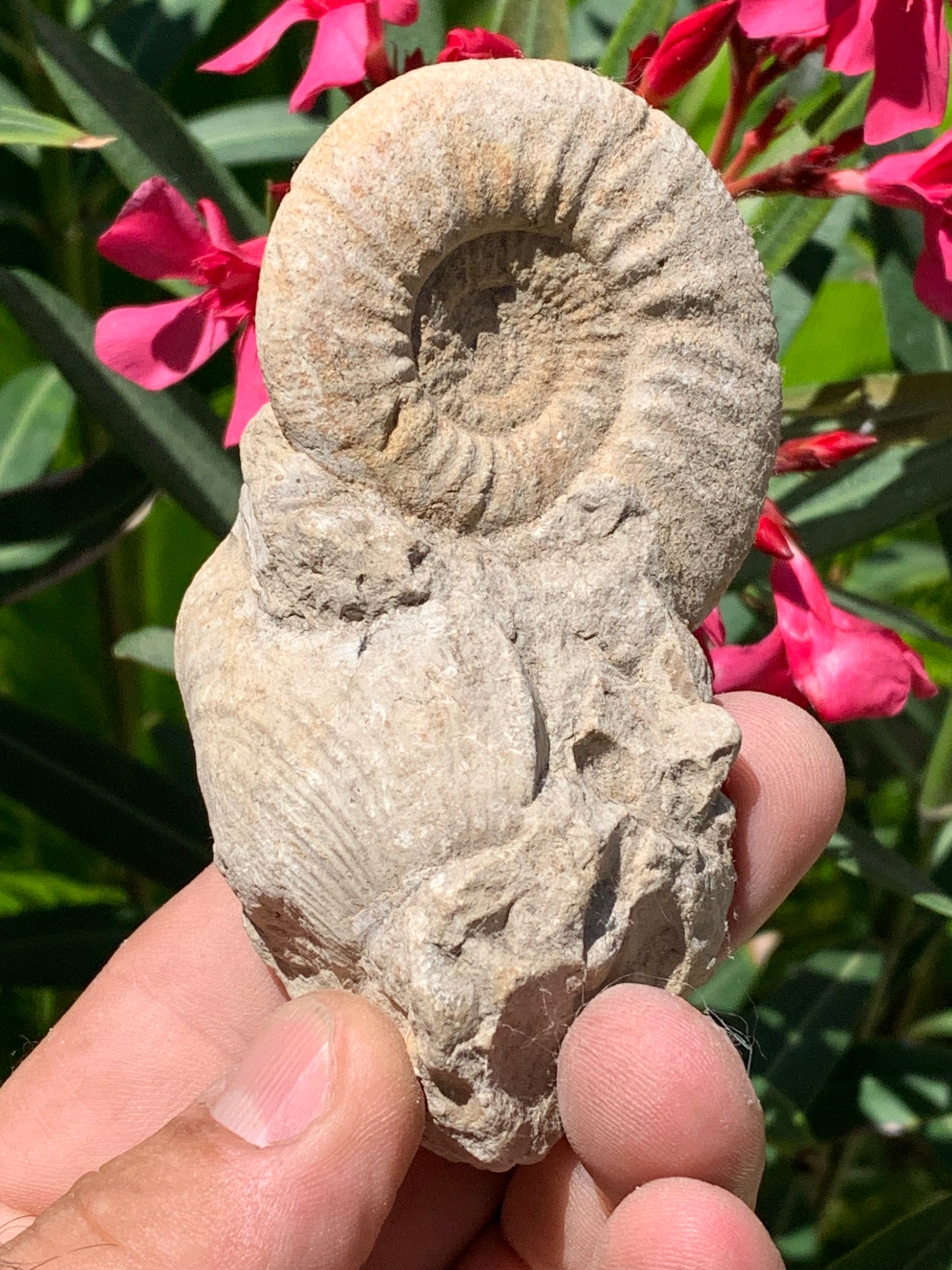 🪨 Type de Fossile : Ammonite naturelle en calcaire avec coquillage (Palourde)