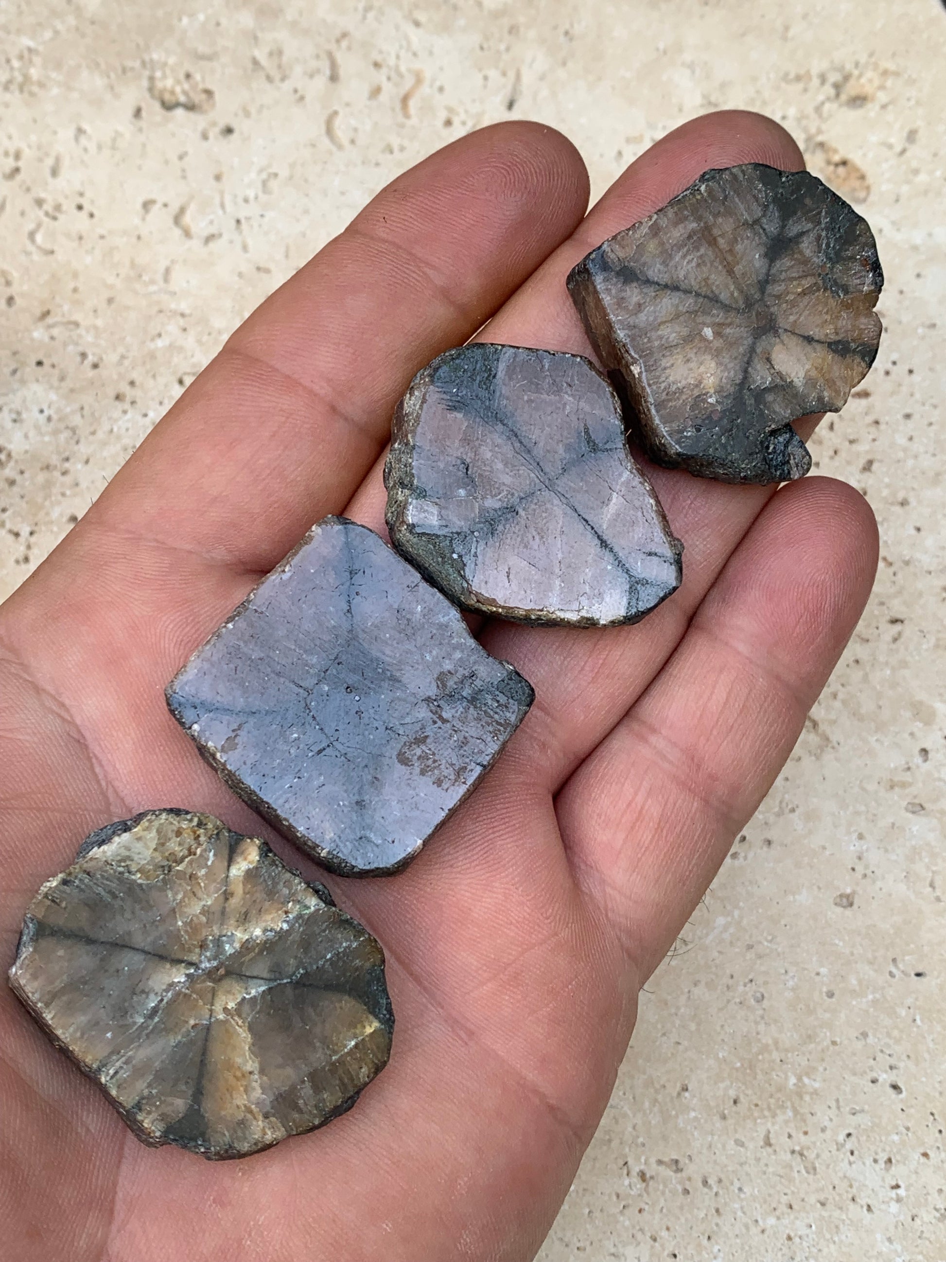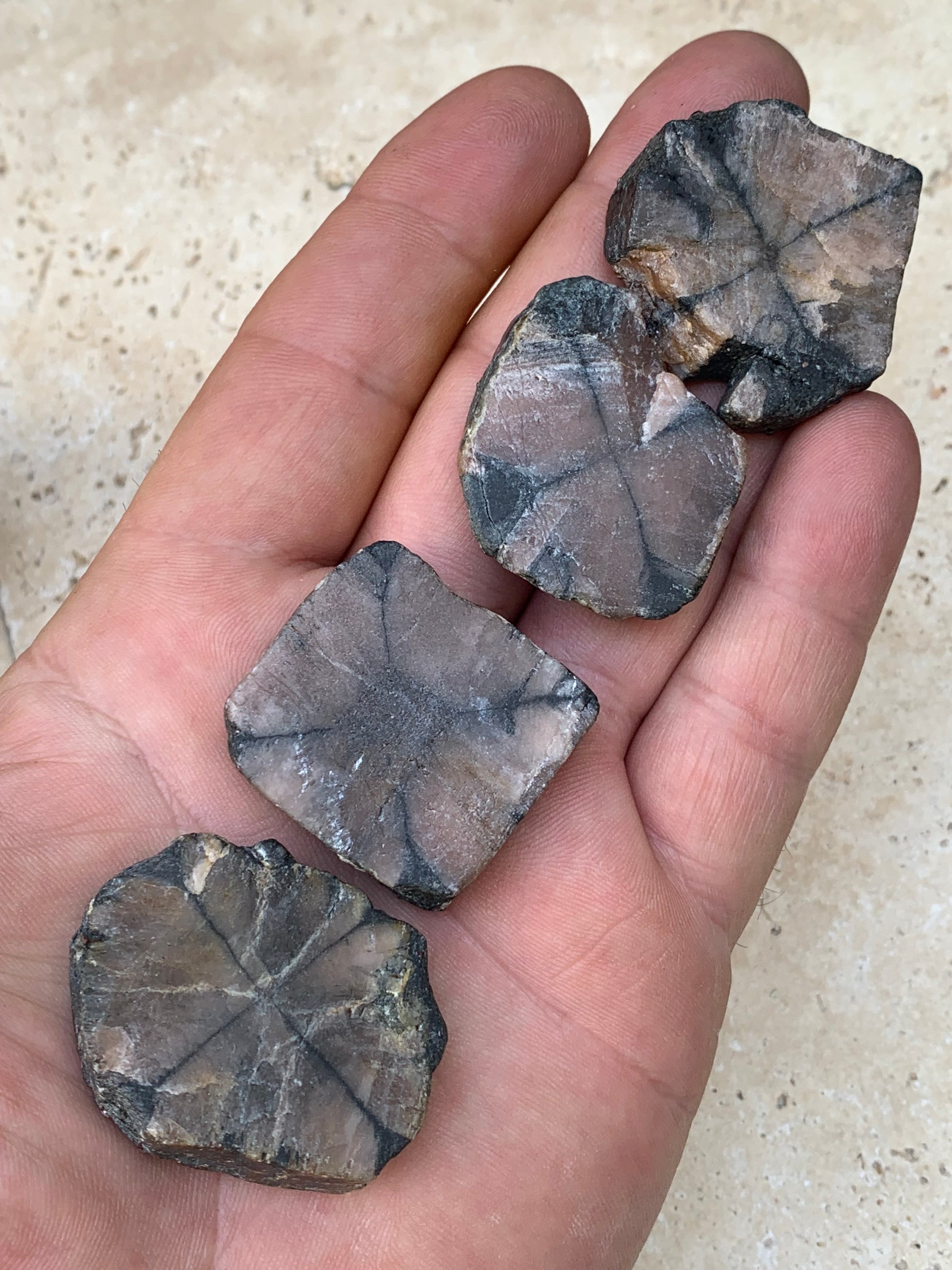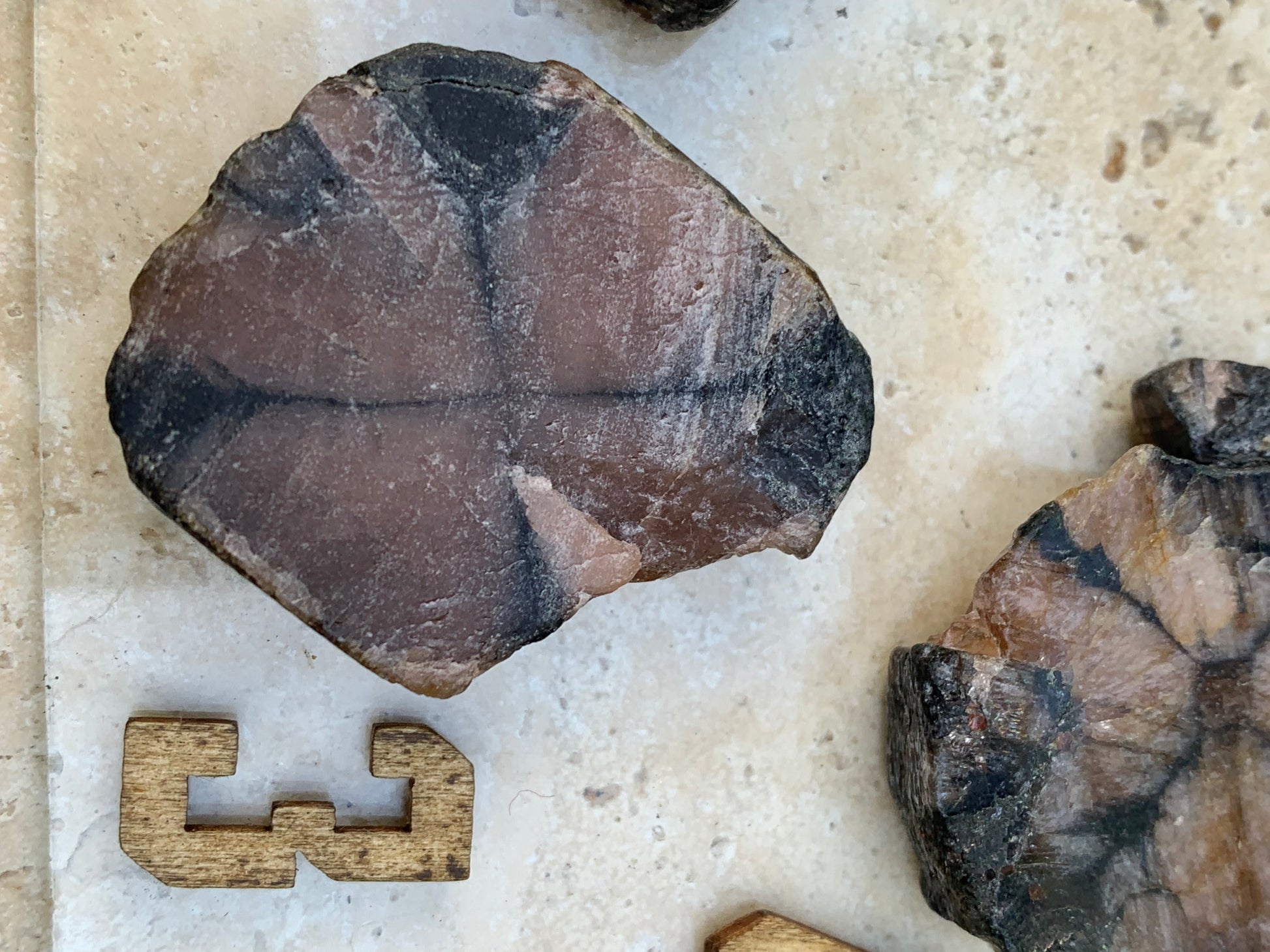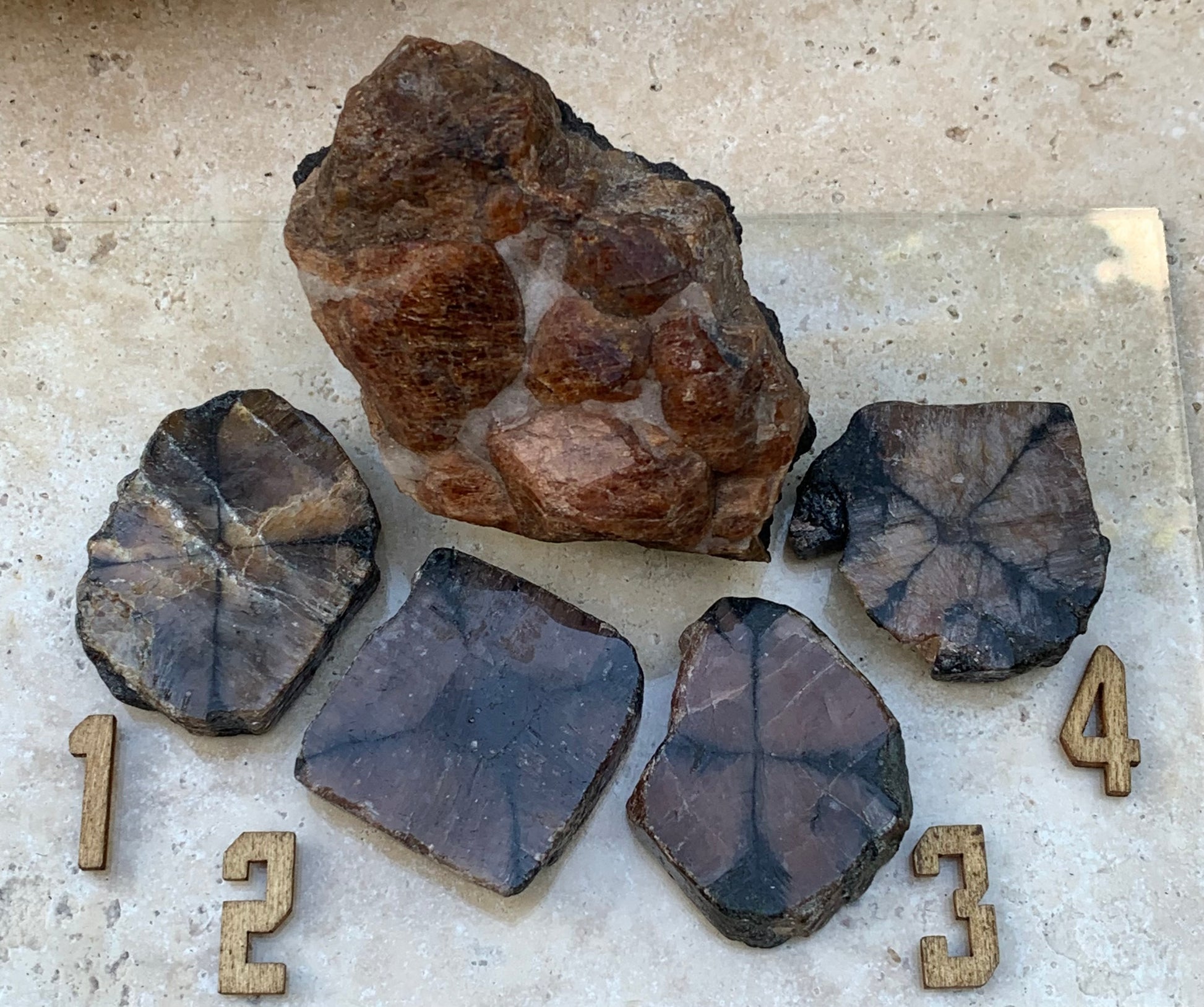 Andalousite/ Chiastolite, 5 pièces au choix dont 4 sciés avec une croix naturelle ! Protection, ancrage, transmutation, harmonie et plus encore !