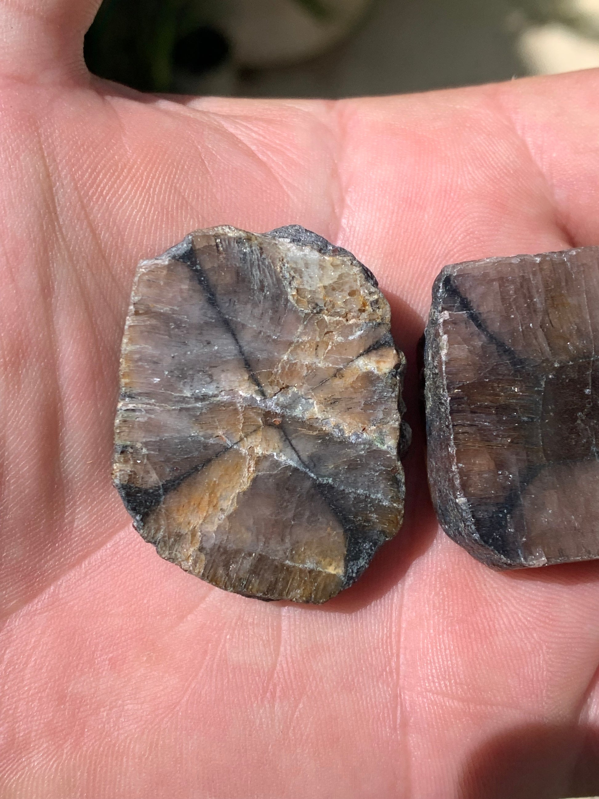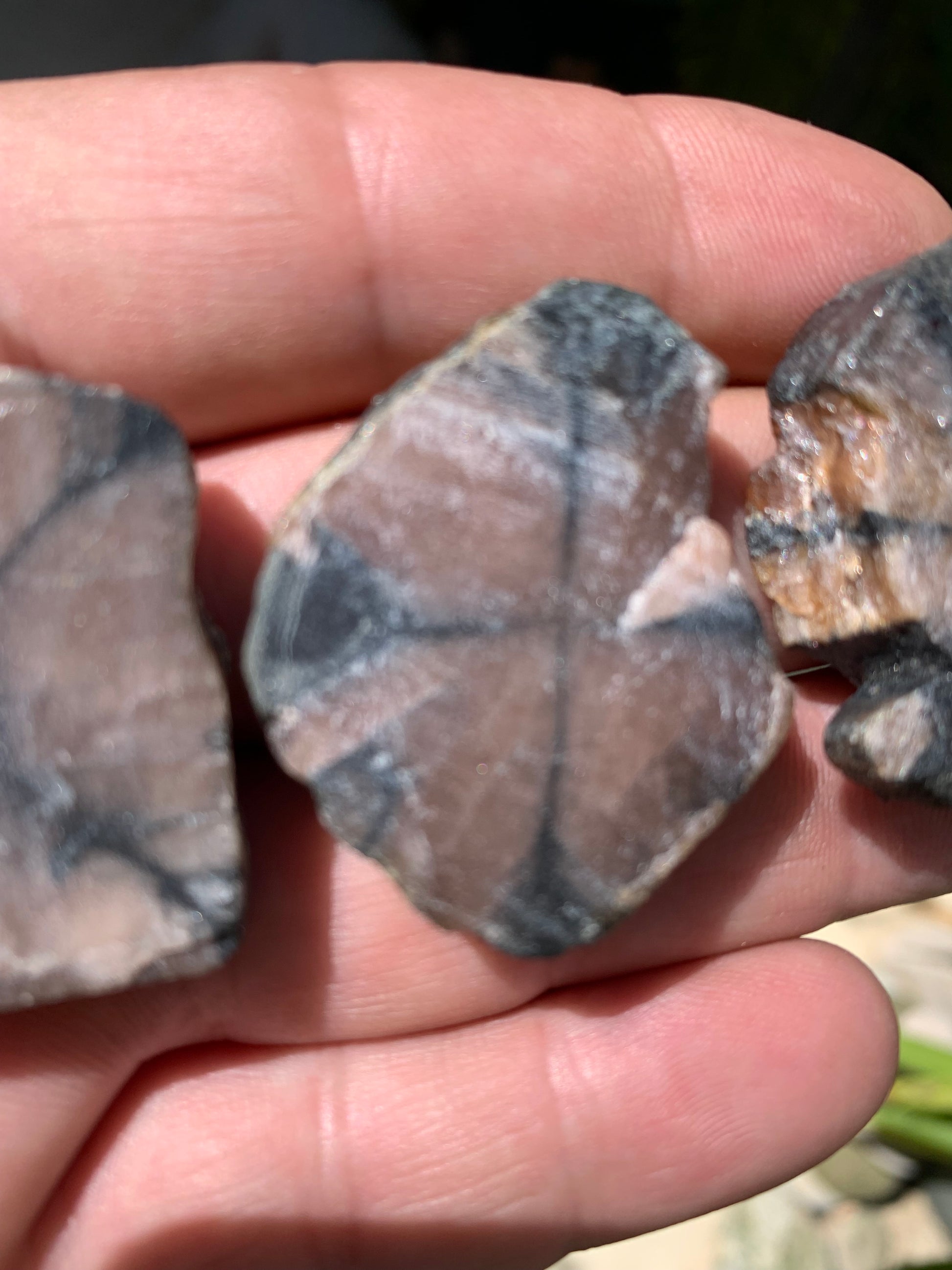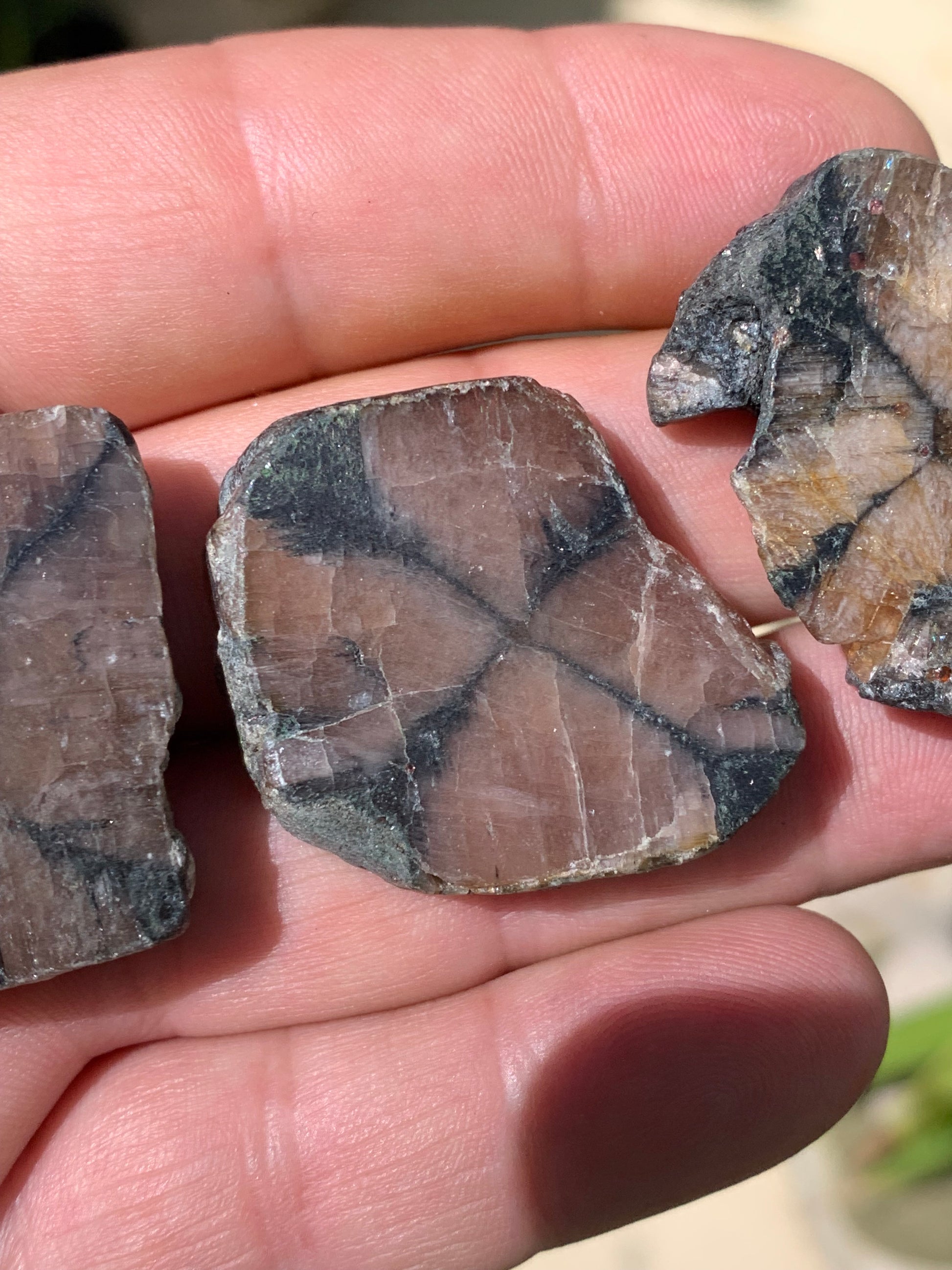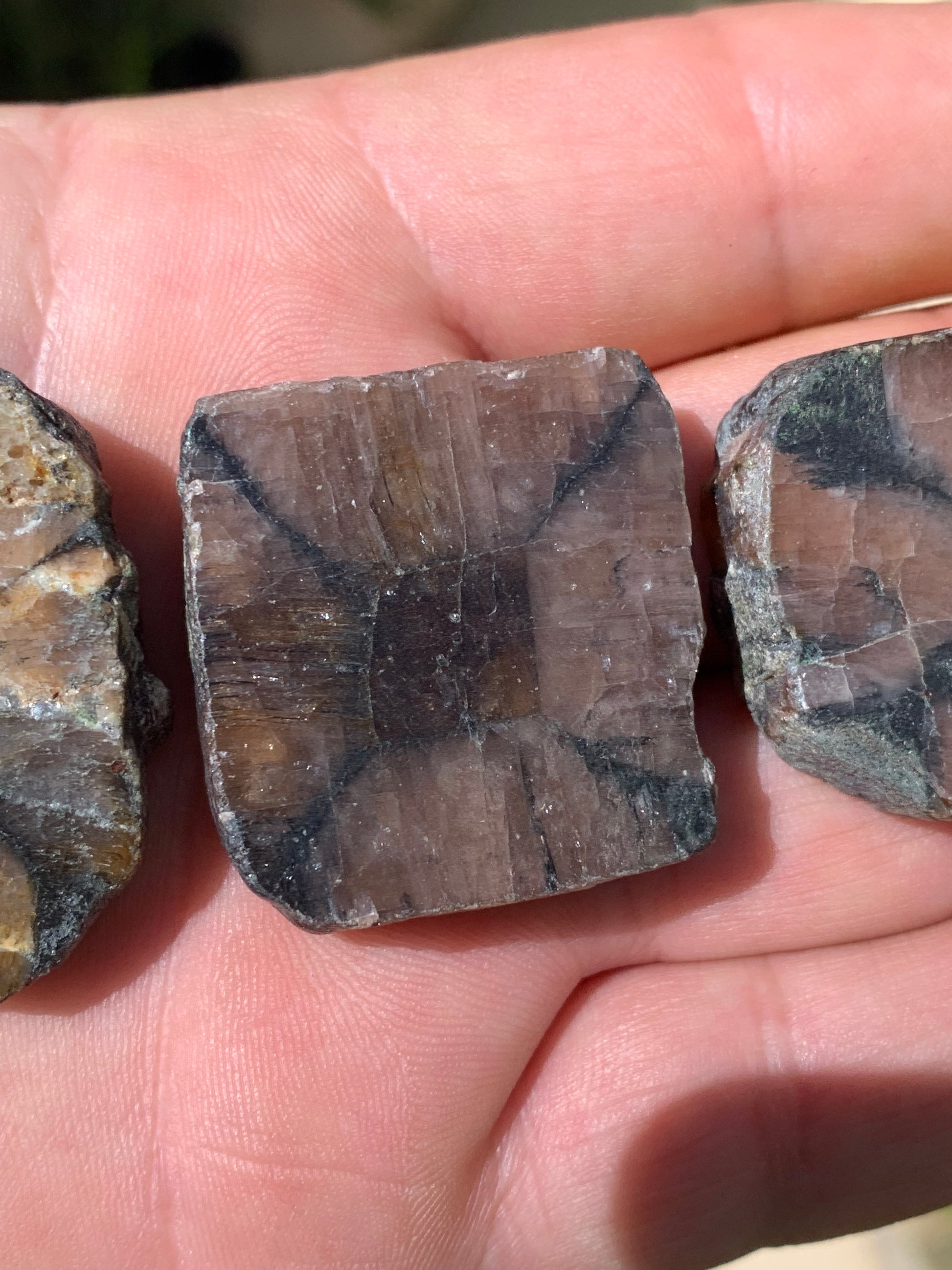 Andalousite/ Chiastolite, 5 pièces au choix dont 4 sciés avec une croix naturelle ! Protection, ancrage, transmutation, harmonie et plus encore !