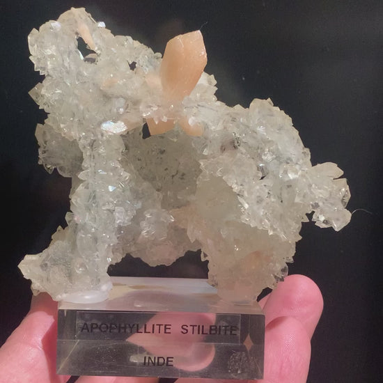 Apophyllite avec Stilbite sur socle – Superbe spécimen naturel, pièce de collection - 📽️ Vidéo disponible