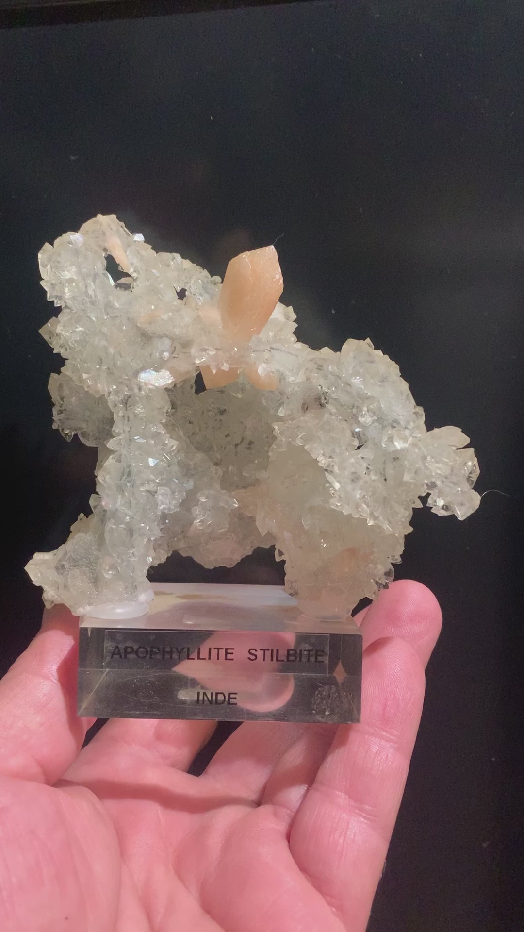 🪨 Type de minéral : Apophyllite avec Stilbite sur socle en plexiglas