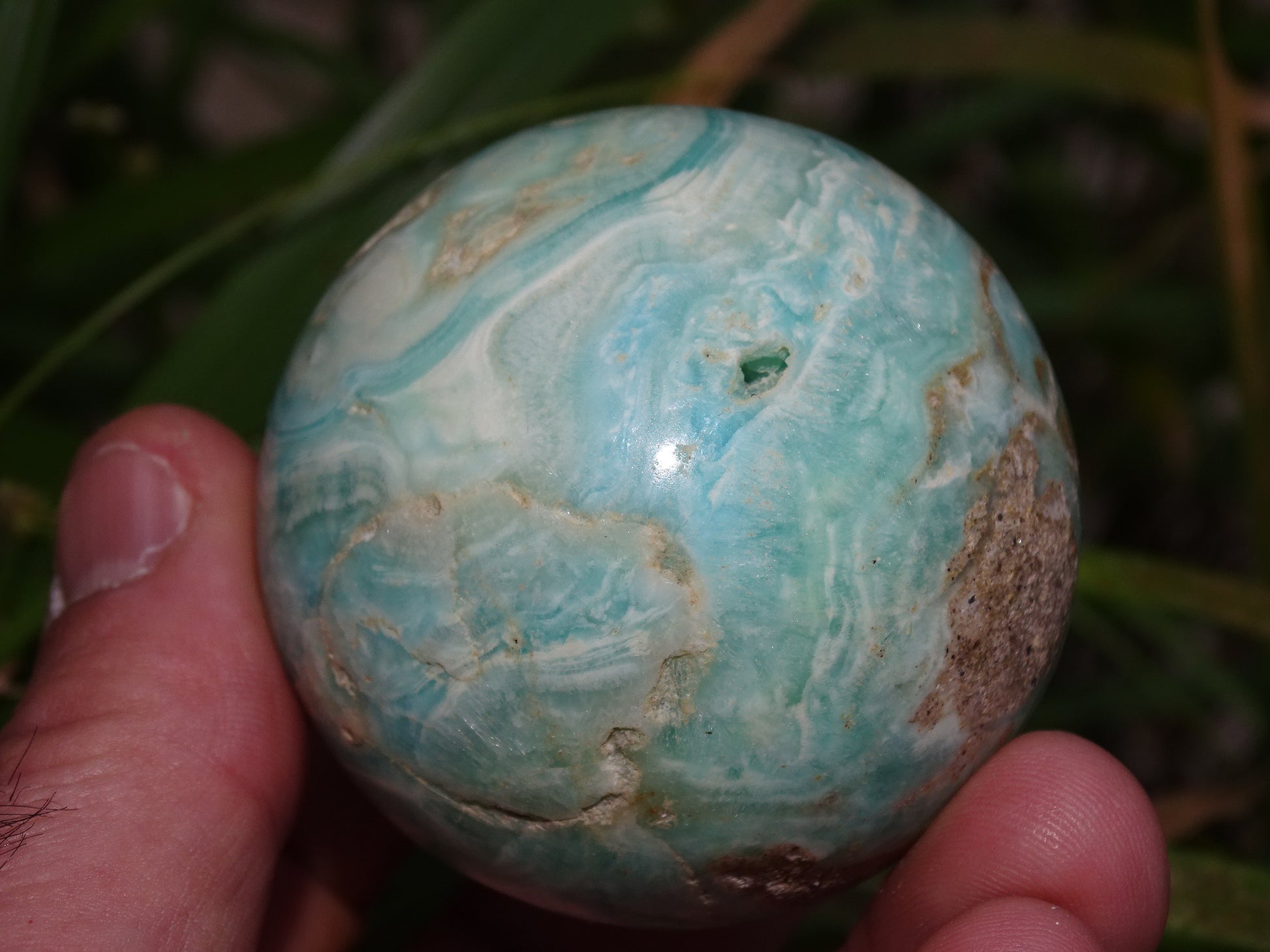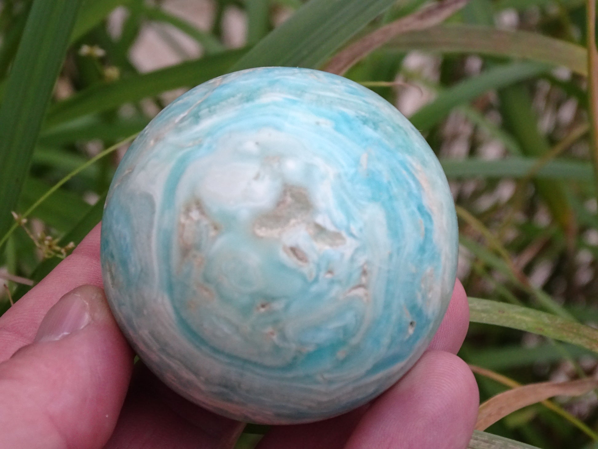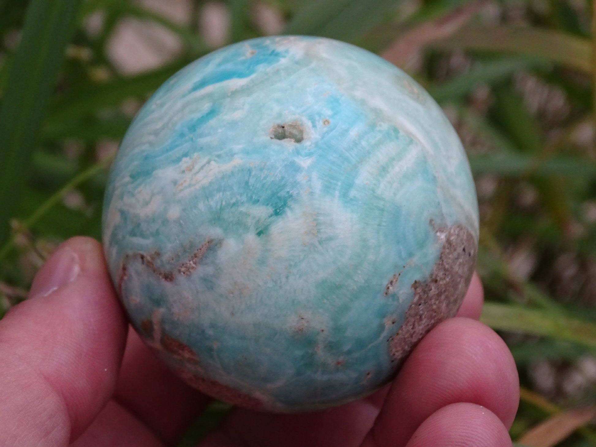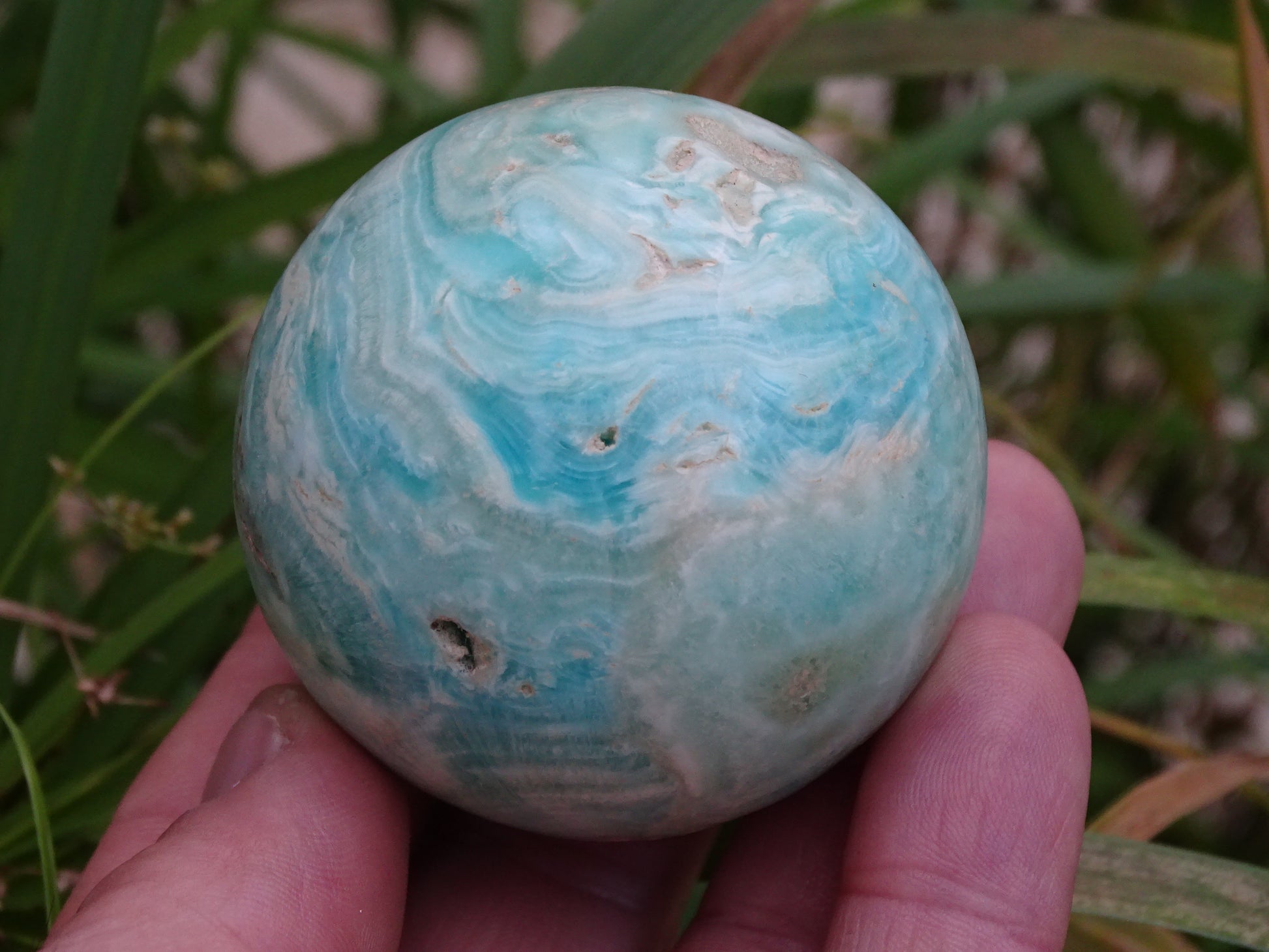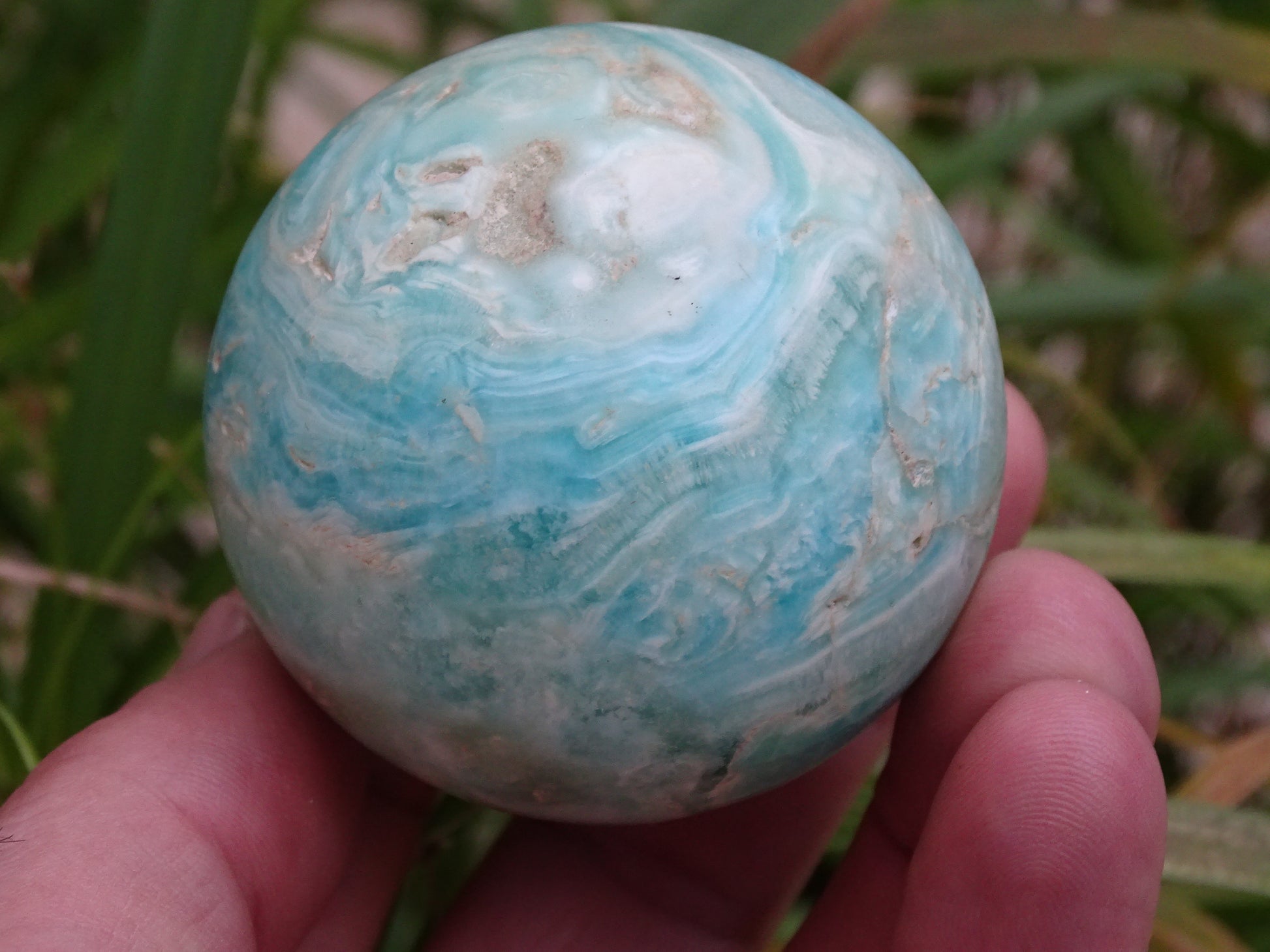 Aragonite Bleue, sphère de 58 millimètres - 280 grammes. une pierre naturellement belle ! Parfait pour la lithothérapie, collection, exposition...!
