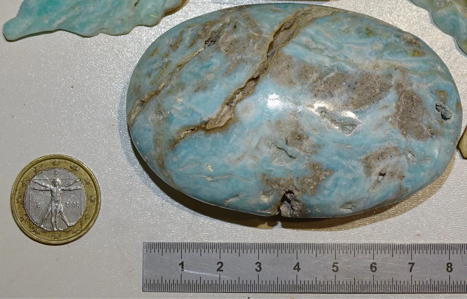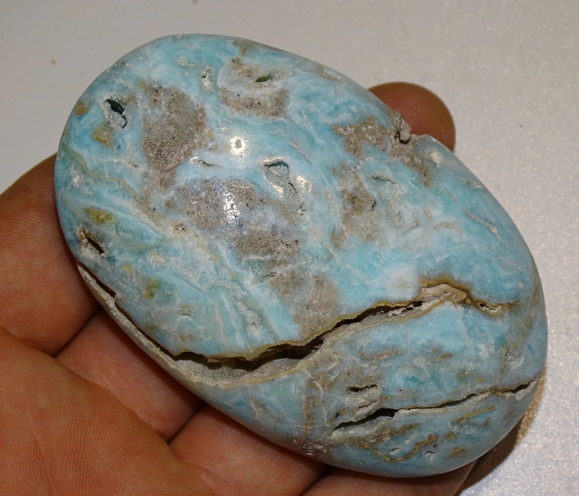 Calcite Aragonite Bleue, superbe galet de 90 x 60 x 20mm - 40 grammes. Superbe pièce !
