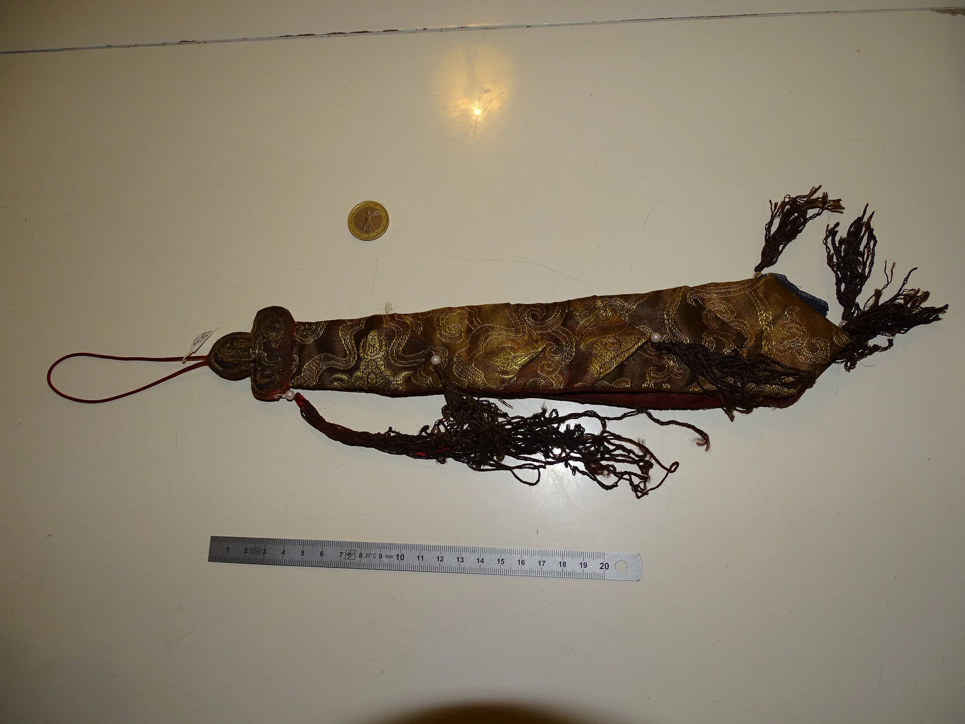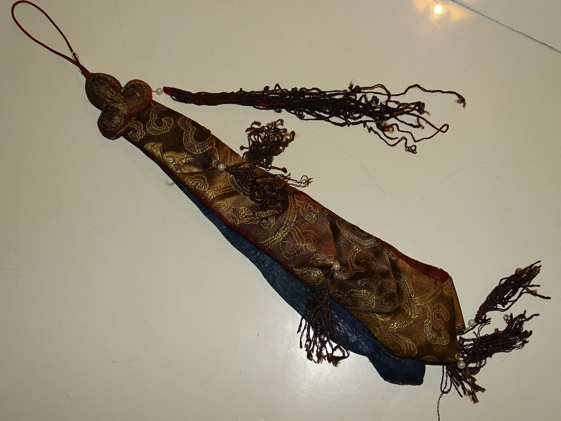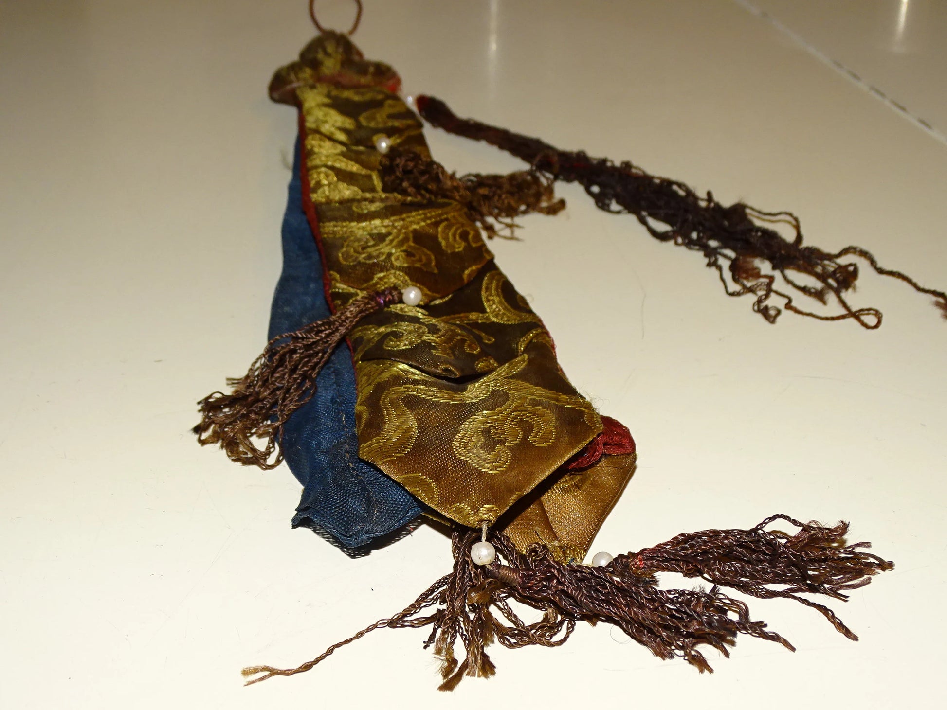 Authentique cravate/ frange Bouddhiste, 30 x 6 centimètres + franges, superbe pièce en textile typique du Népal ou Tibet !