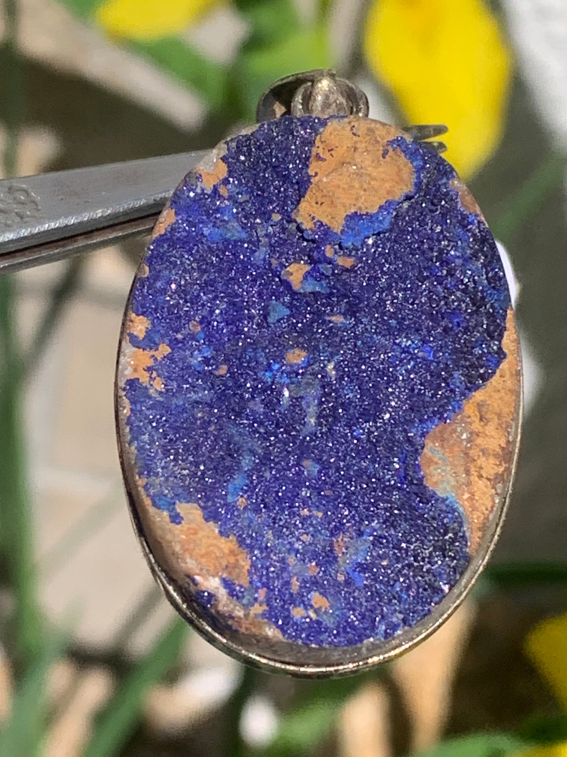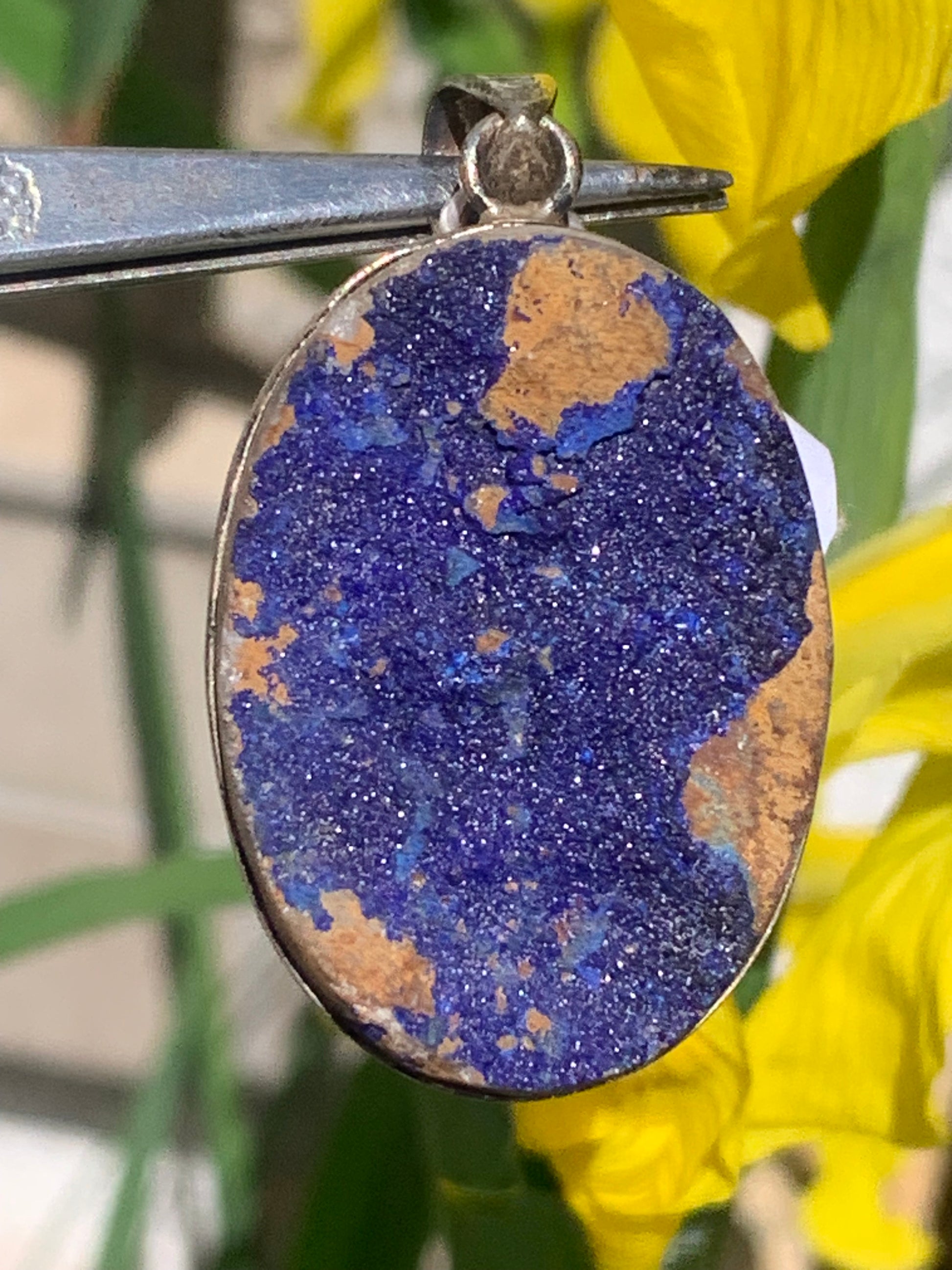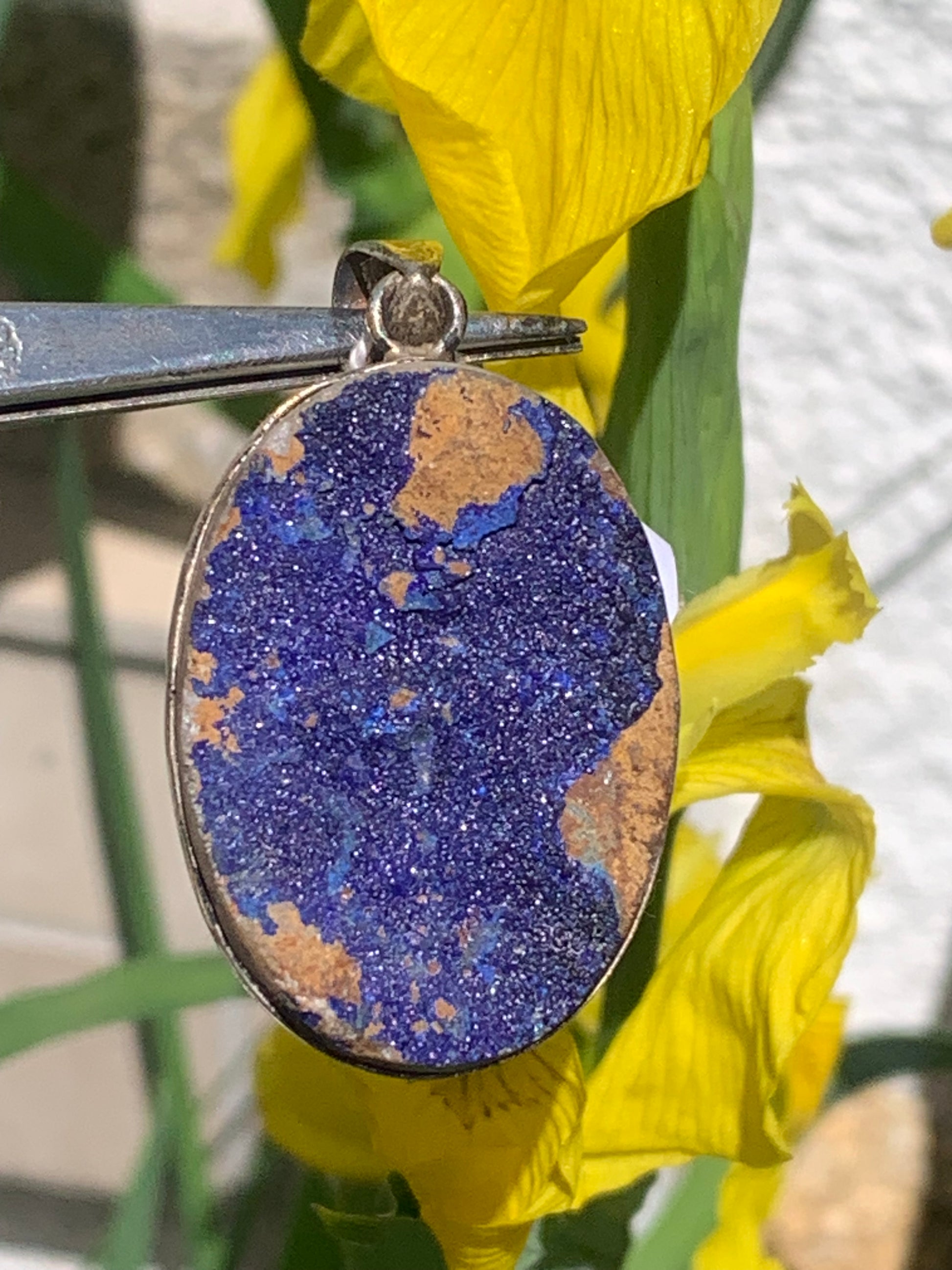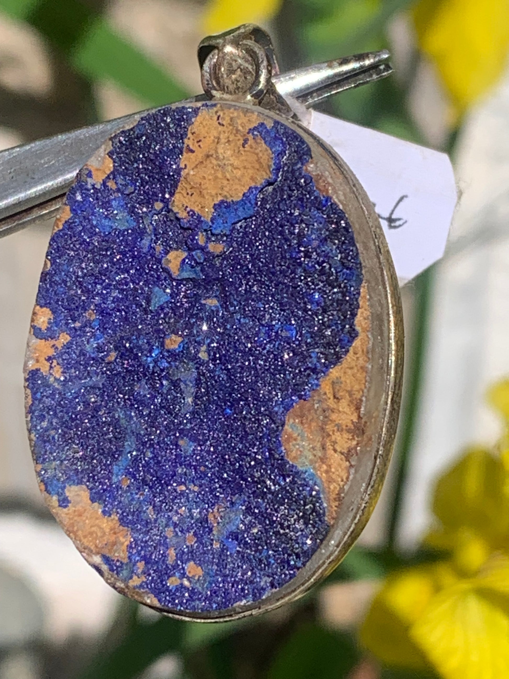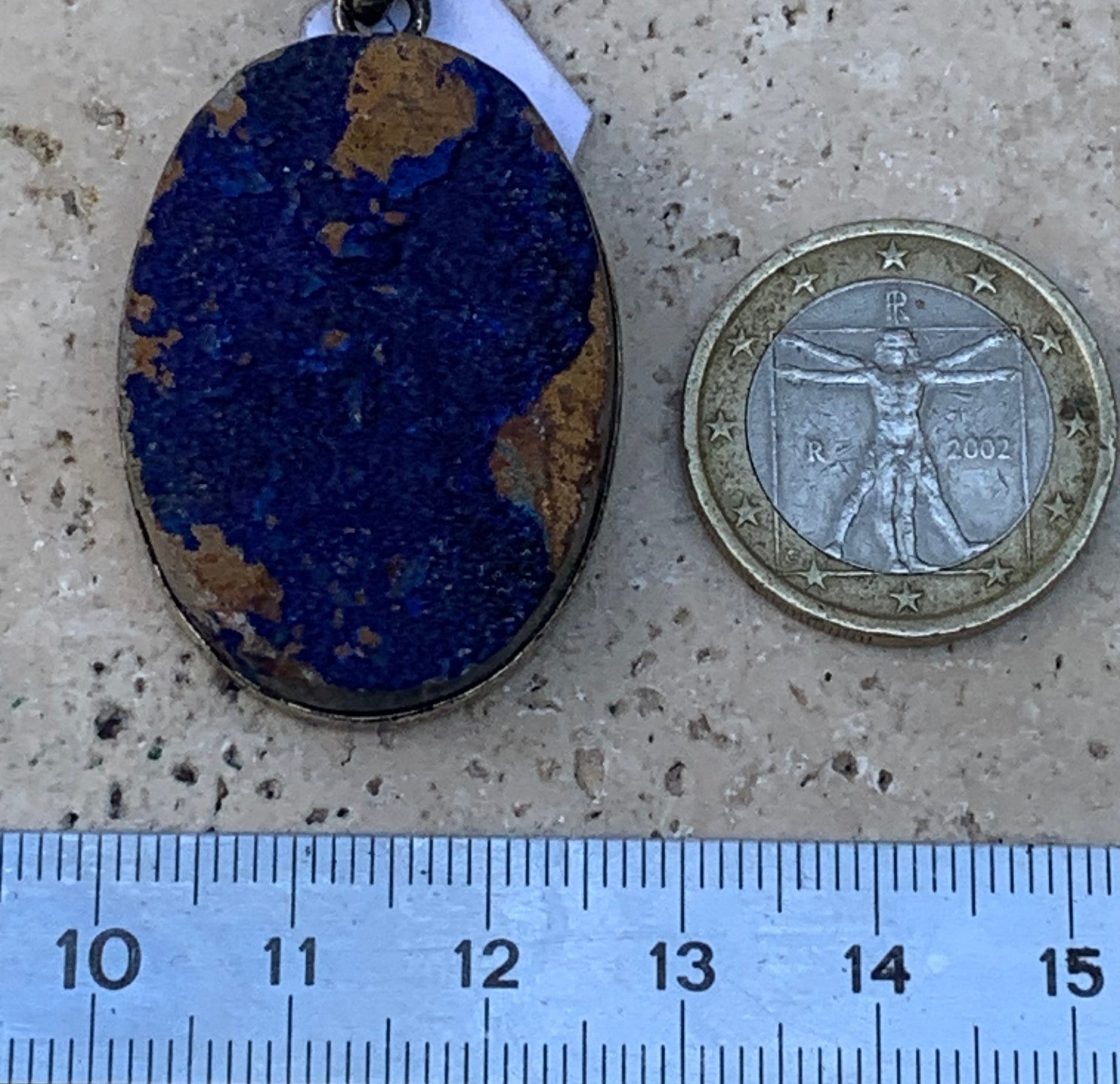 Azurite, pendentif en Argent de 47mm de hauteur x 27 de largeur x 8 d'épaisseur. Vendu avec cordon réglable de couleur noire offert !