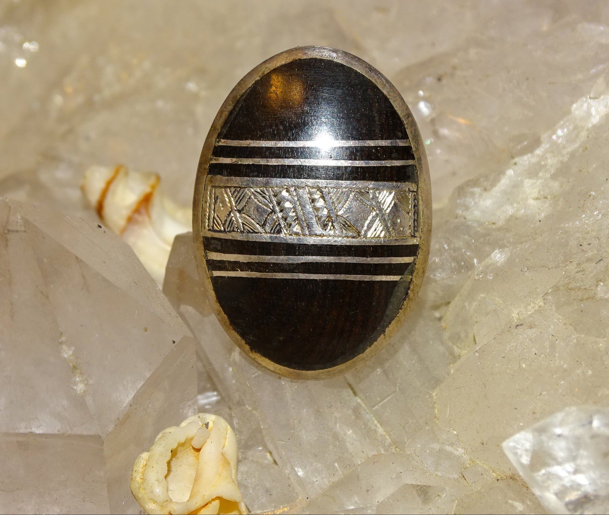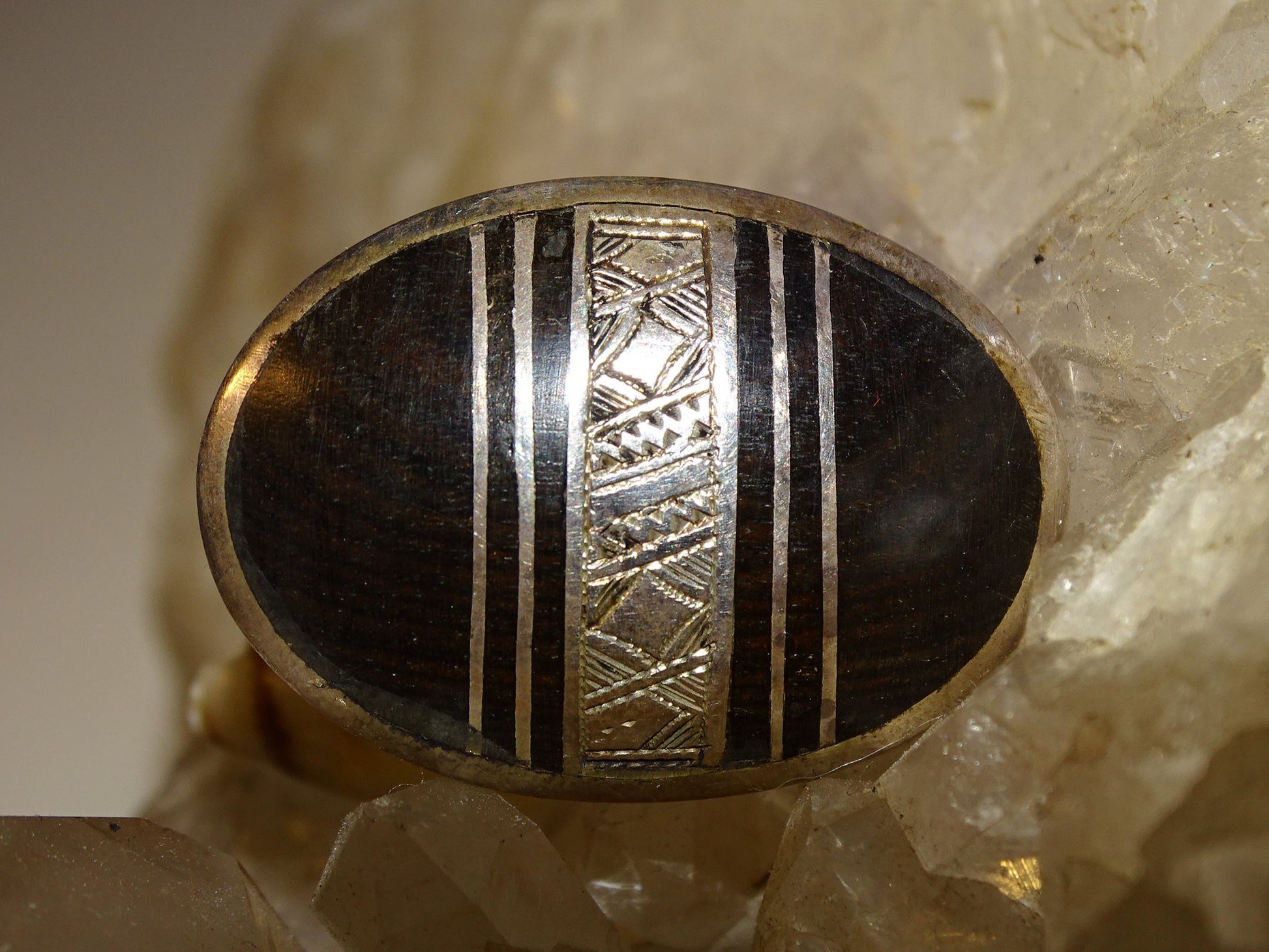 💎 Type de minéral : Corne animale et métal avec gravure