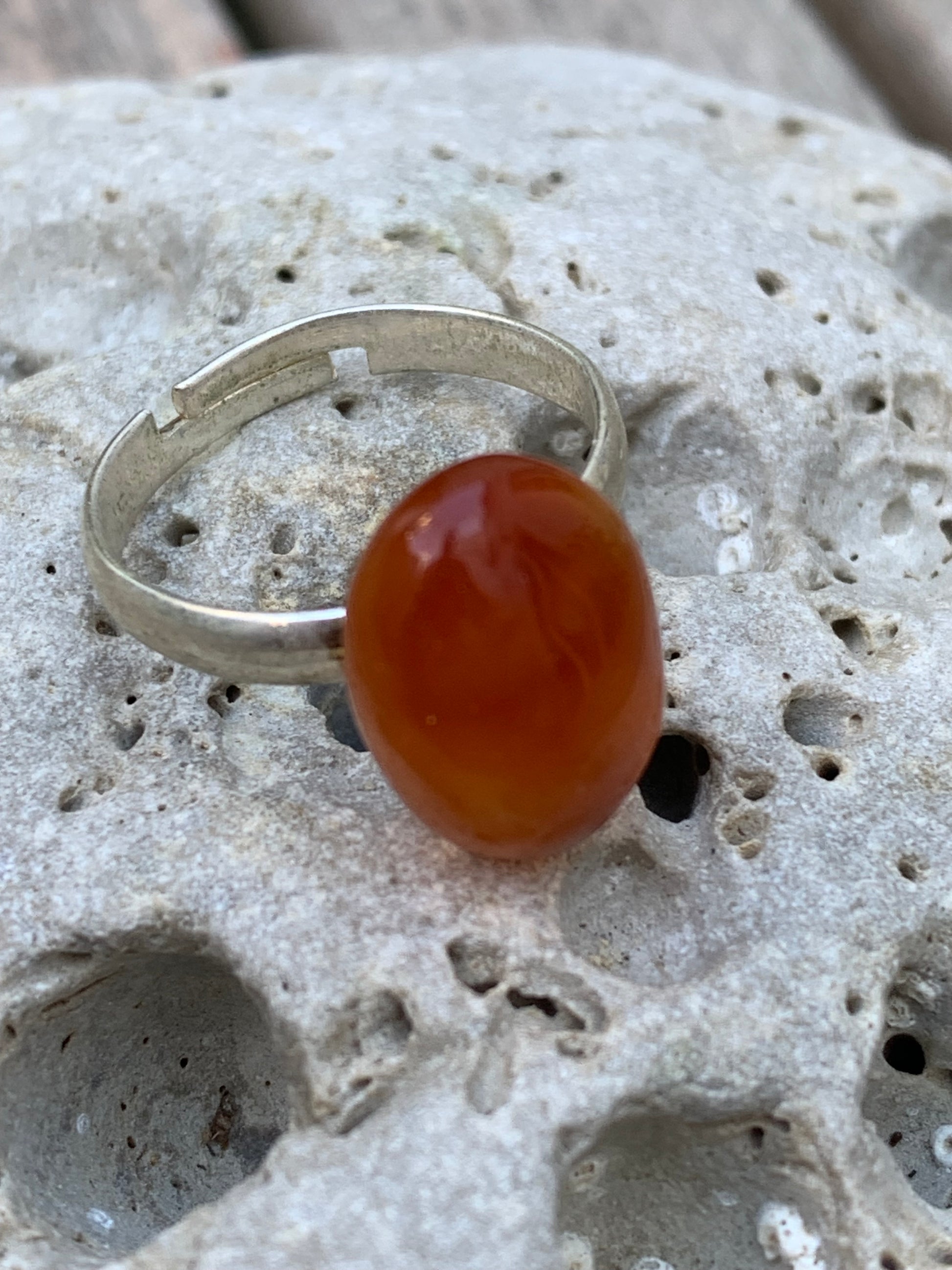 Bague réglable en cornaline, pièce brute et naturelle, cabochon en pierre collée sur anneau pré-montée en laiton argenté !