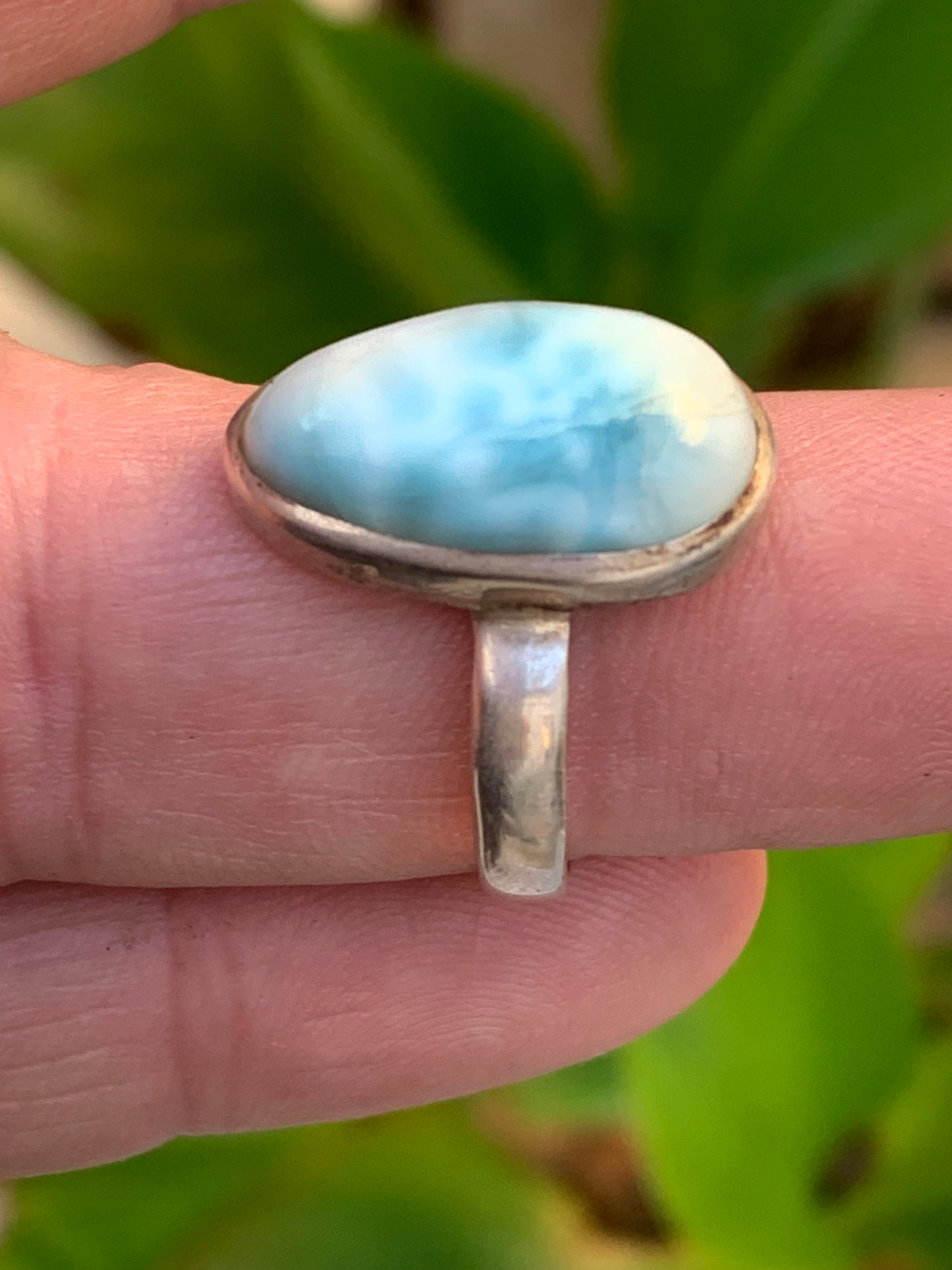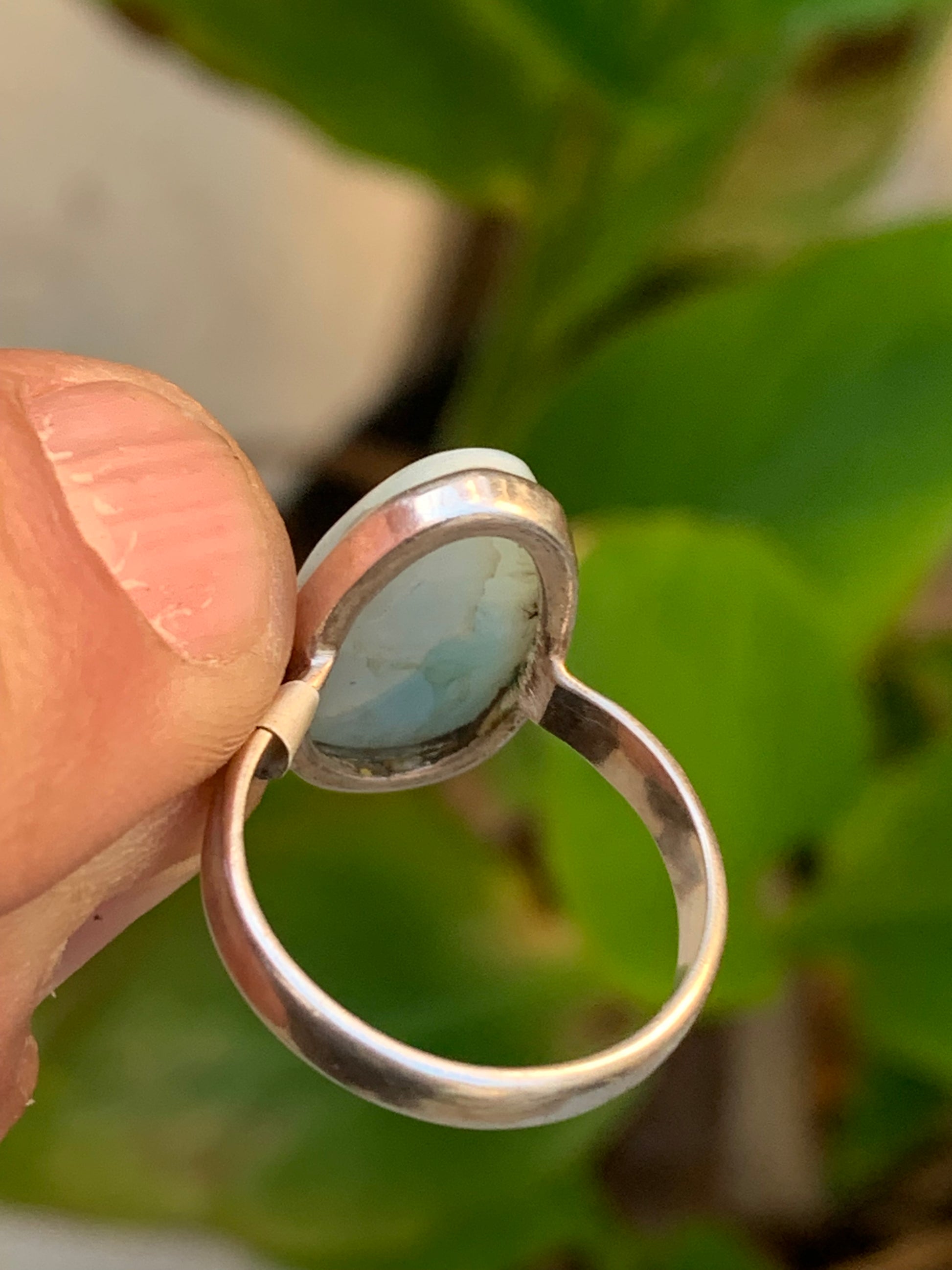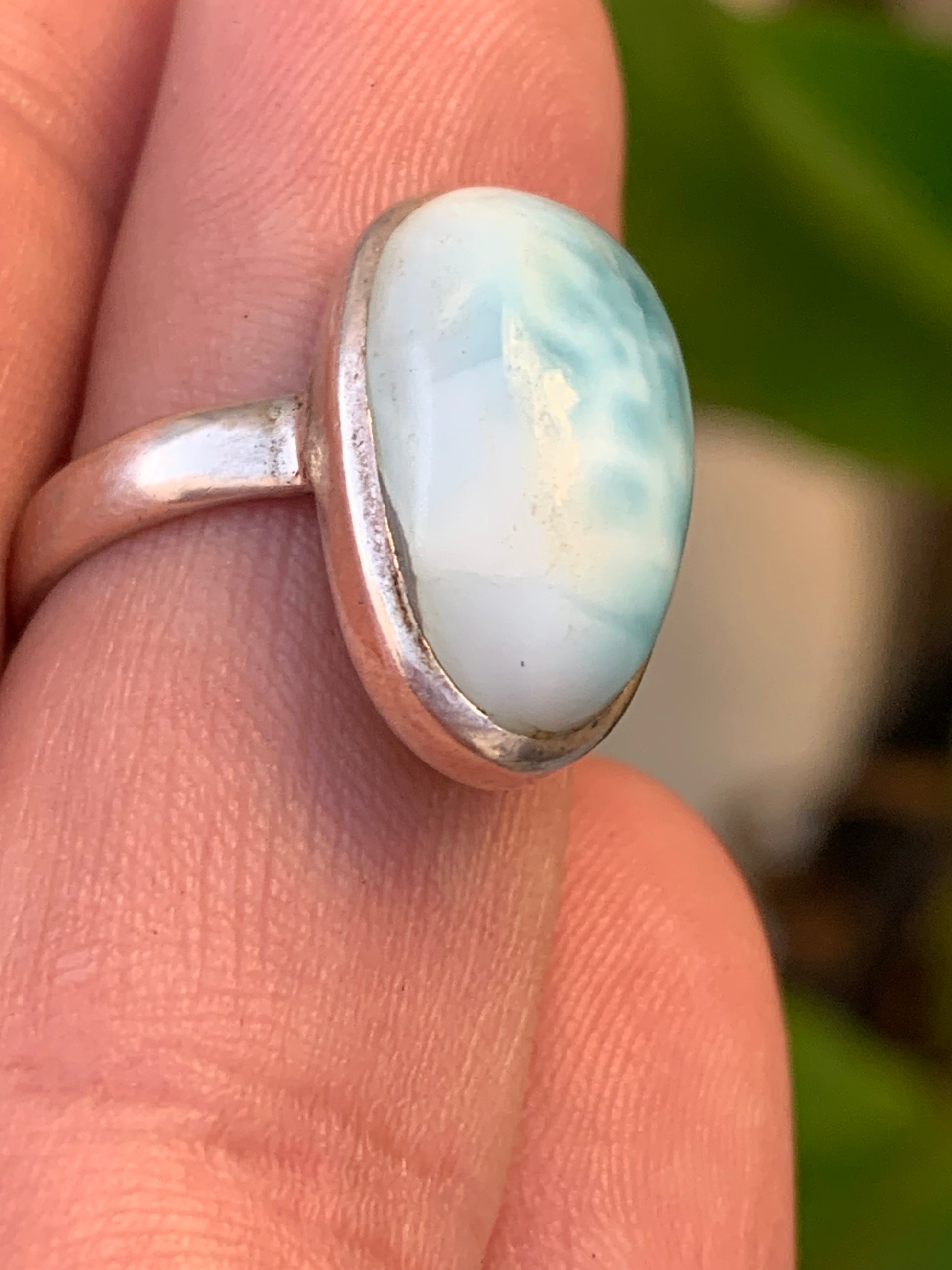 Bague en Larimar, montée Argent 0.925. Superbe pierre au bleu qui rappelle l'océan ! Très belle réalisation ! Taille 57 Fr