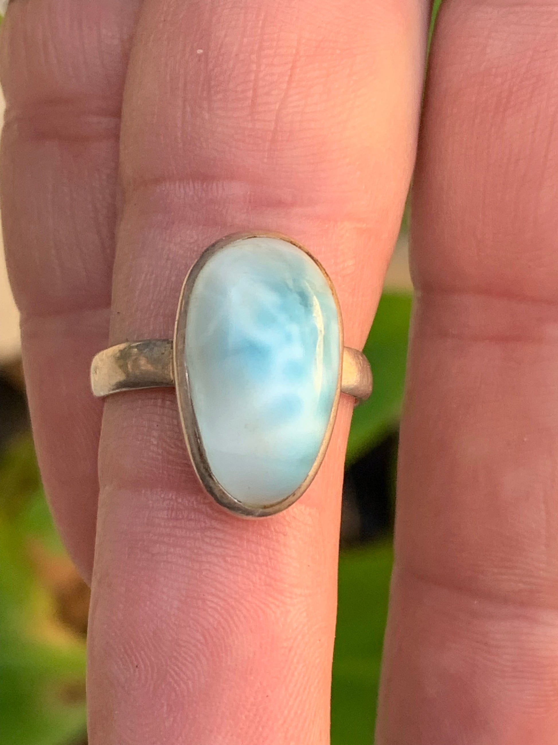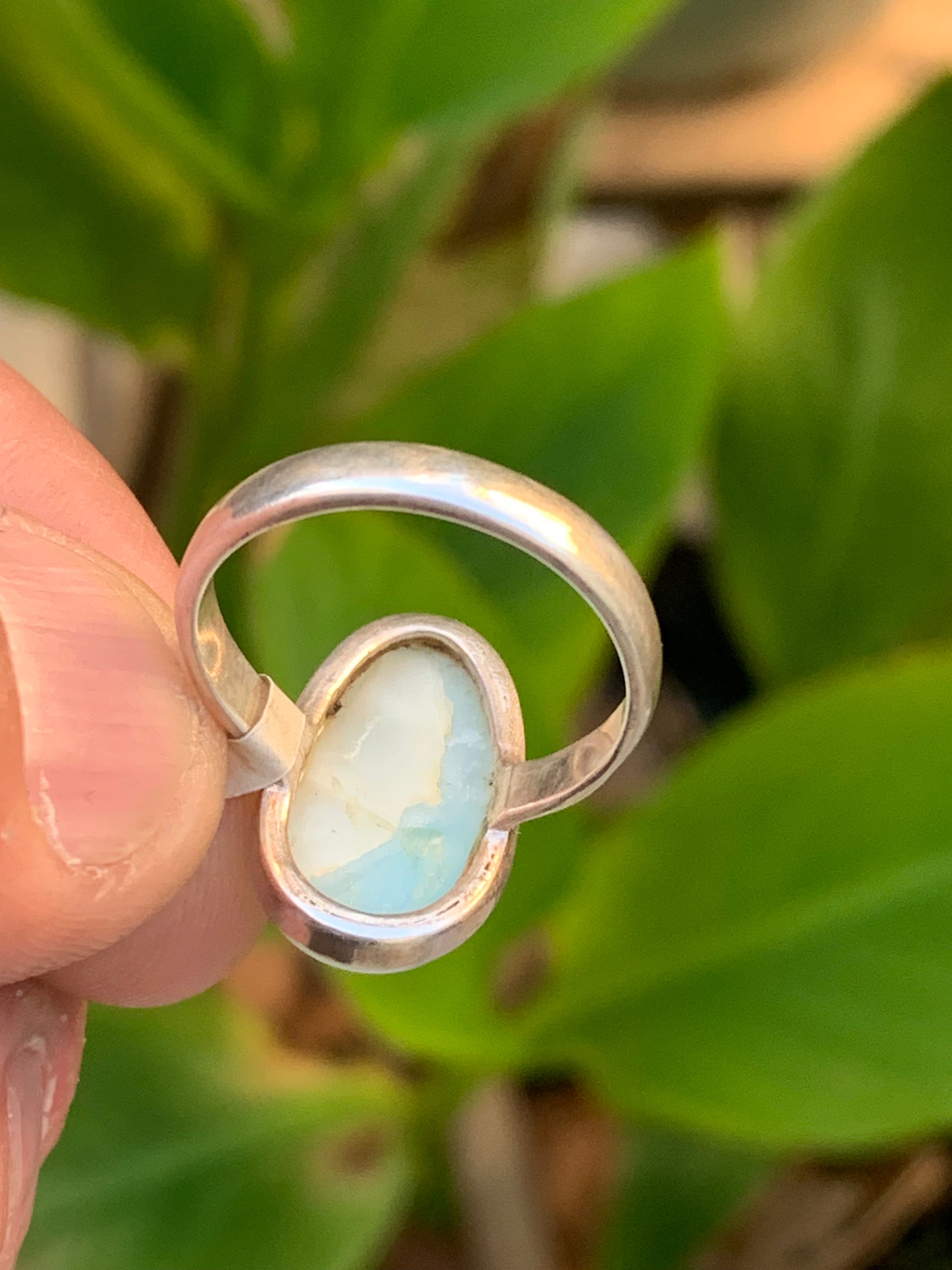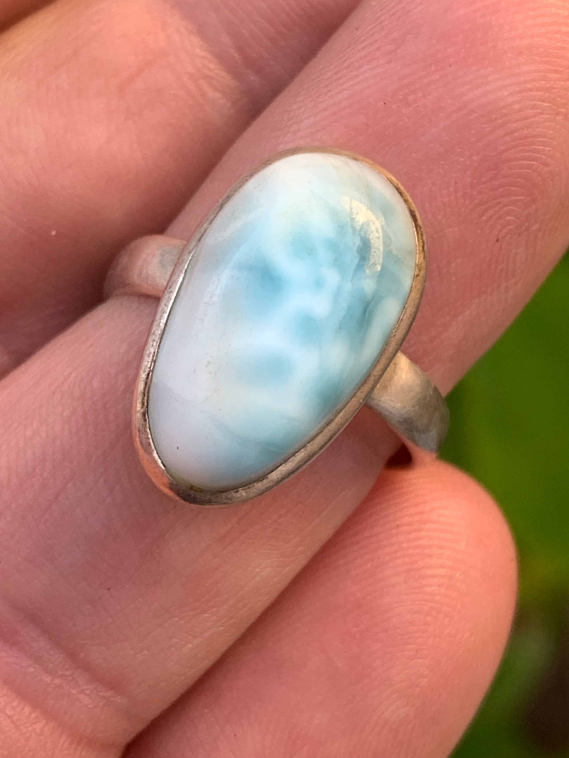 Bague en Larimar, montée Argent 0.925. Superbe pierre au bleu qui rappelle l'océan ! Très belle réalisation ! Taille 57 Fr