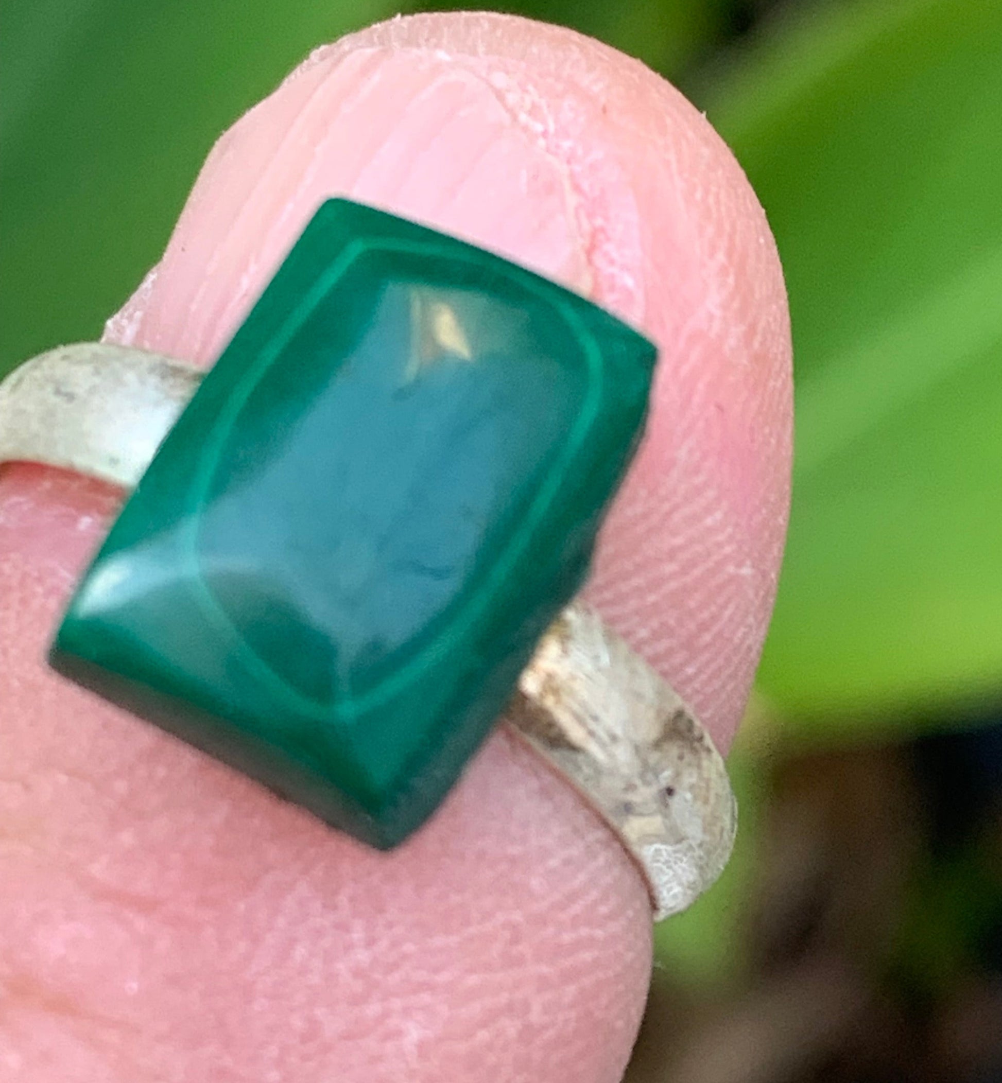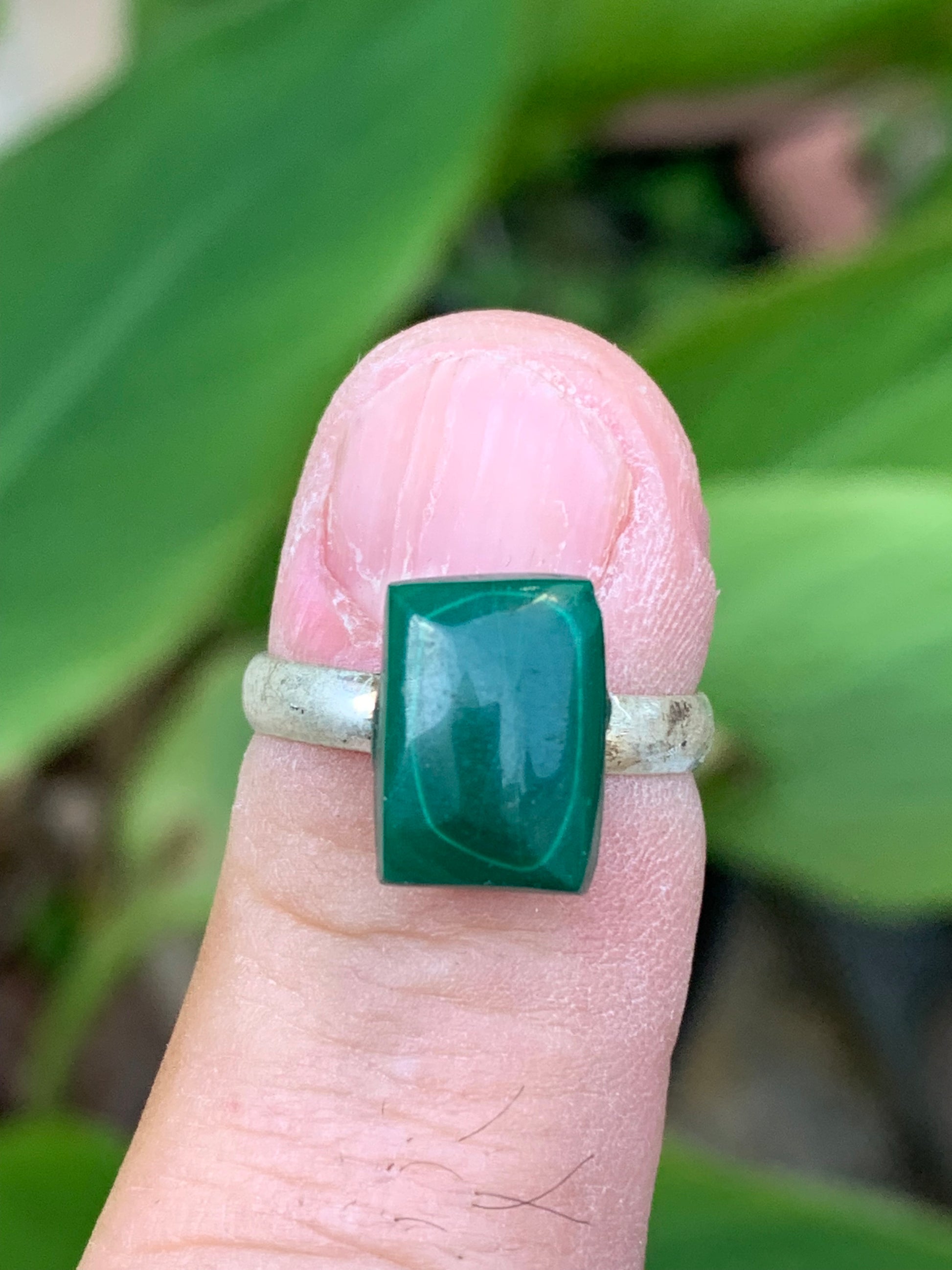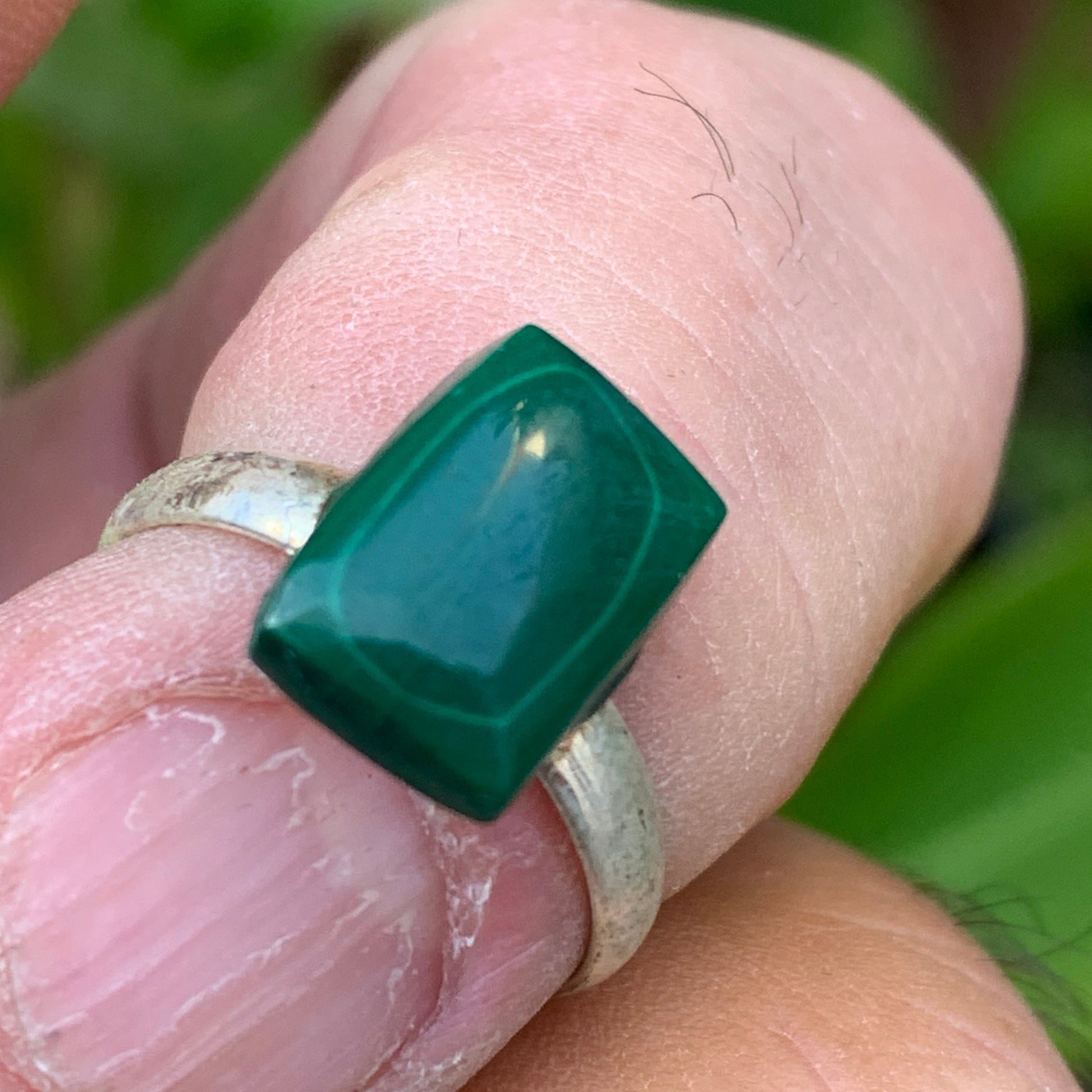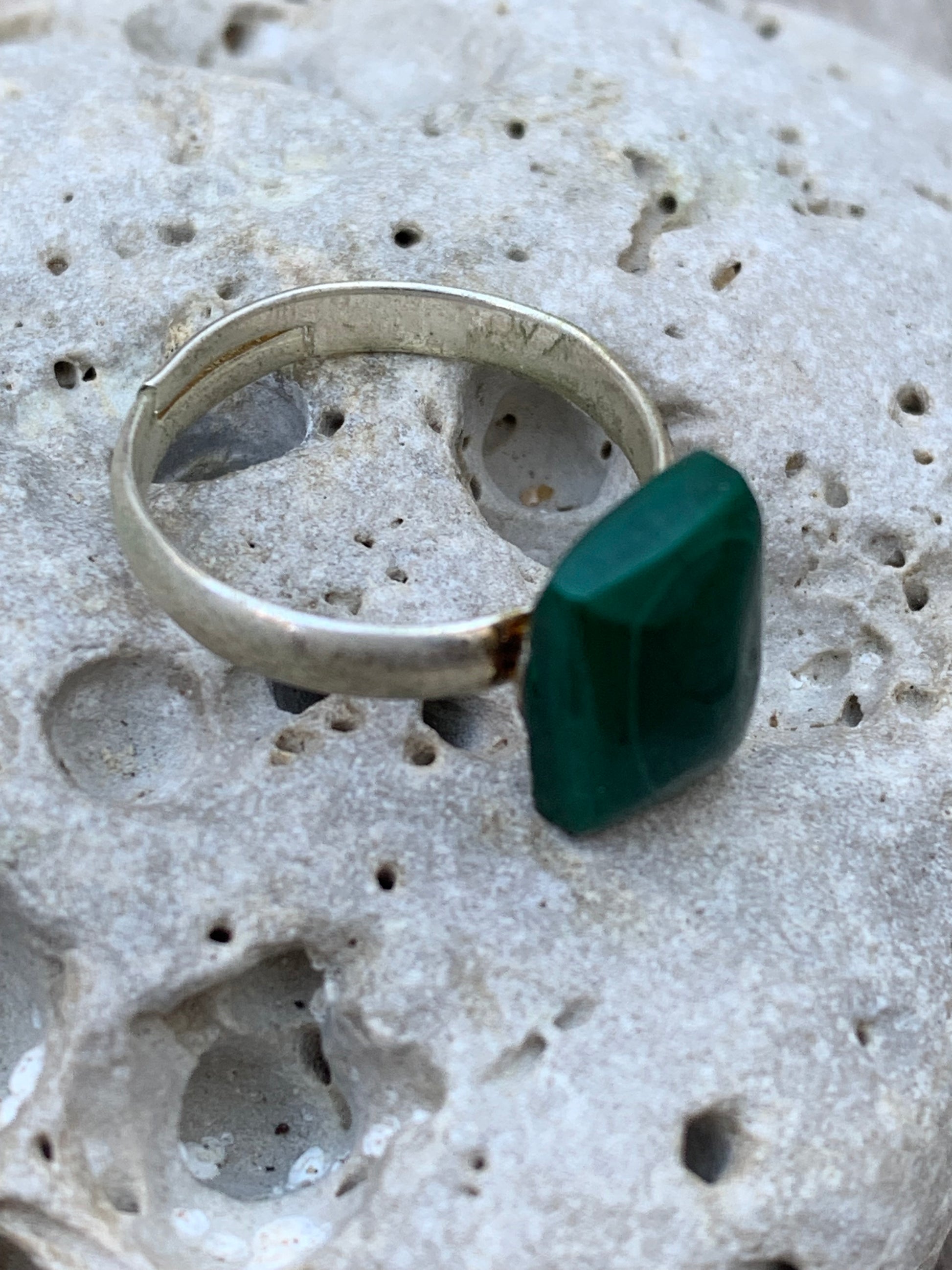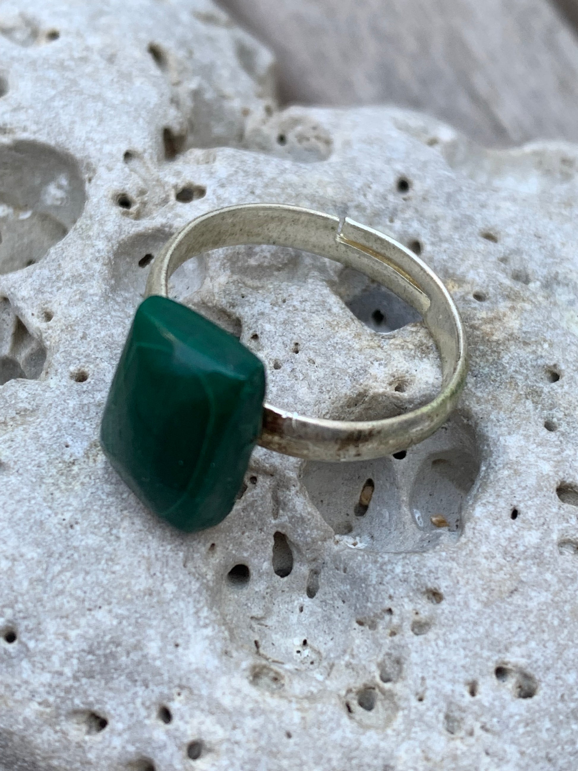 Bague en malachite, cabochon en pierre collée sur anneau pré-montée en laiton couleur argent ! Taille réglable d'environ 50 à 60 Fr.