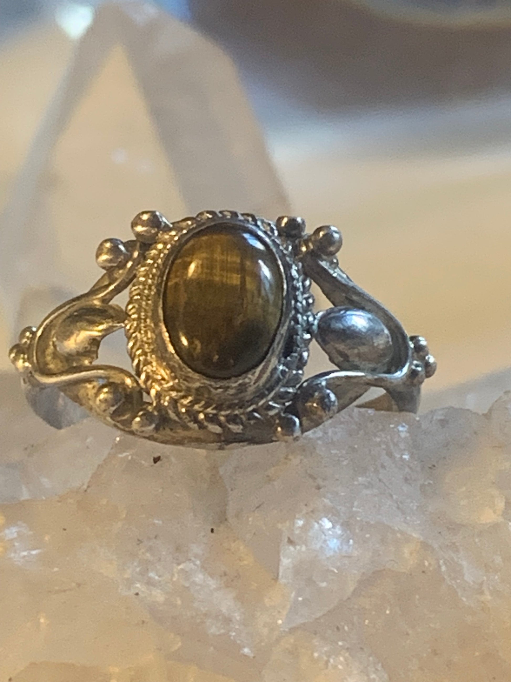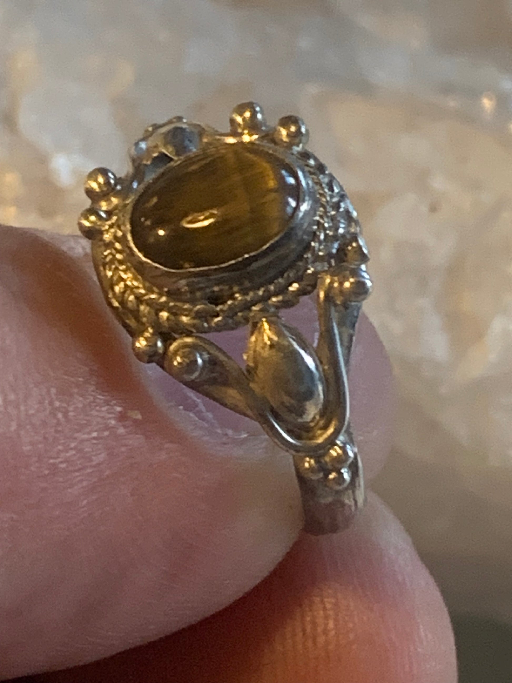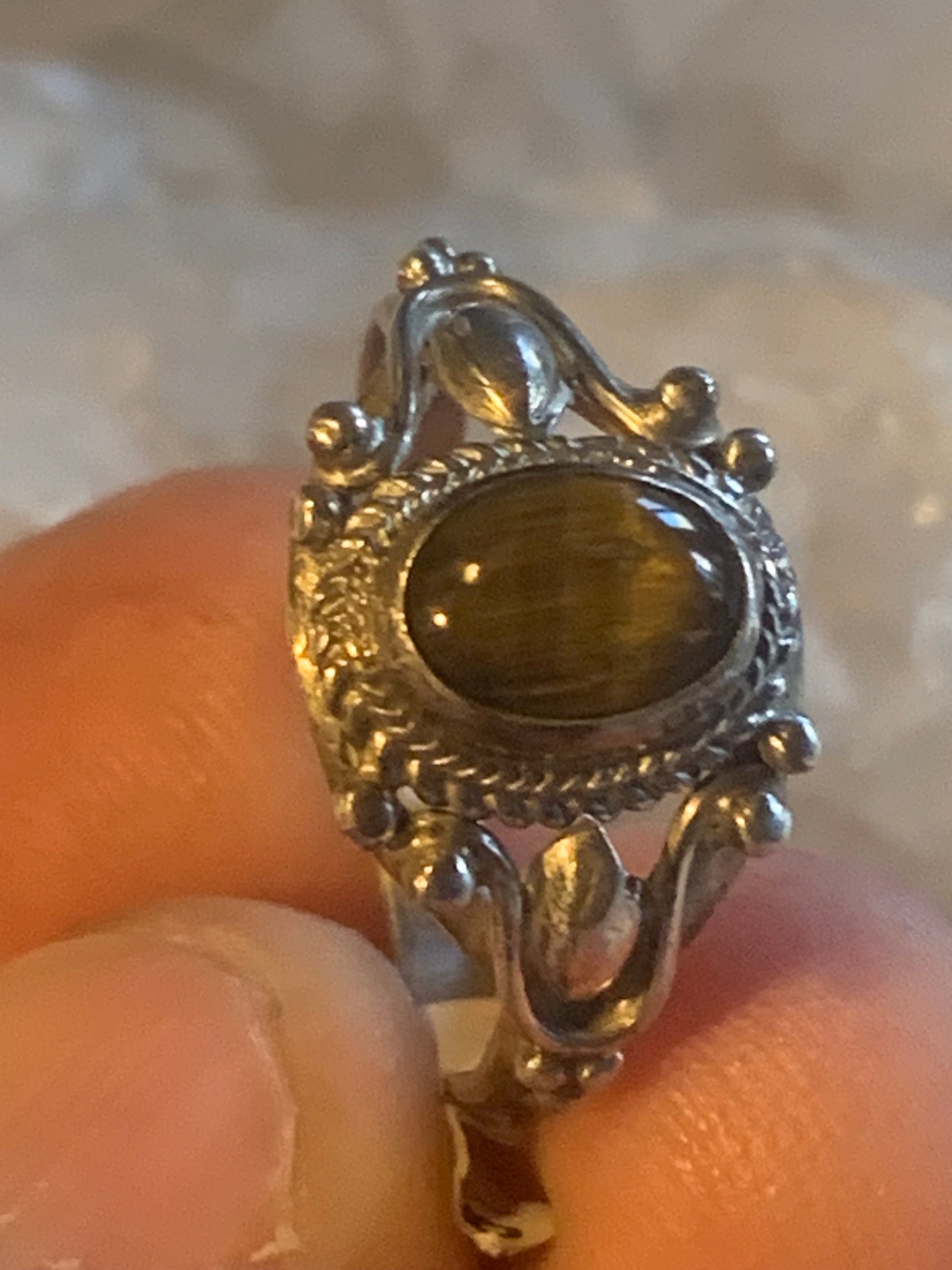 Bague en Œil de tigre, en Argent 0.925. Superbe pierre aux reflets irisés ! Taille 60 Fr.
