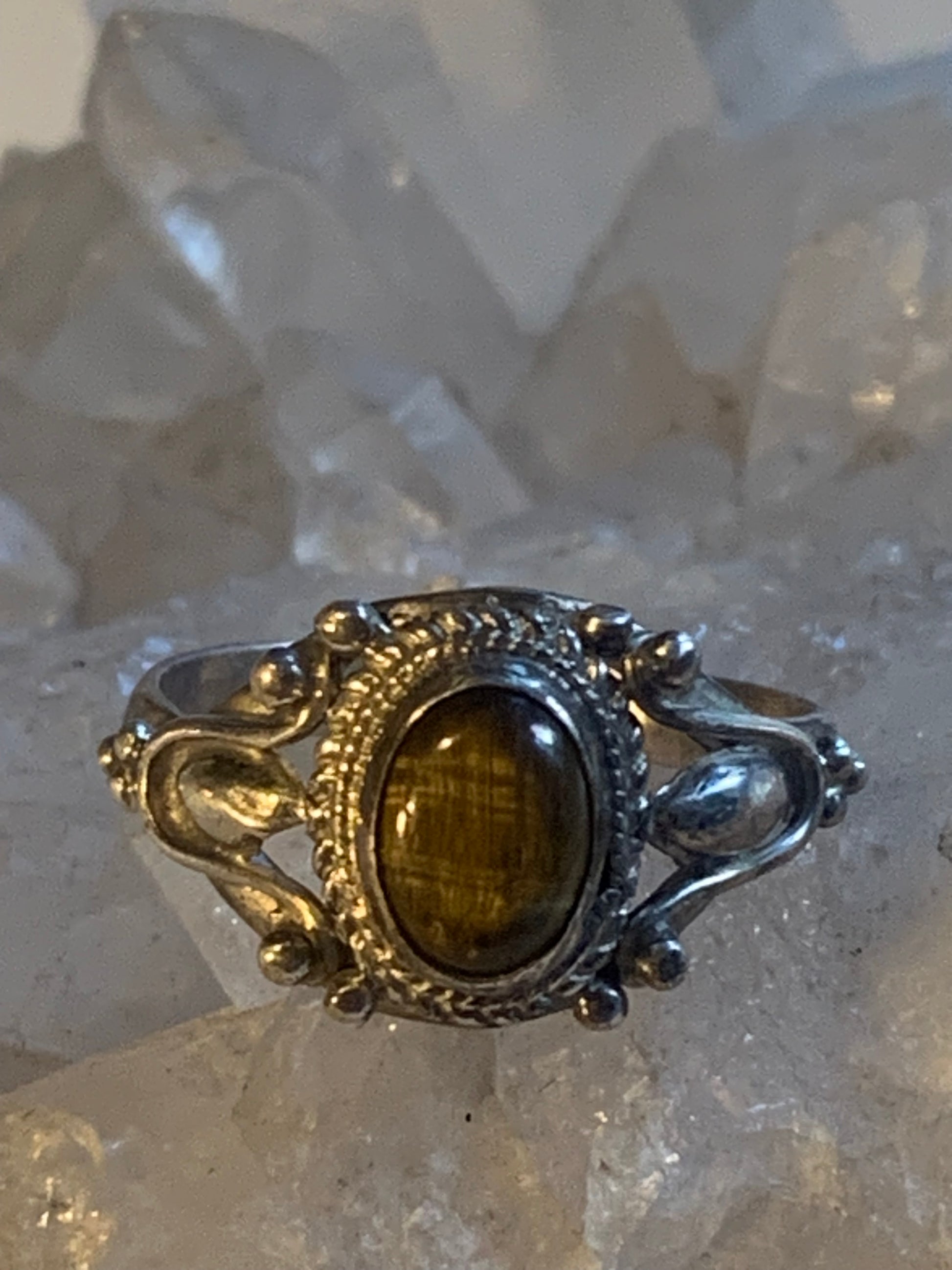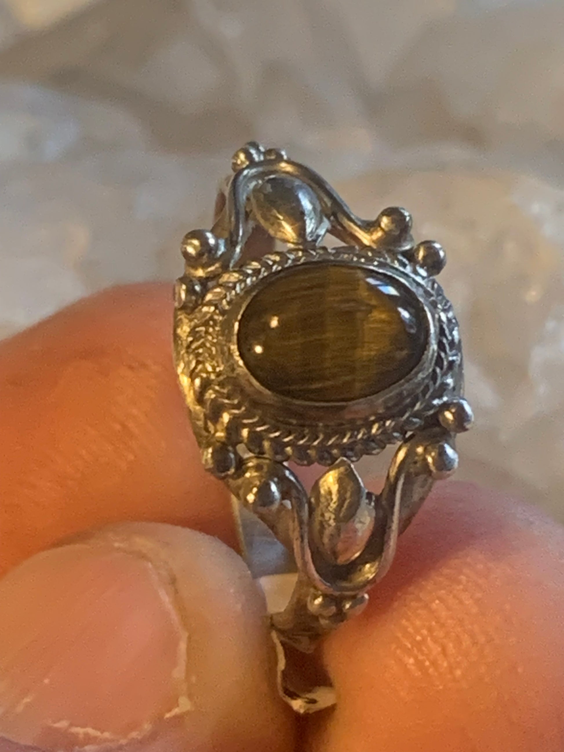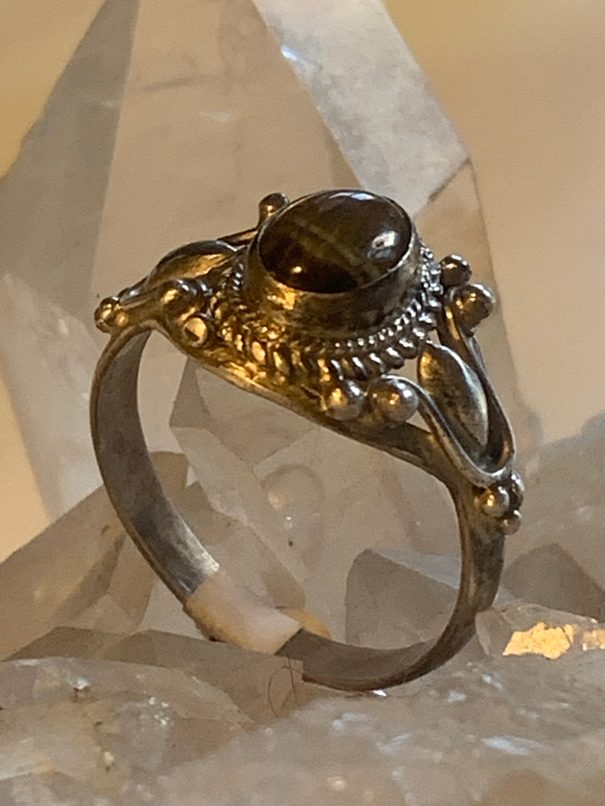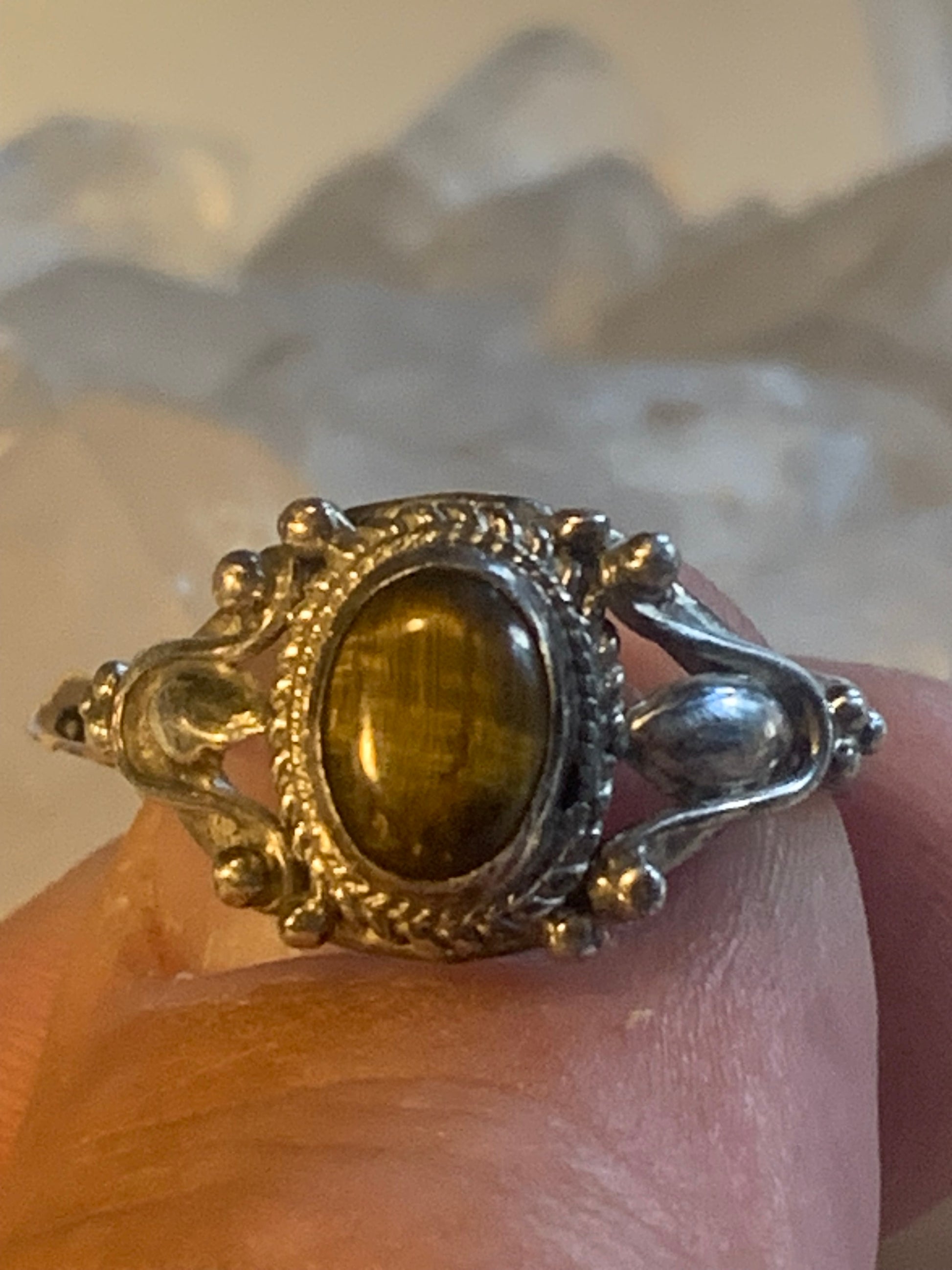 Bague en Œil de tigre, en Argent 0.925. Superbe pierre aux reflets irisés ! Taille 60 Fr.
