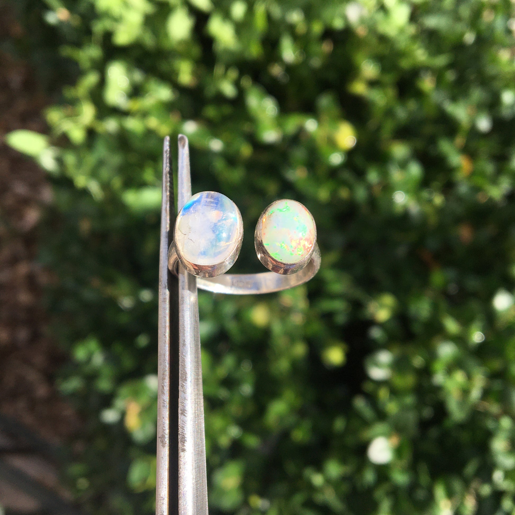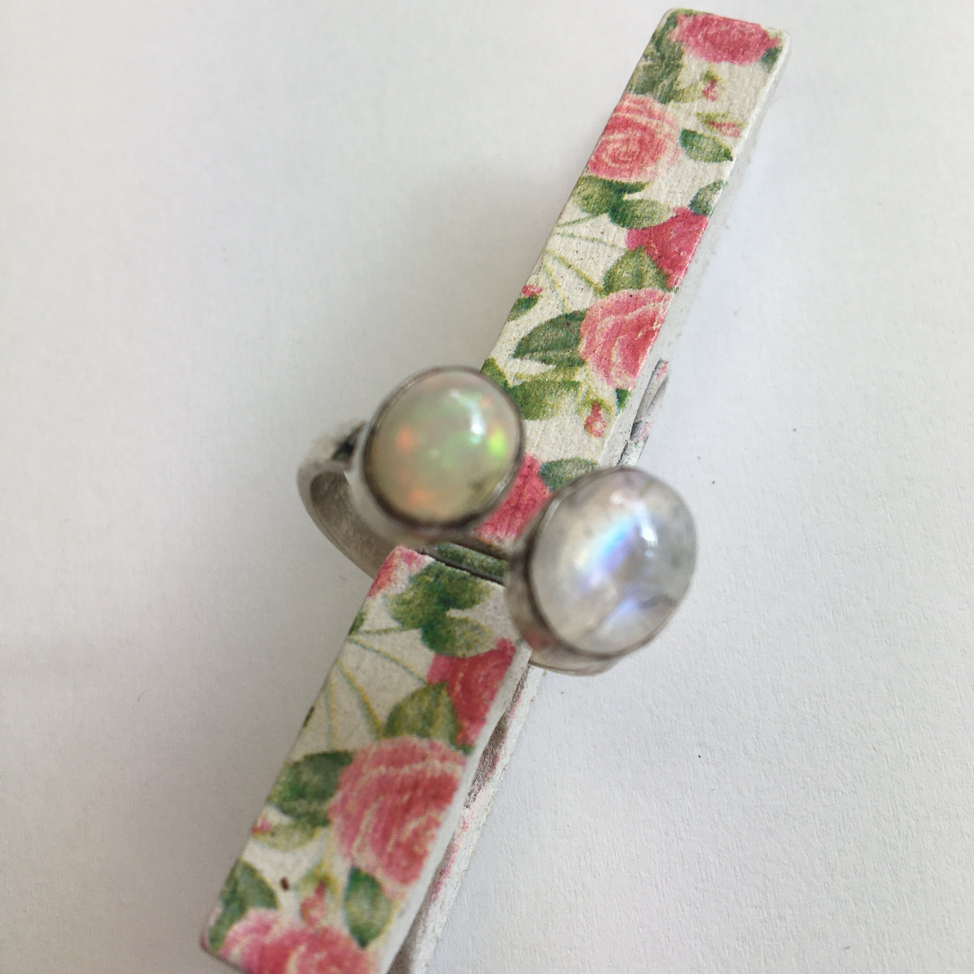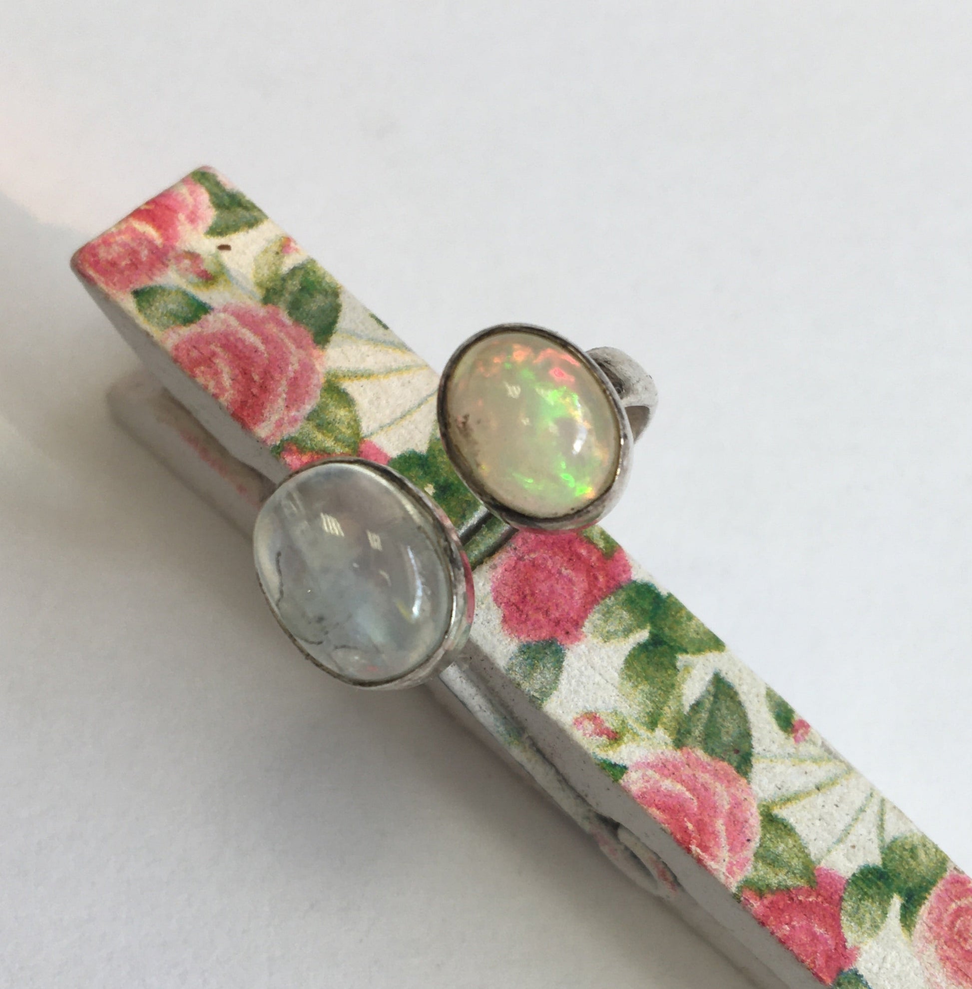 Bague en opale et pierre de lune, cabochons sertis sur anneau en Argent 0.925 ! Taille réglable d'environ 50 à 60 Fr !