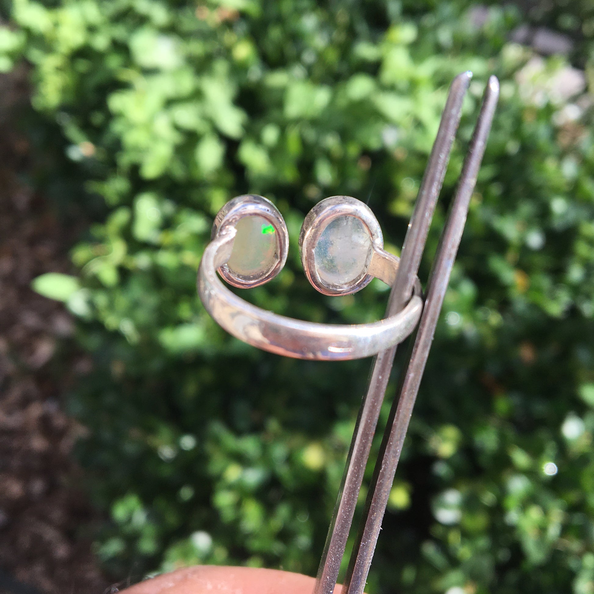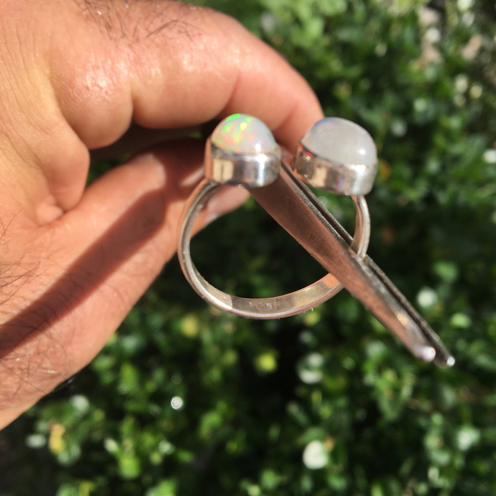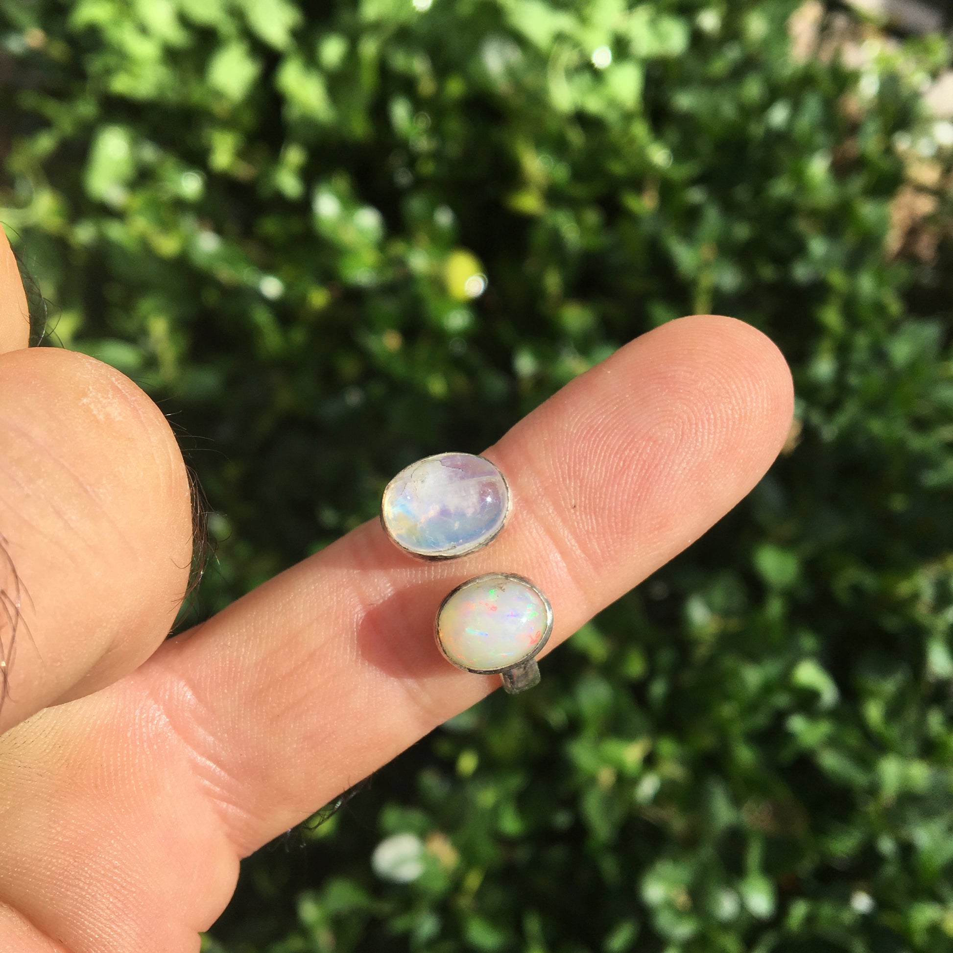 Bague en opale et pierre de lune, cabochons sertis sur anneau en Argent 0.925 ! Taille réglable d'environ 50 à 60 Fr !