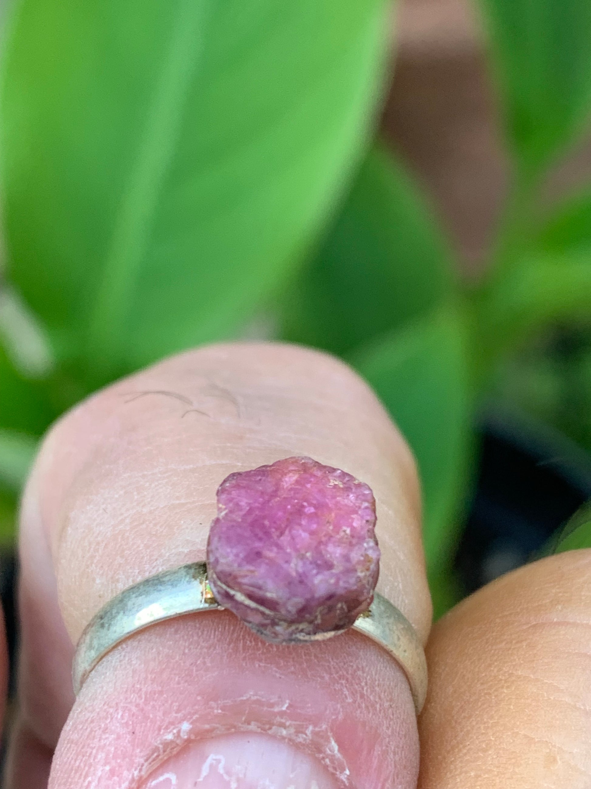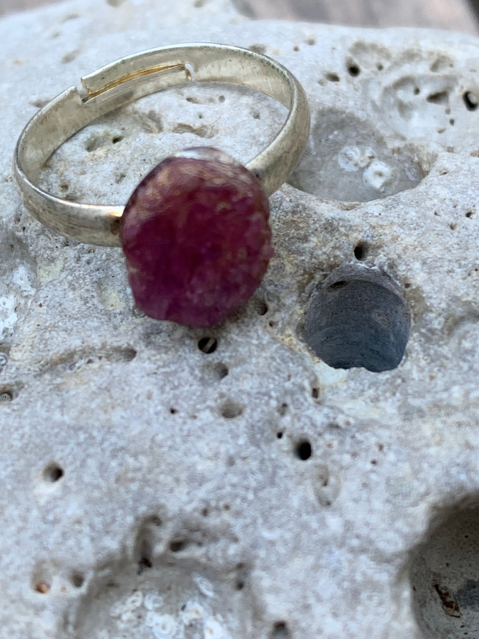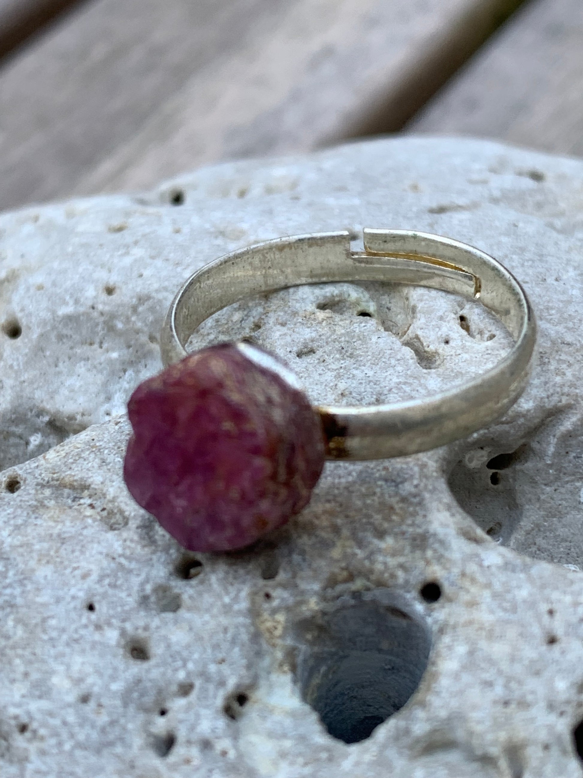 Bague en rubis, corindon naturel collée sur anneau pré-montée en laiton couleur argent ! Taille réglable d'environ 50 à 60 Fr.