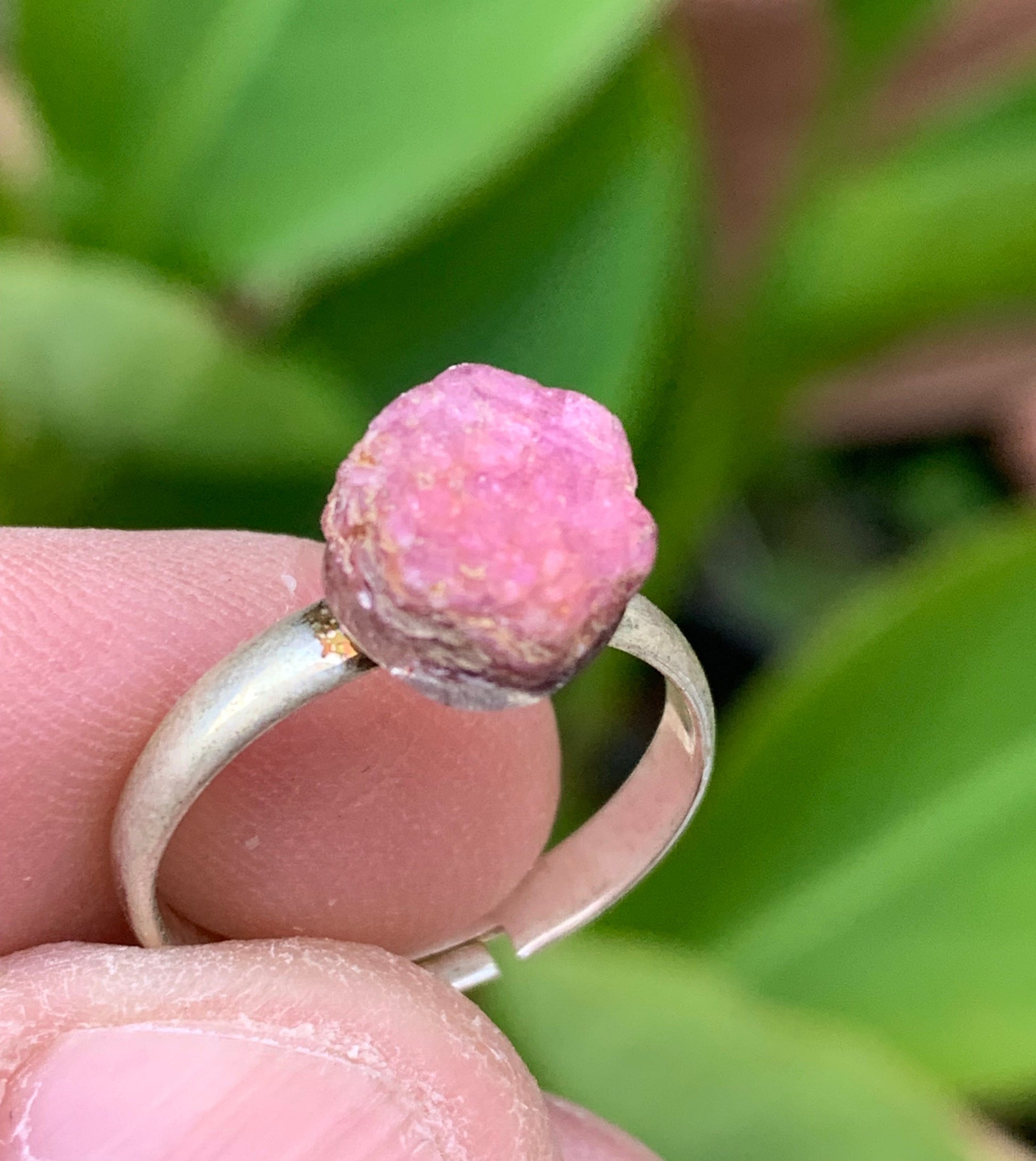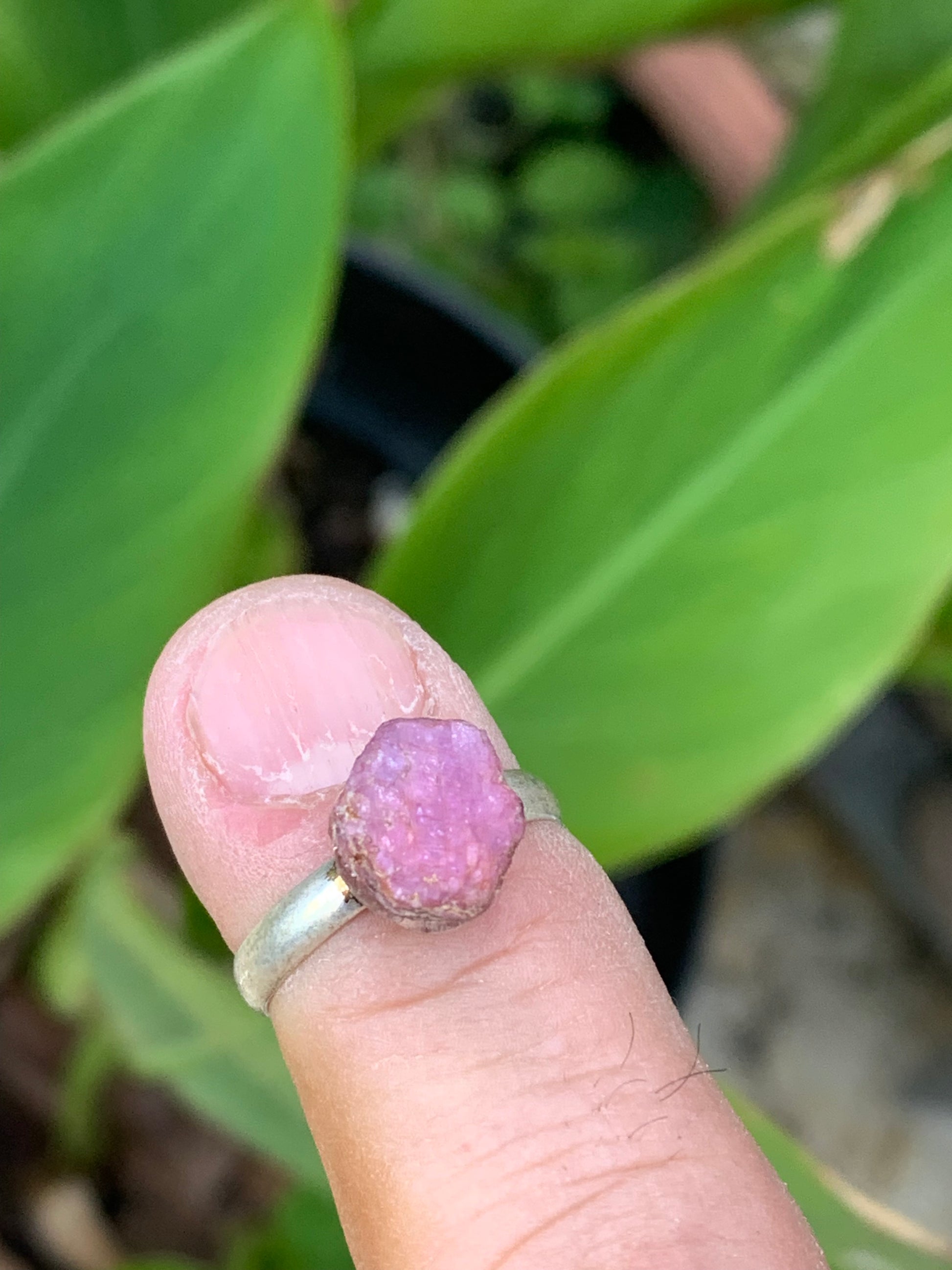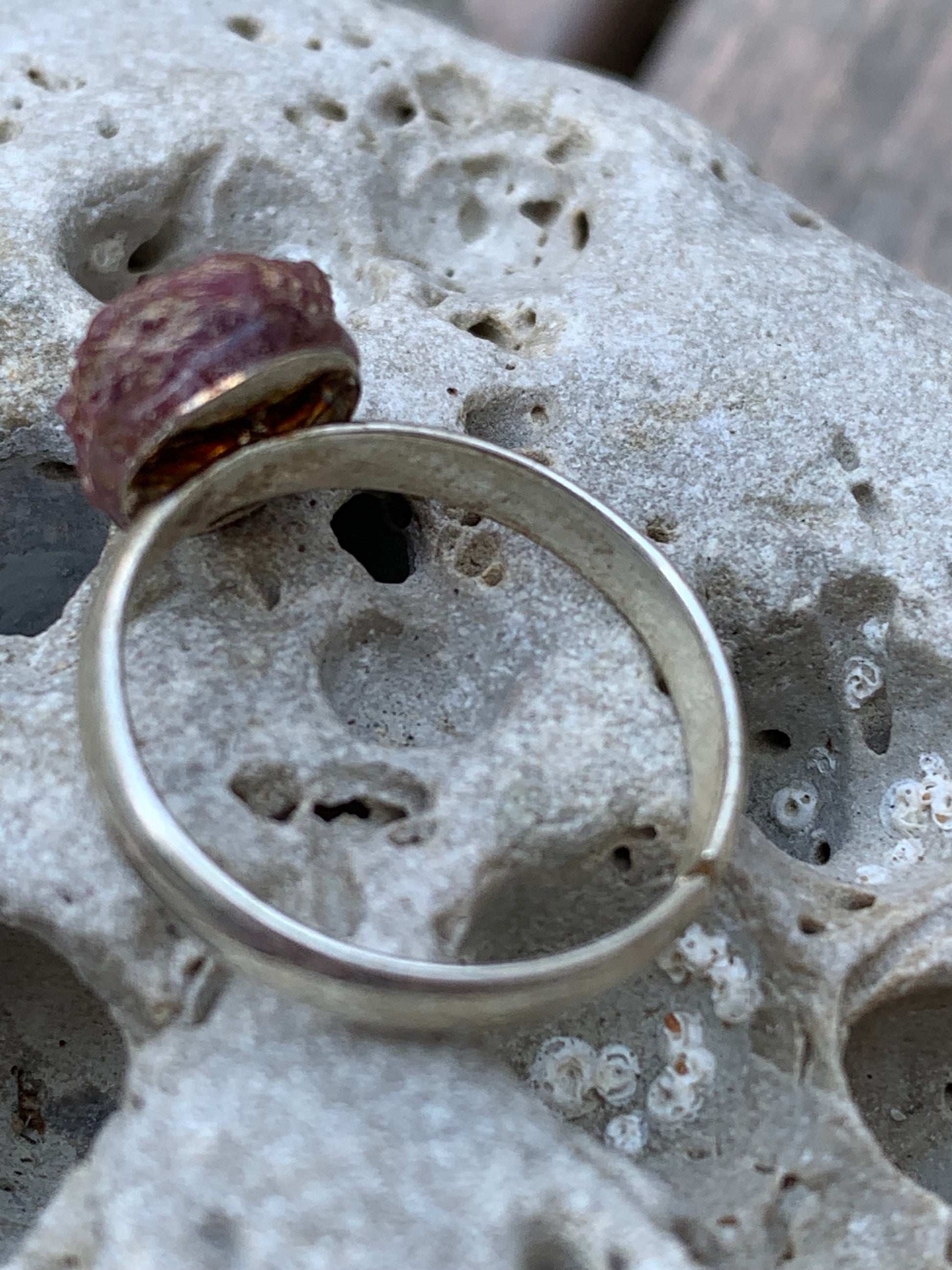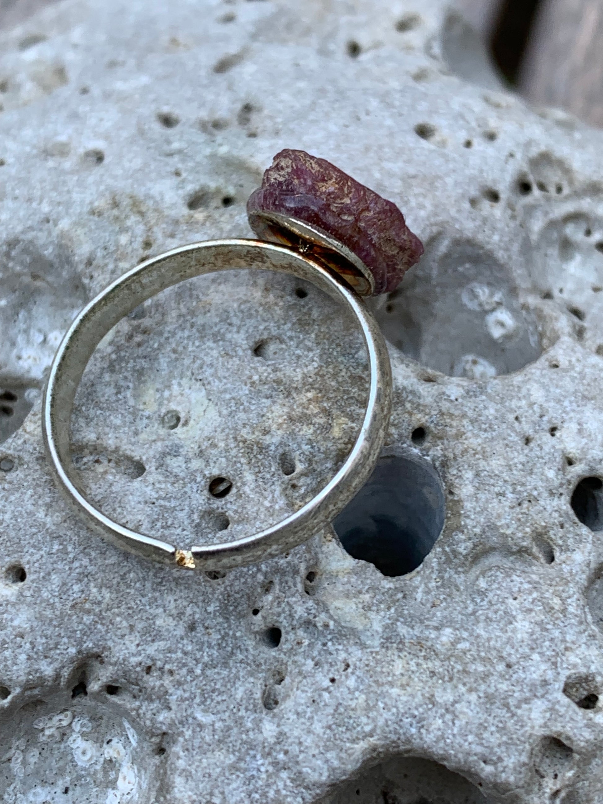 Bague en rubis, corindon naturel collée sur anneau pré-montée en laiton couleur argent ! Taille réglable d'environ 50 à 60 Fr.