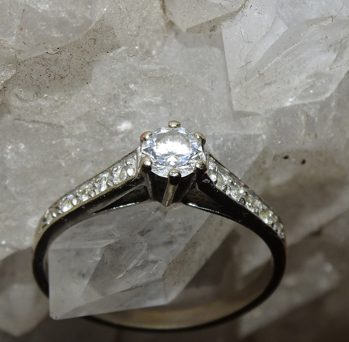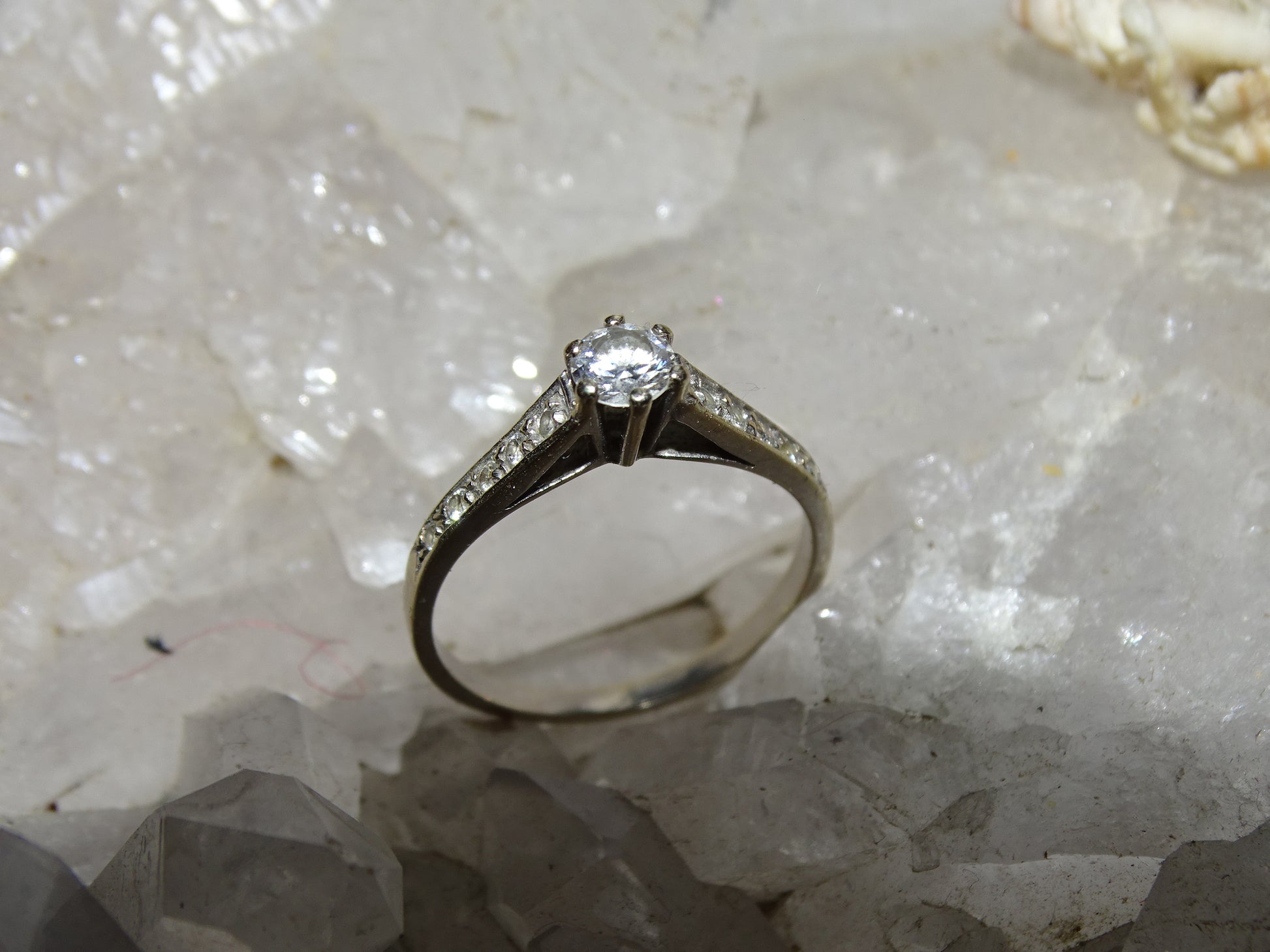 💍 Type : Bague haut de gamme, 'Solitaire' Or gris oxydes zirconium