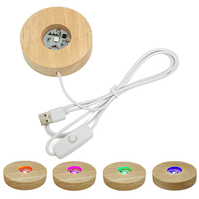 Base à LED multicolores, socle en bois, prise USB pour éclairer vos plus beaux spècimens. Dimensions (Ø x H) 10 x 2 cm. Puissance 5V. Peut être utilisé pour tous les minéraux transparents !