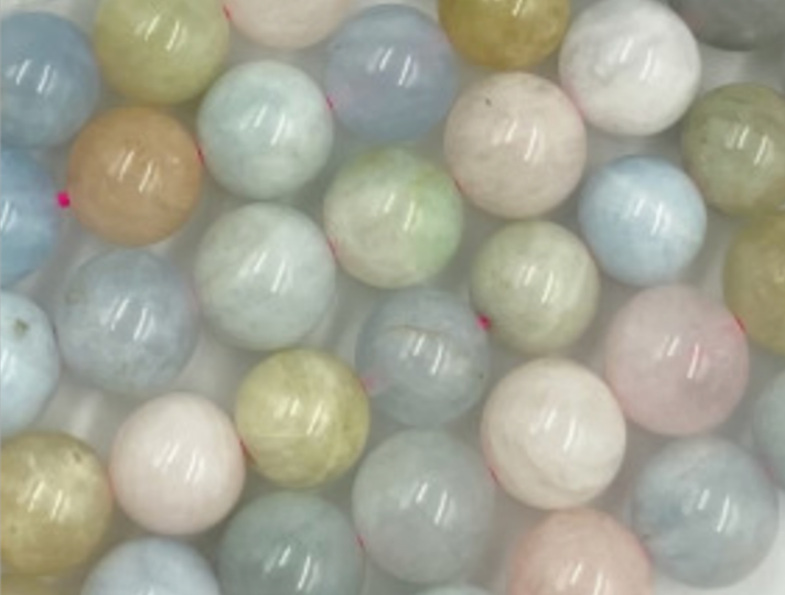 💎 Type de perle : Béryl (Aigue-marine • Morganite • Émeraude) - Qualité AA à AAA - Finition 'ronde', polie et brillante