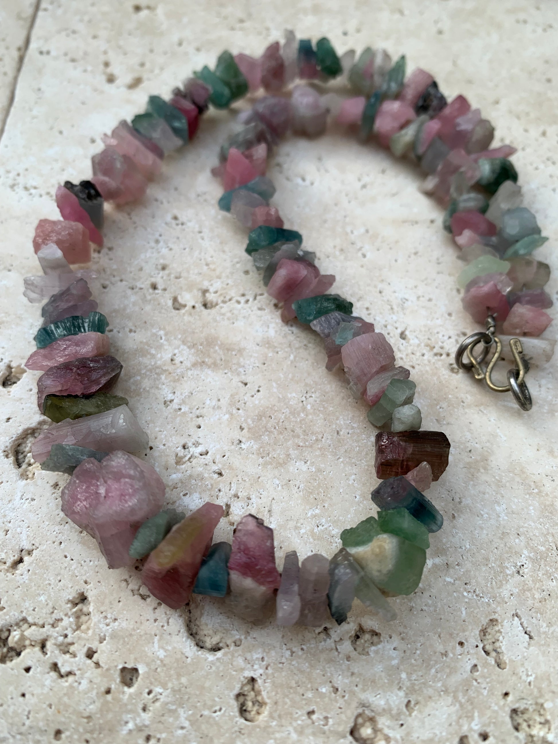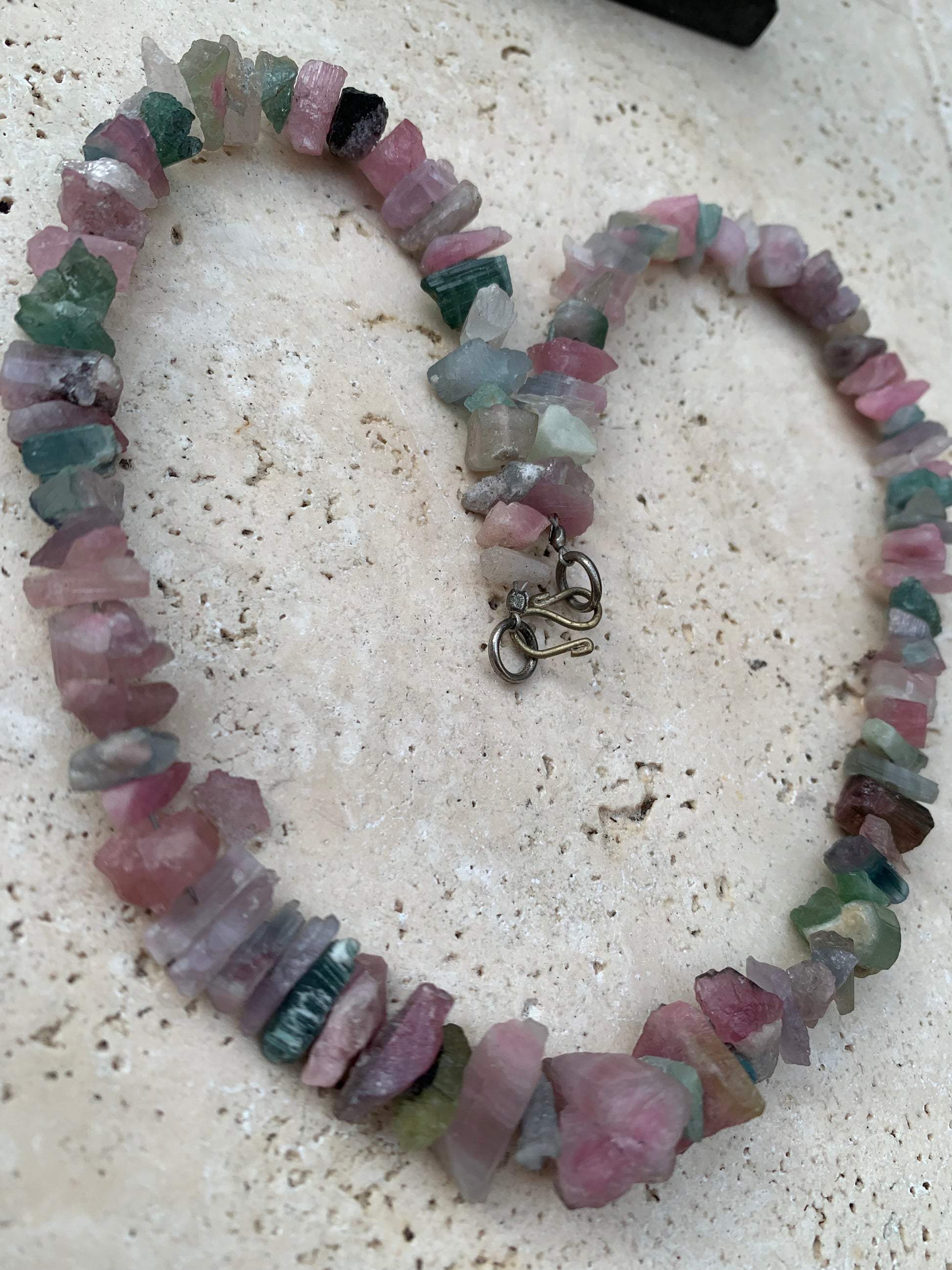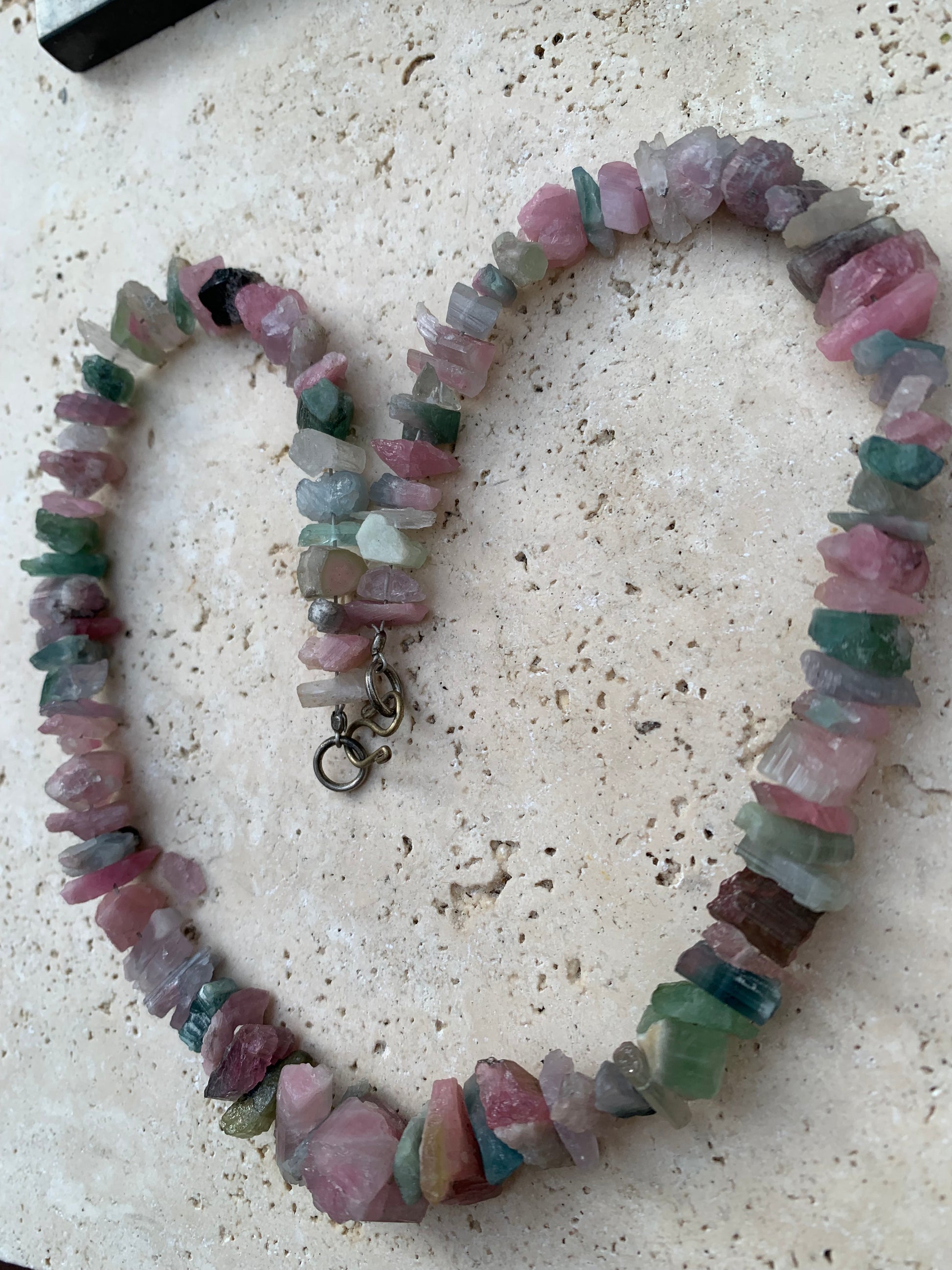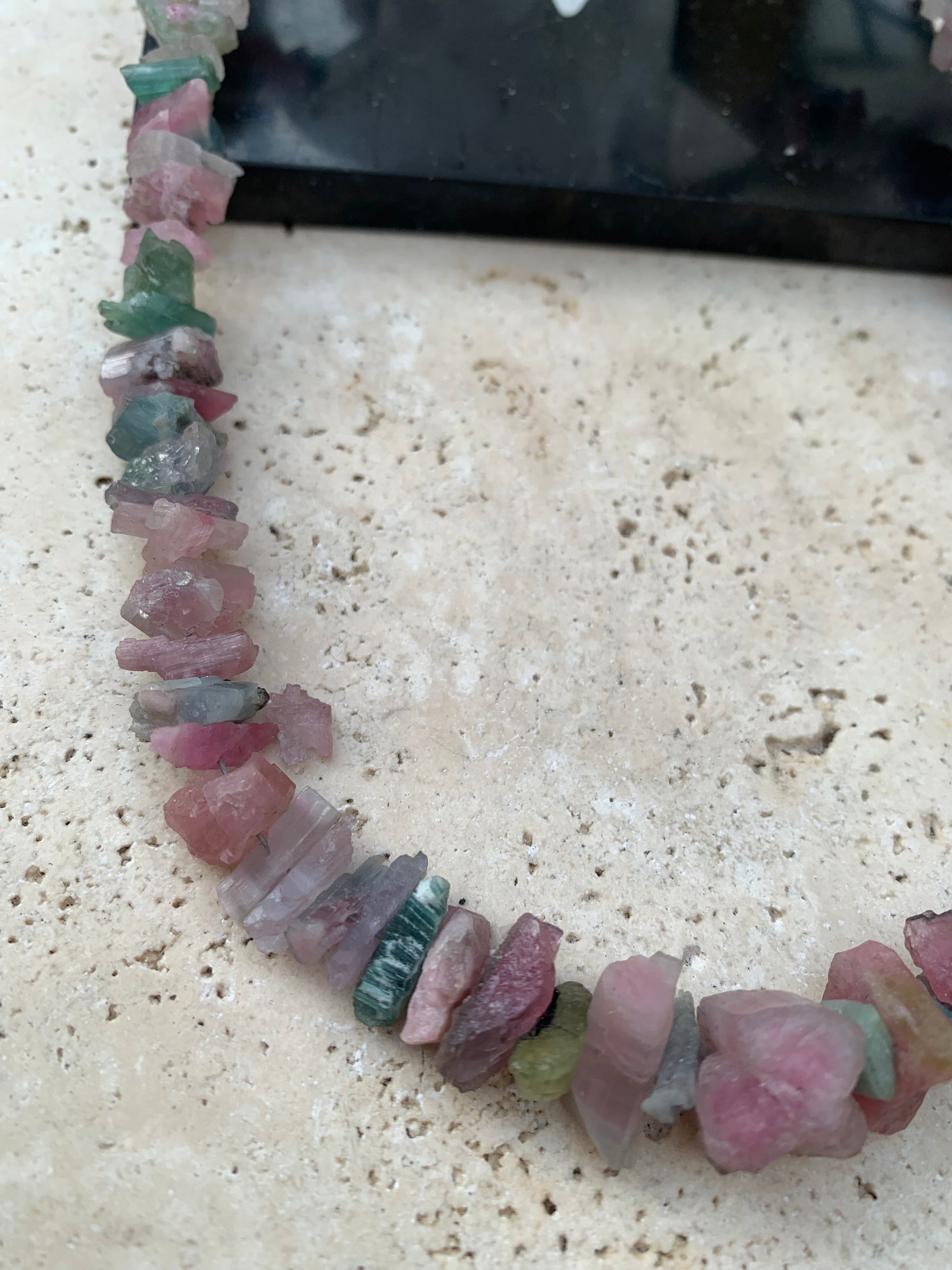 Bijoux d'exception, superbe collier en perle naturelle de tourmaline multicolore, 45cm de longueur. Fait sur Argent par G&Z !