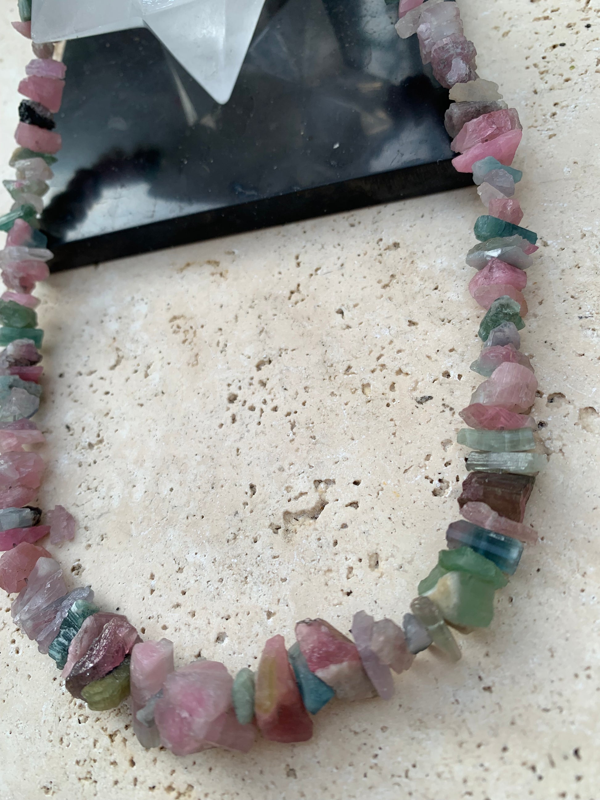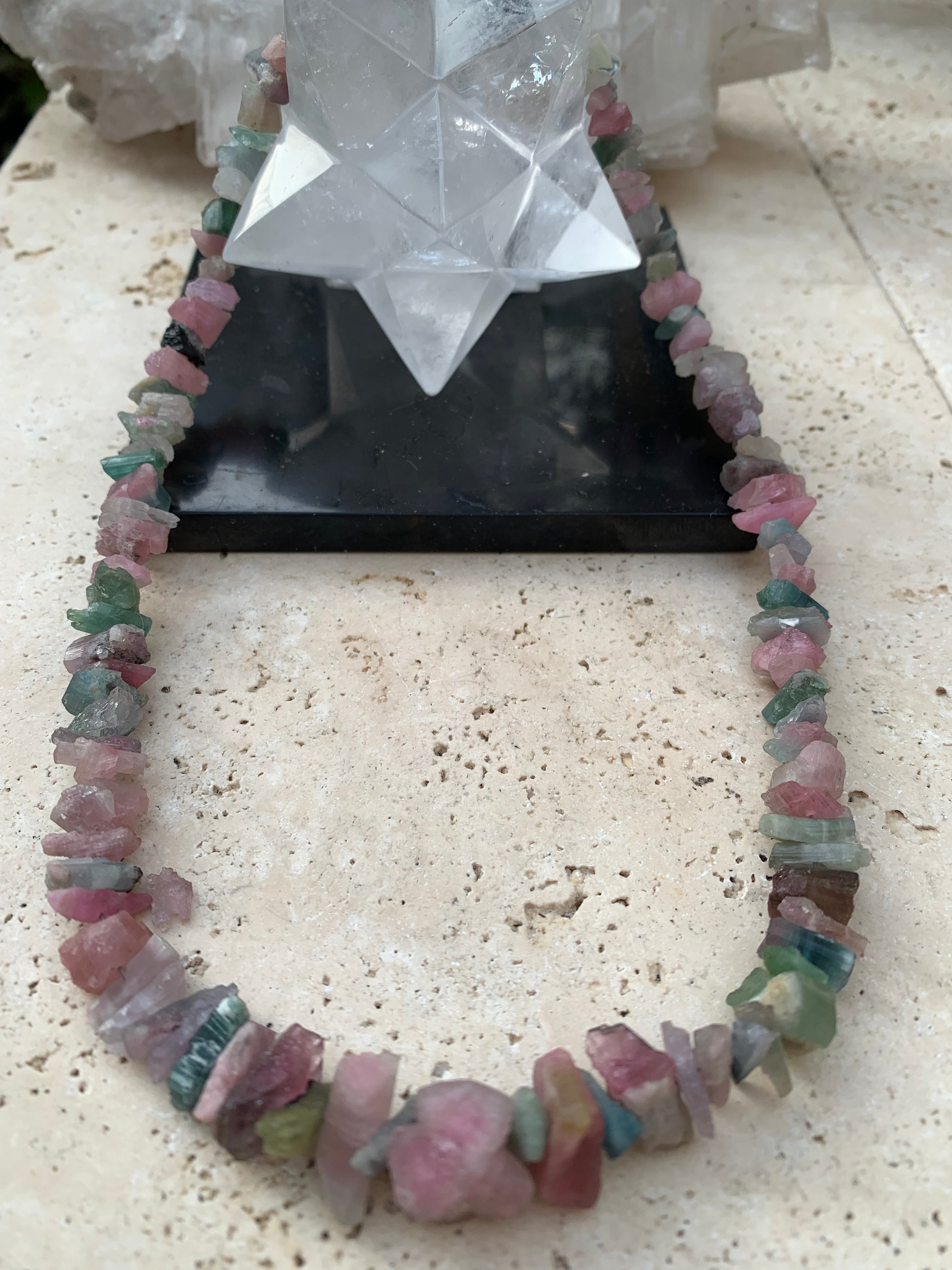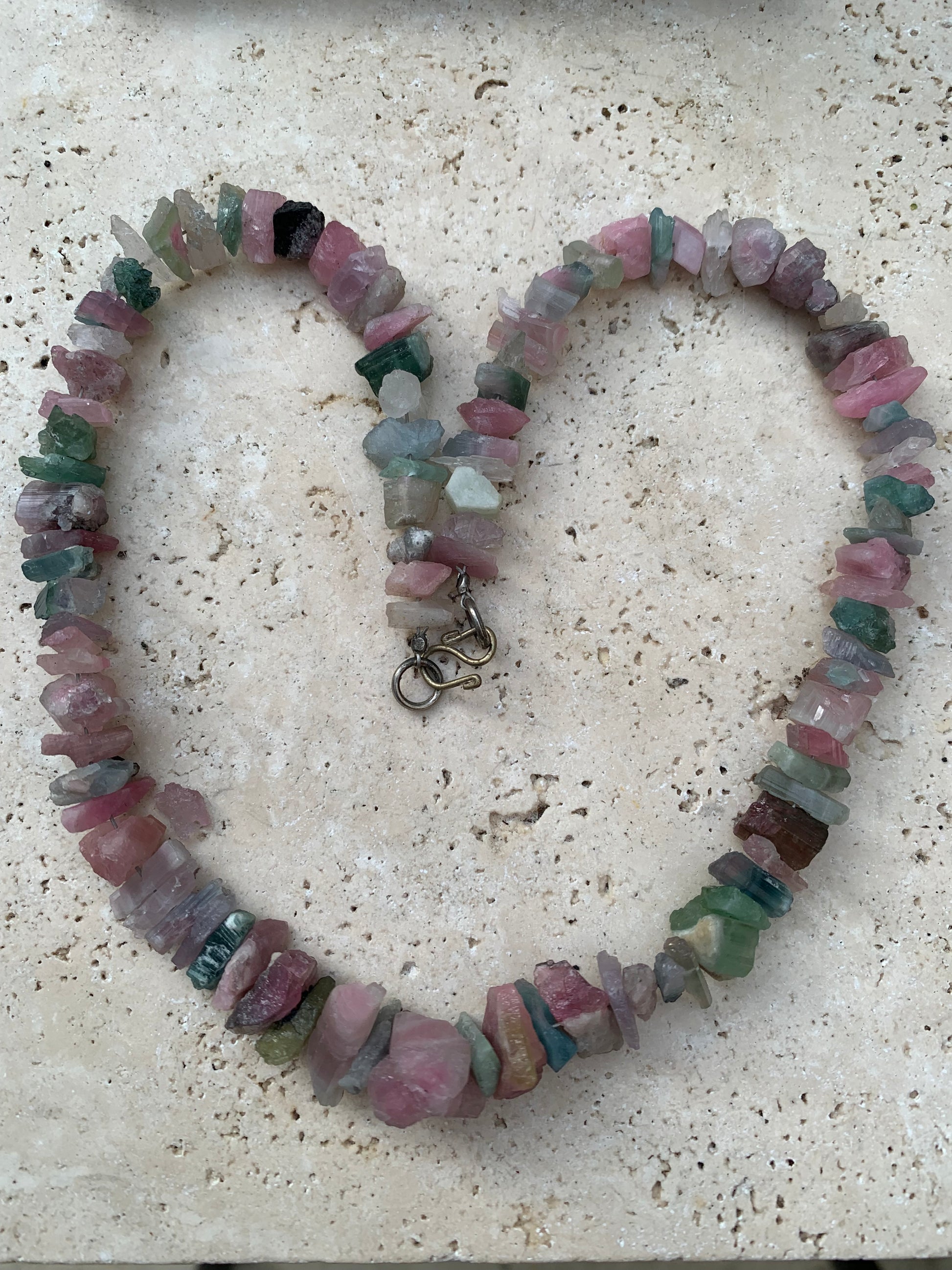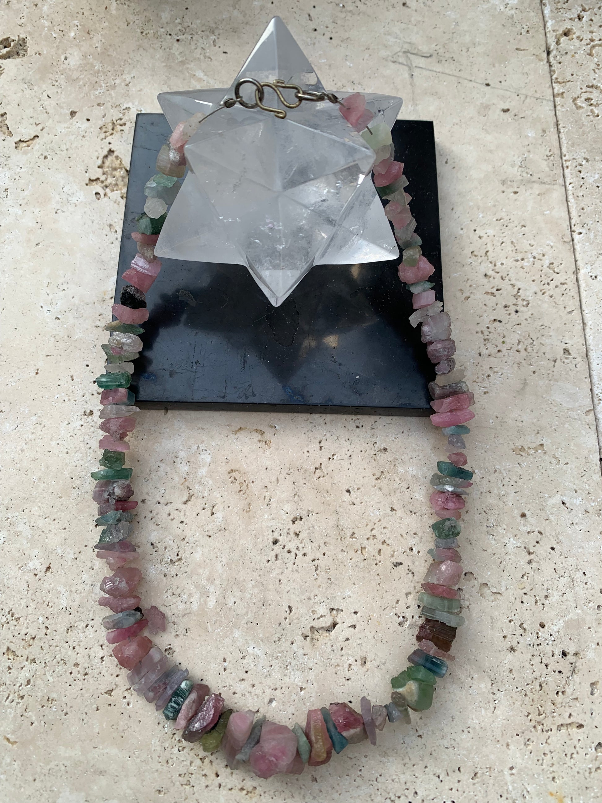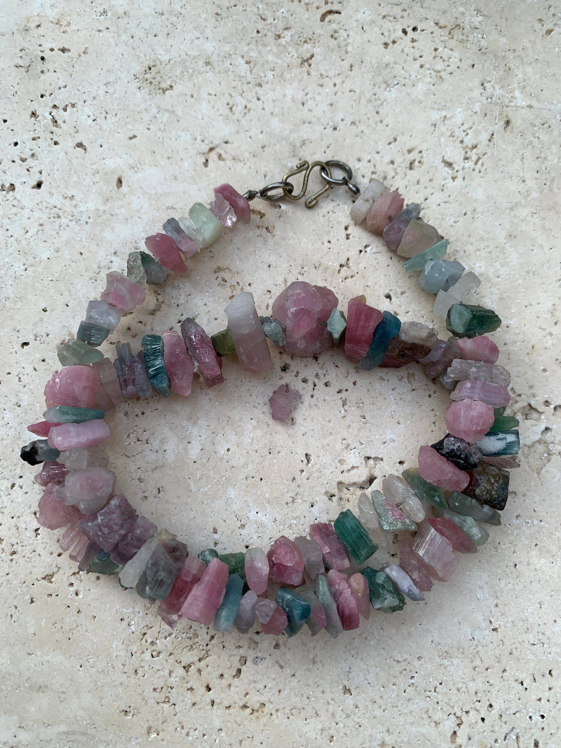 Bijoux d'exception, superbe collier en perle naturelle de tourmaline multicolore, 45cm de longueur. Fait sur Argent par G&Z !
