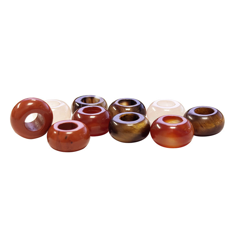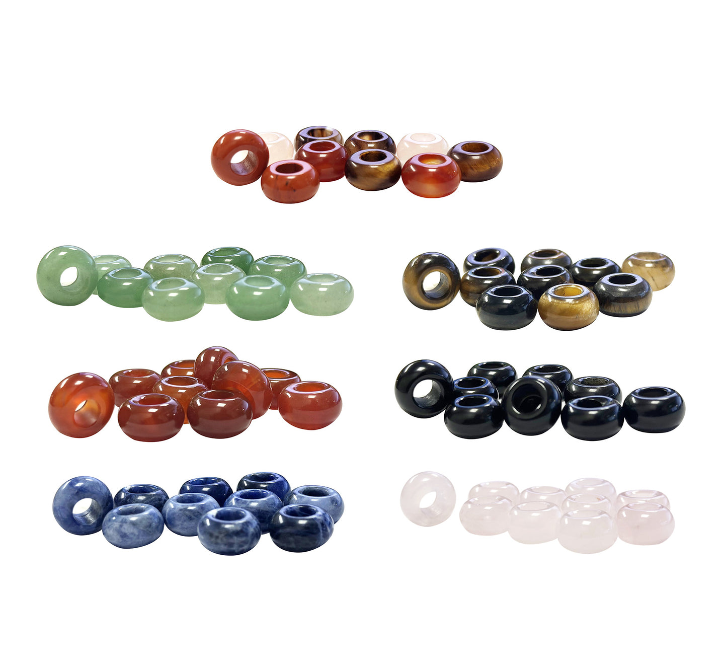 Perle gros trou disponible en Sodalite, Œil de Tigre, Quartz Rose, Aventurine, Onyx, Cornaline ou bien en assortiment.