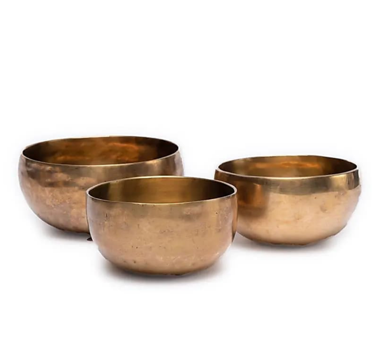 Aspect | Bol métallique creux, de différentes tailles, parfois décoré de motifs ou mantras |