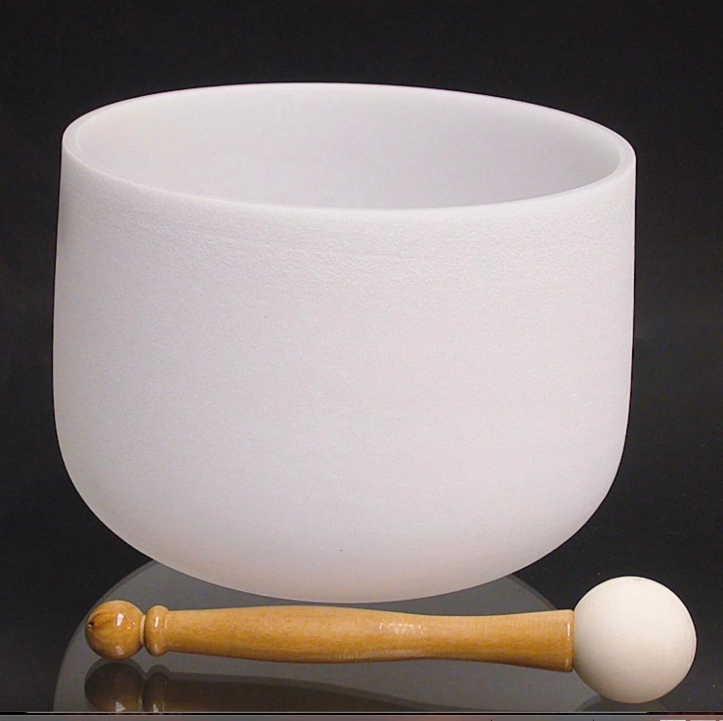 Bol chantant en cristal givré, 'épaisseur renforcé' pour + de sons medium/ basses. tailles de 17,5 à 32,5 cm - 1300 à 2600 grammes - Toute les notes sont disponibles ! Vendu avec maillet et anneau de soutien !