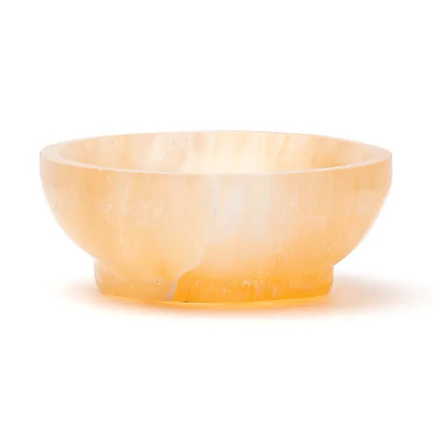 Bol rond en pierre de sélénite couleur pêche : ± 10 x 4 cm de diamètre - 300 gr.