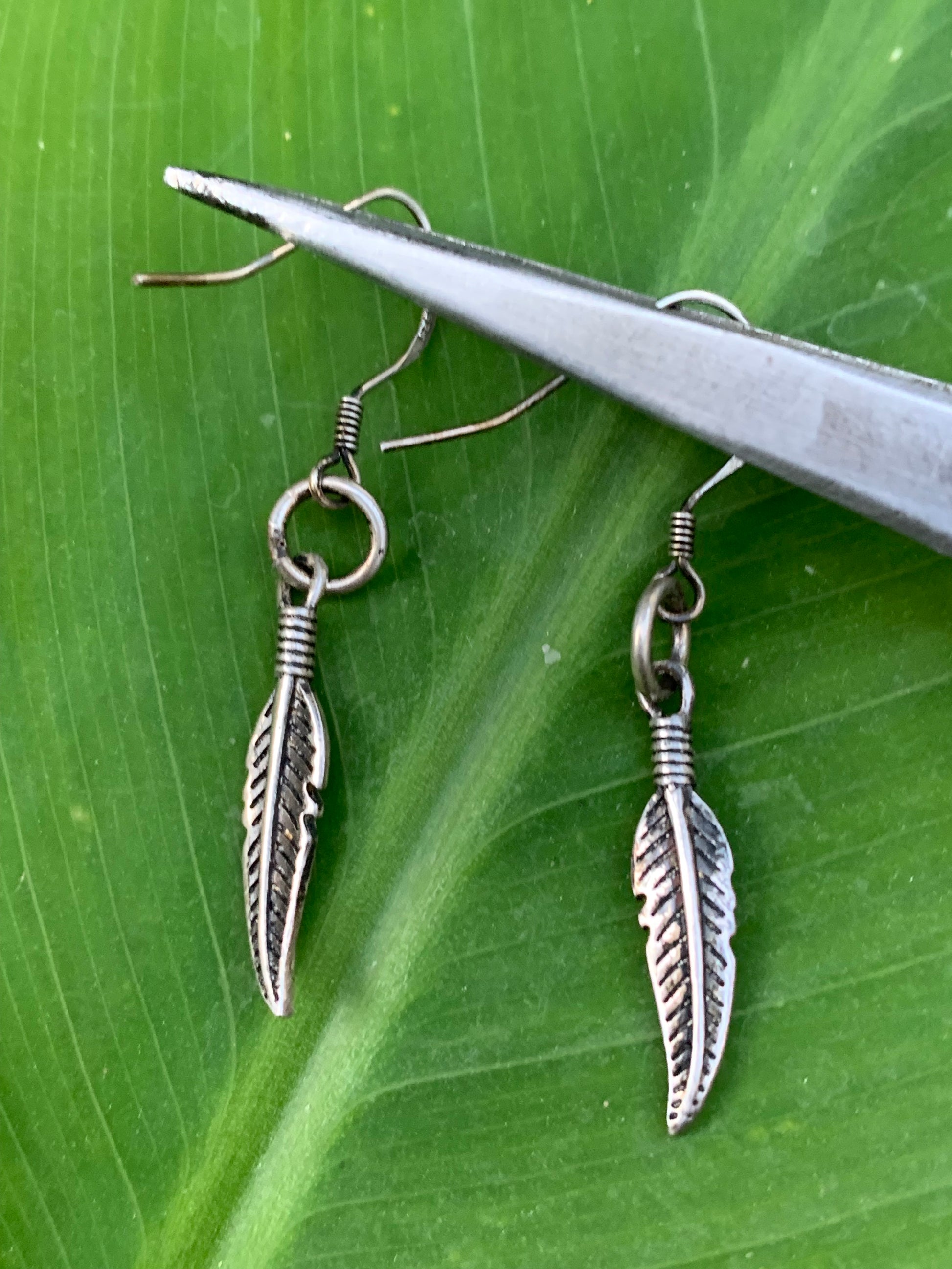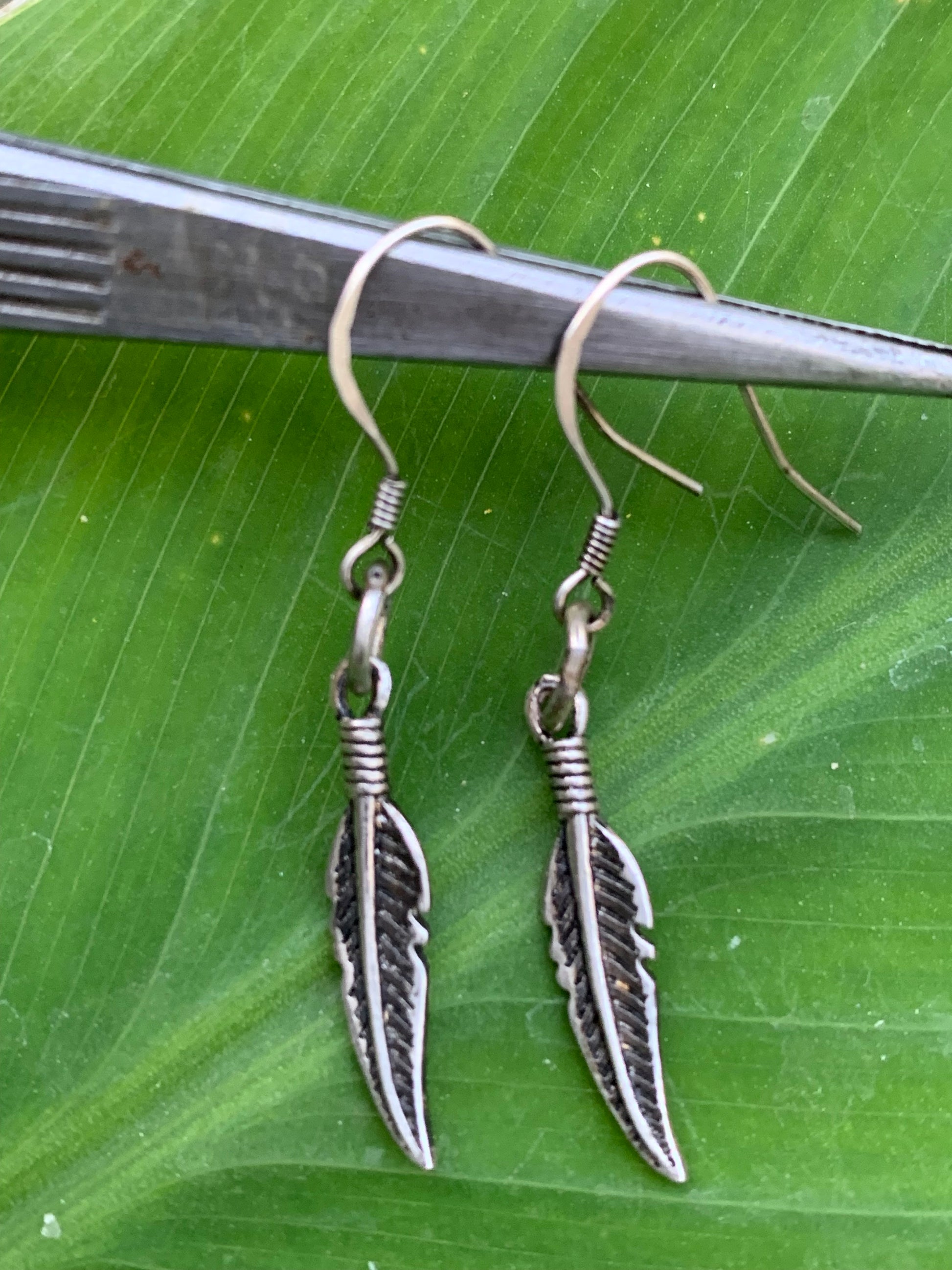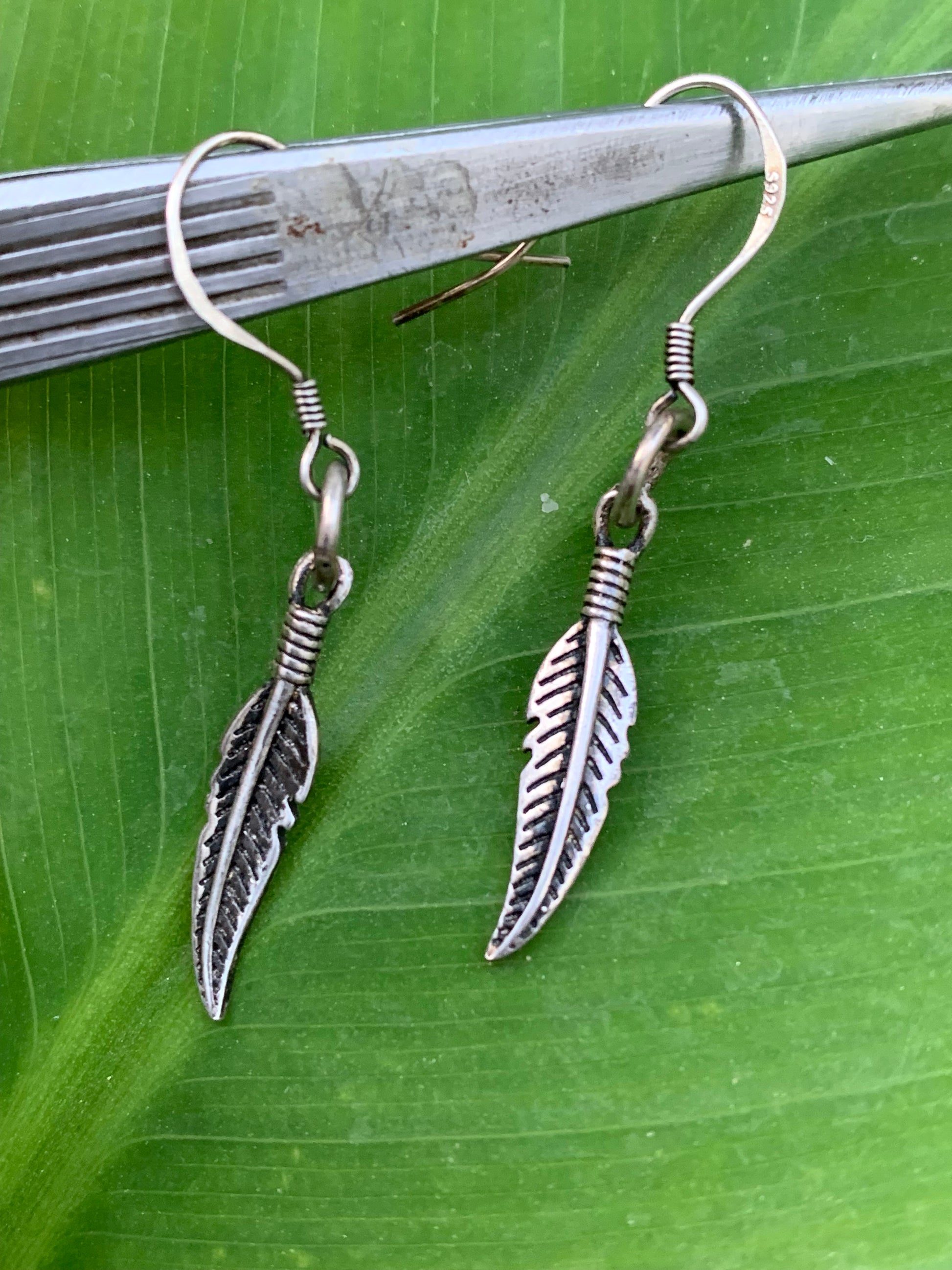 Boucles d'oreilles avec plumes en Argent 0.925, 40 millimètres de longueur, vendu avec bouchon 'stop', parfait !