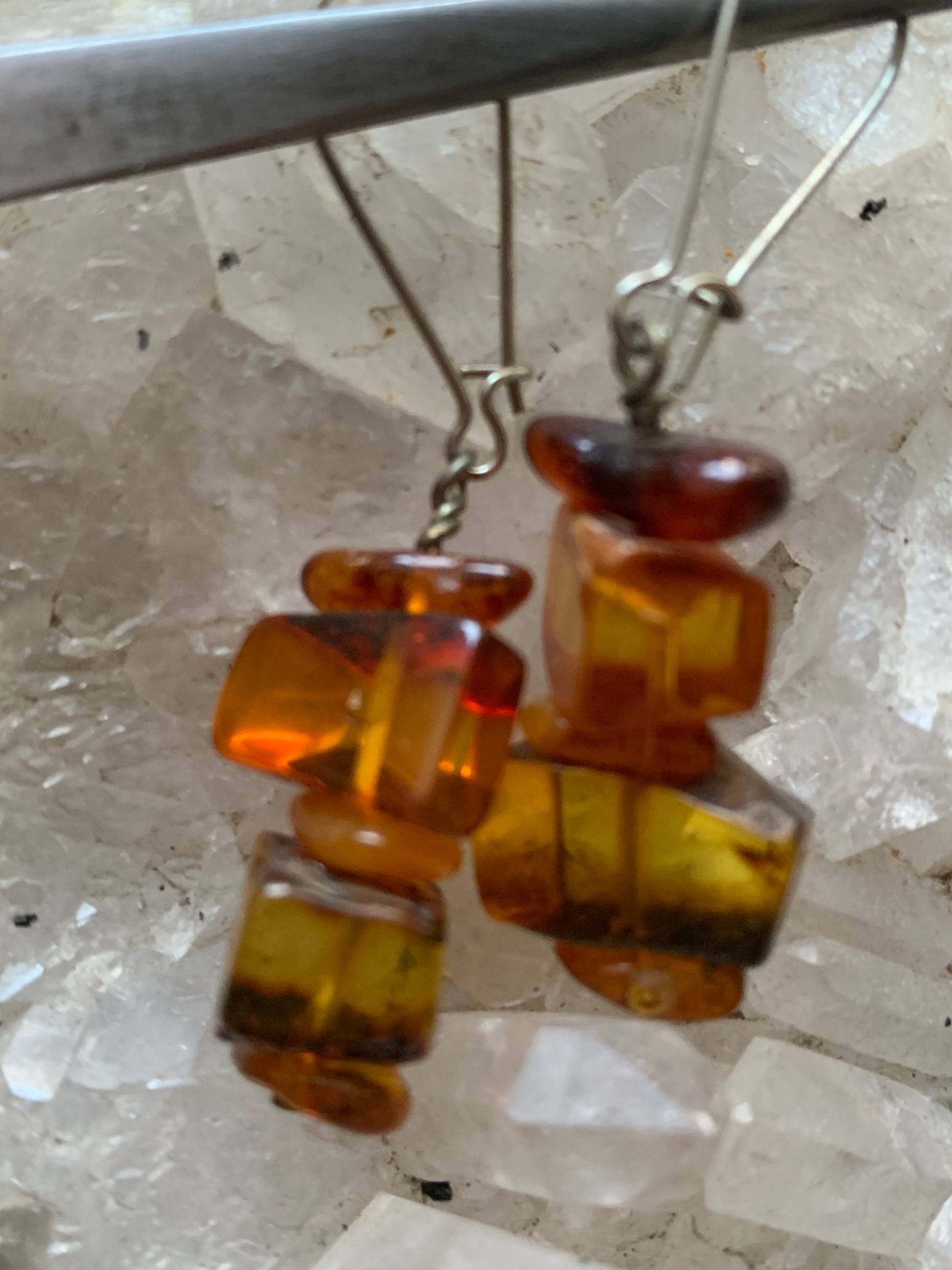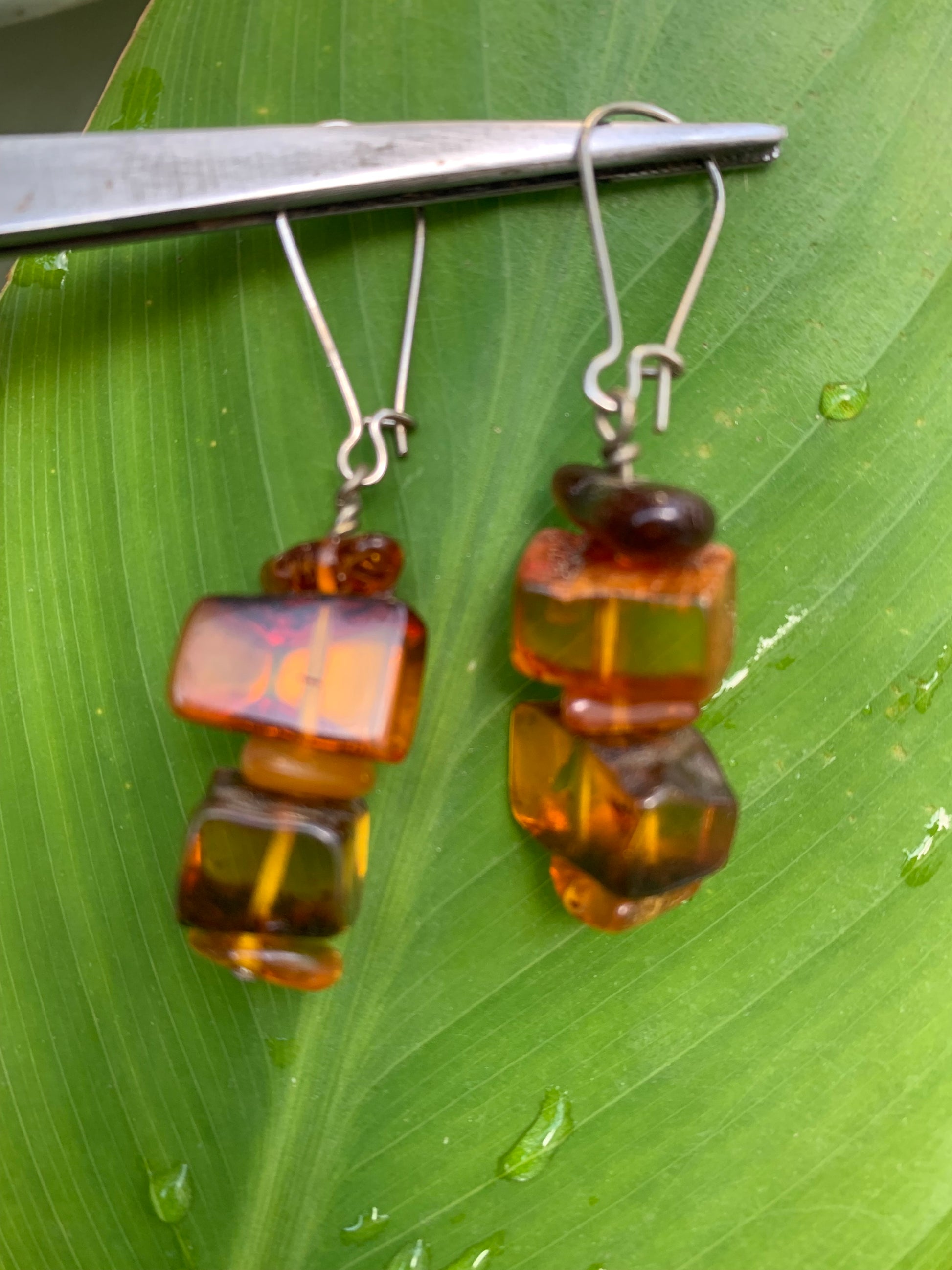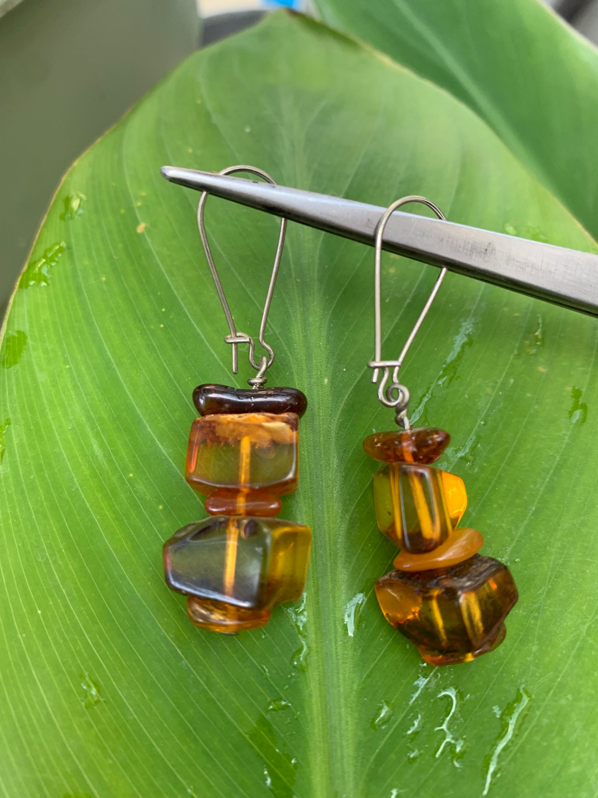 Boucles d'oreilles en Ambre, qualité AA à AA, montées par "Gem & Zen". Vendu en finition Argent, laiton ton Argent ou doré + options pour des choix de montures, parfait !