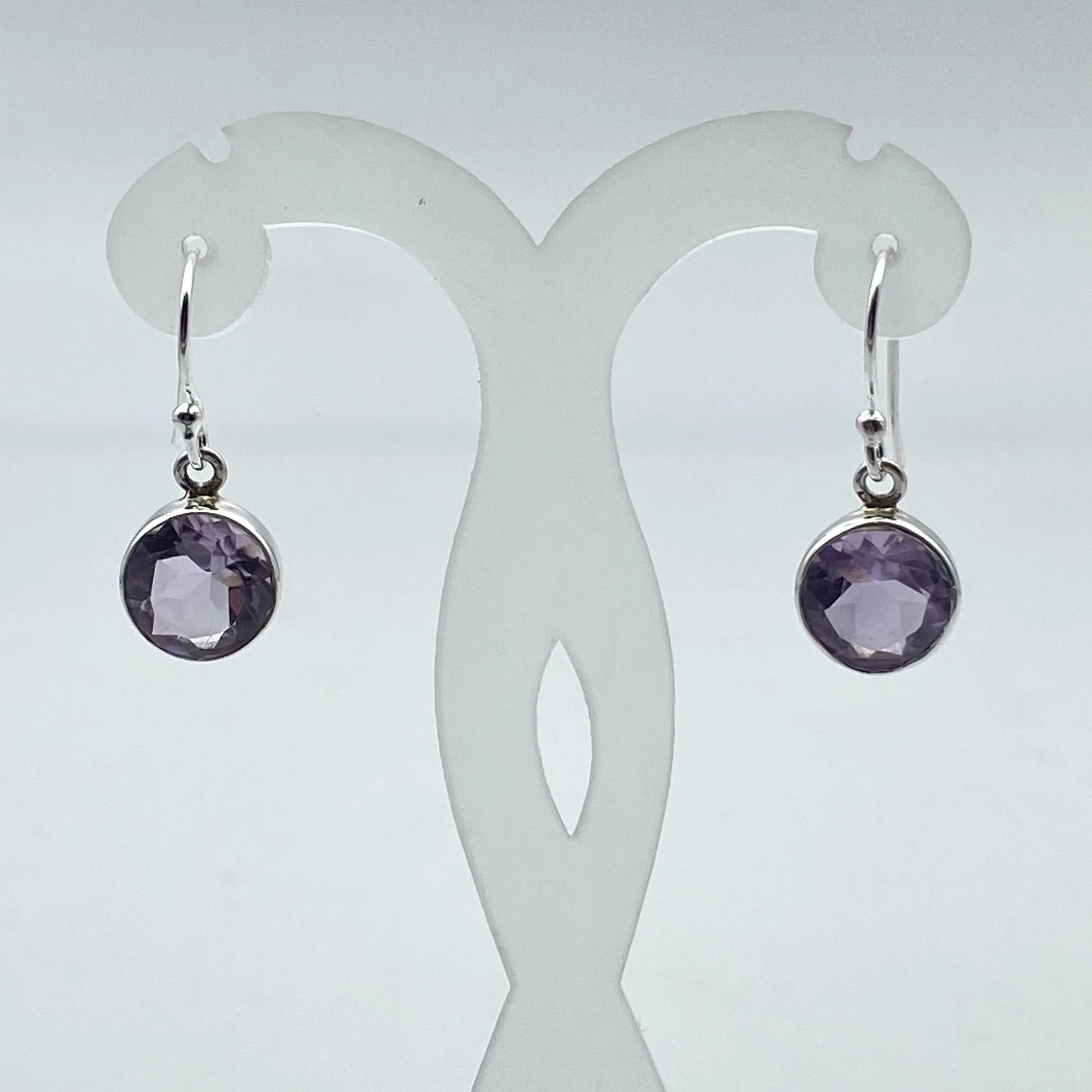 Boucles d'oreilles en Améthyste, cabochon facetté sertis Argent 925, qualité AA à AAA !