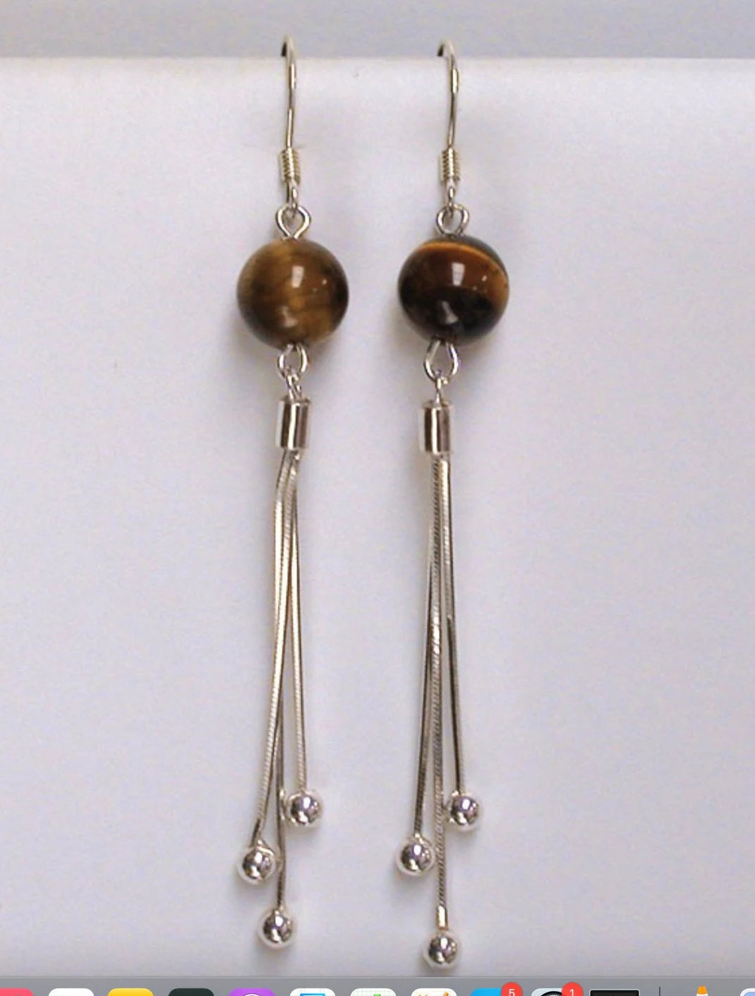 Boucles d'oreilles Argent, en améthyste, citrine, lapis lazuli ou oeil de tigre, perle de 8mm avec fantaisies, qualité AA à AAA !