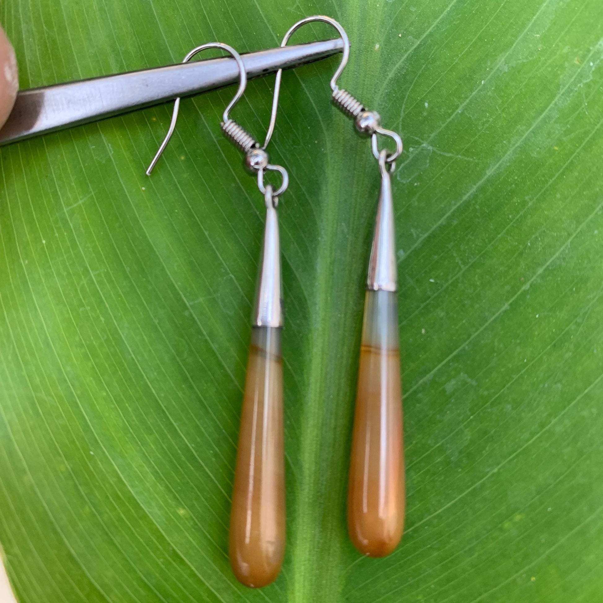 Boucles d'oreilles en Cornaline, pierre sertis de forme allongée, qualité A à AA. Vendu en finition Argent 0.925, superbe pierre à l'énergie incroyable, parfait !