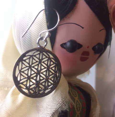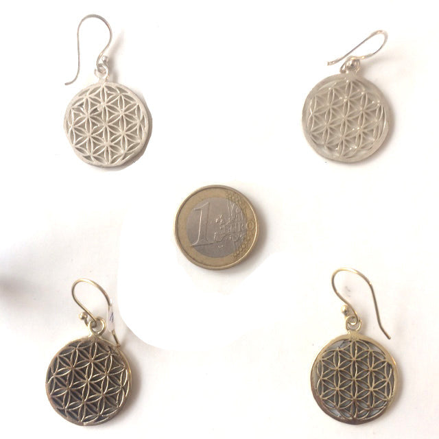 Boucles d'oreilles en forme de fleur de vie, 25 millimètres de diamètre, finition laiton argenté ou doré, parfait !