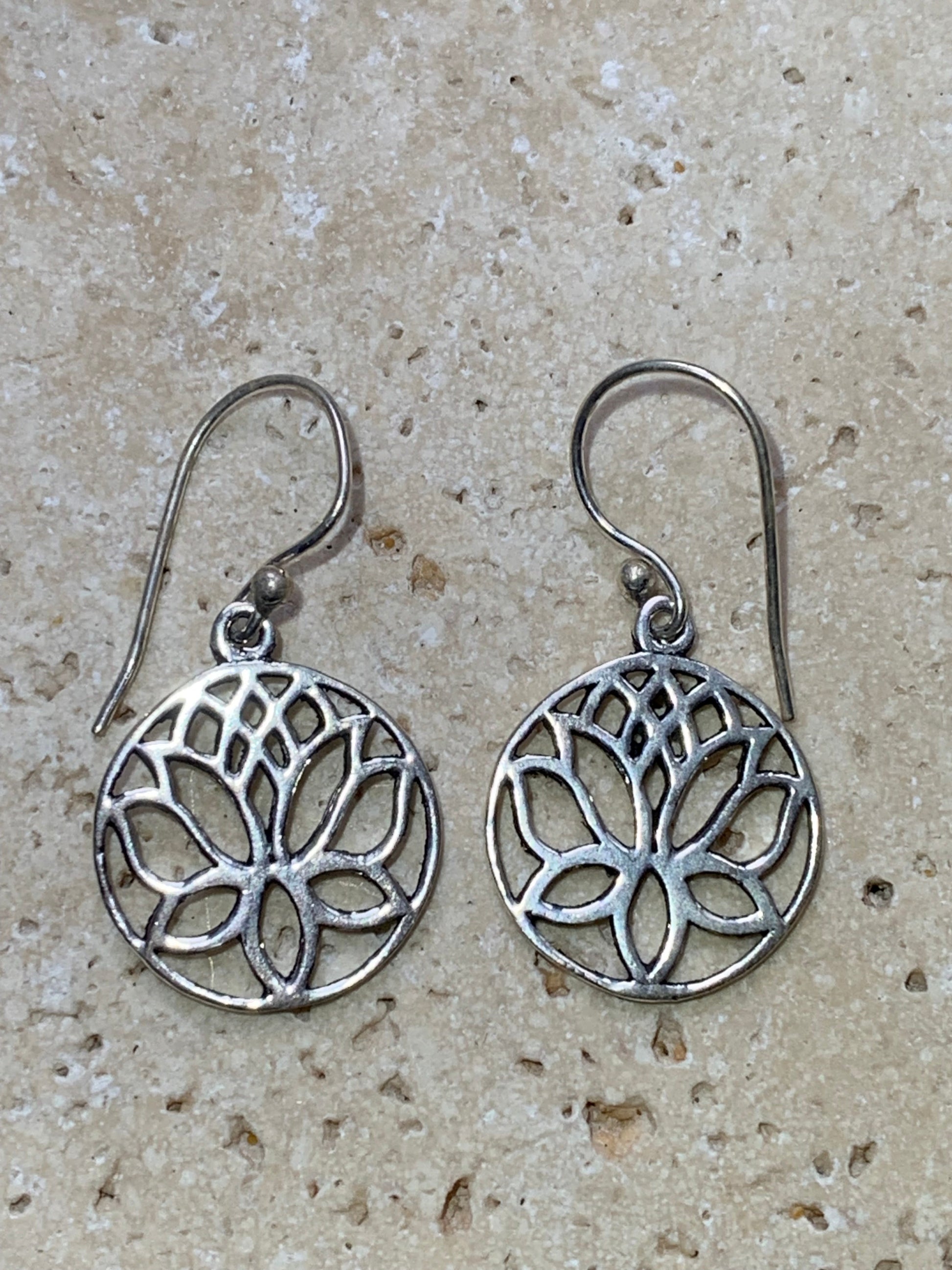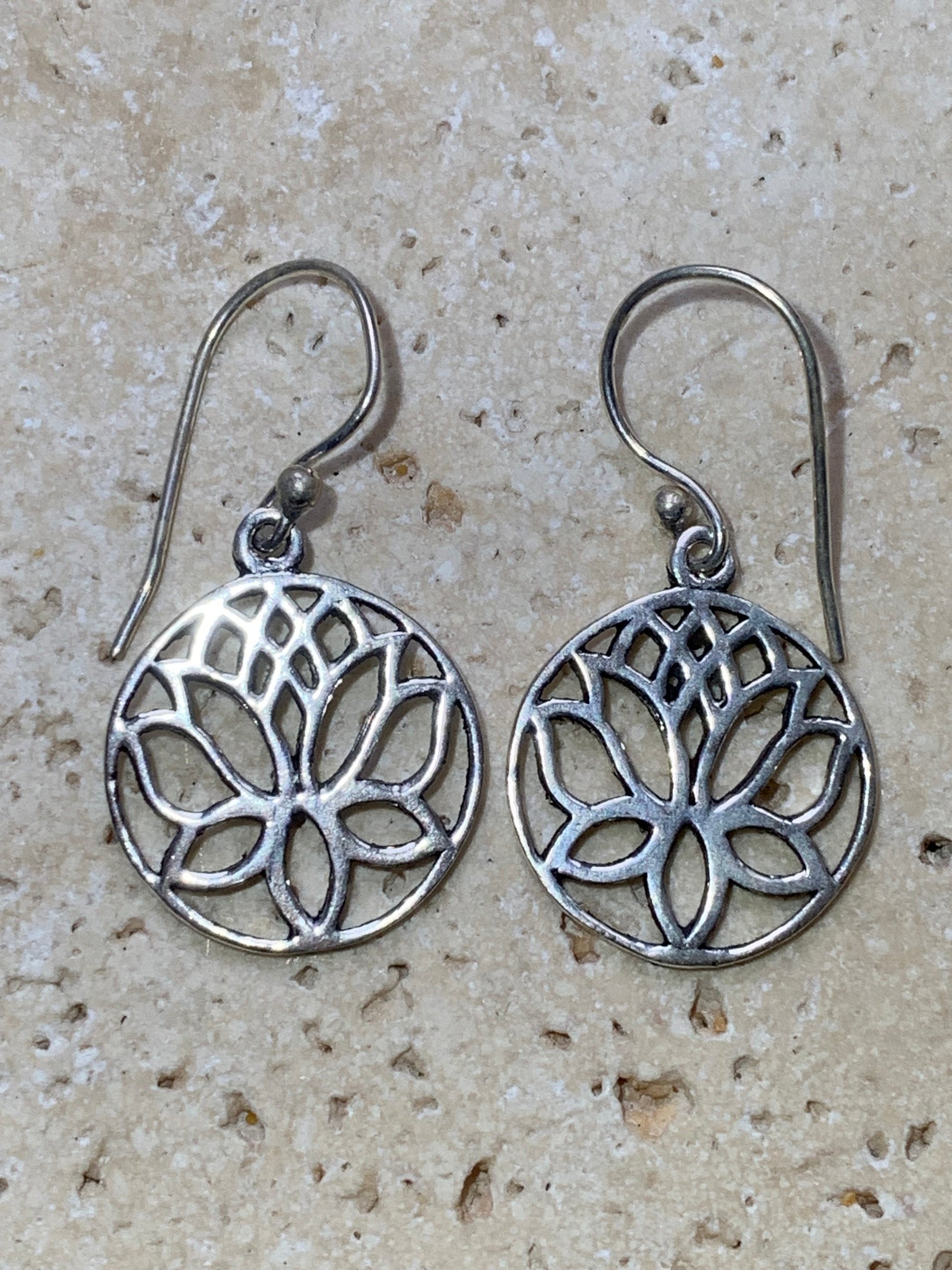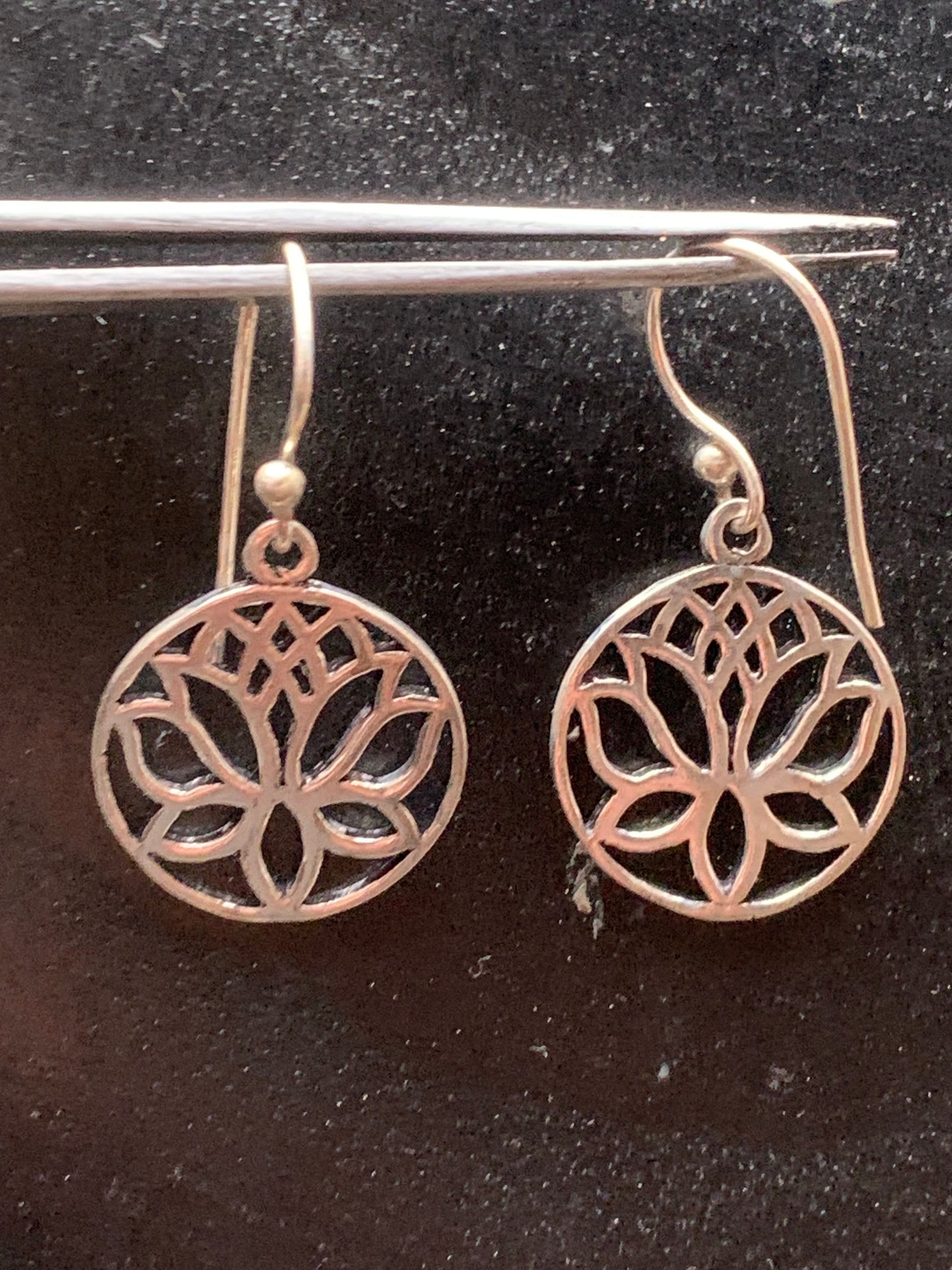 Boucles d'oreilles en forme de Lotus de 19 millimètres de diamètre, finition argenté, très beau modèle, simple et élégant parfait !