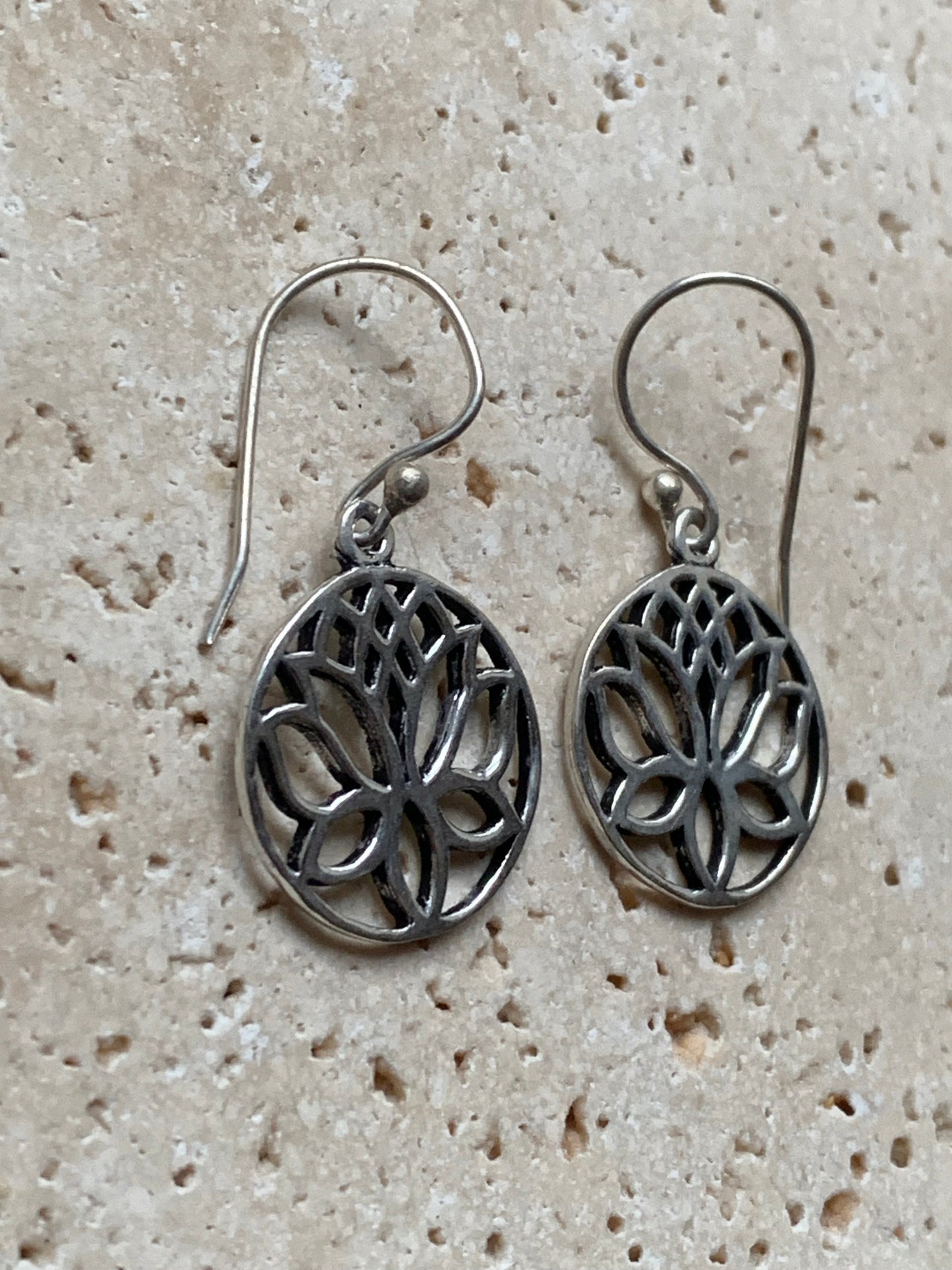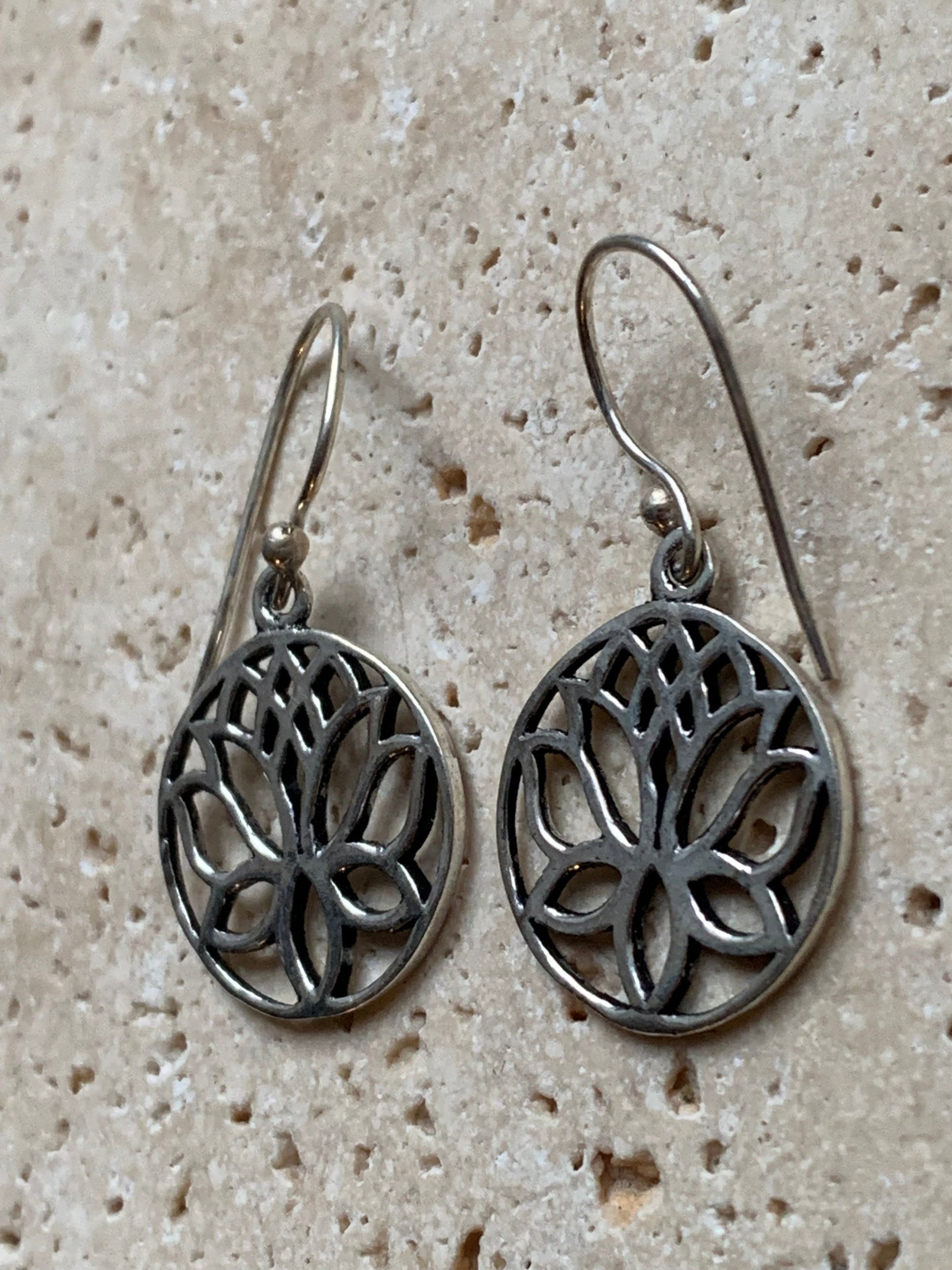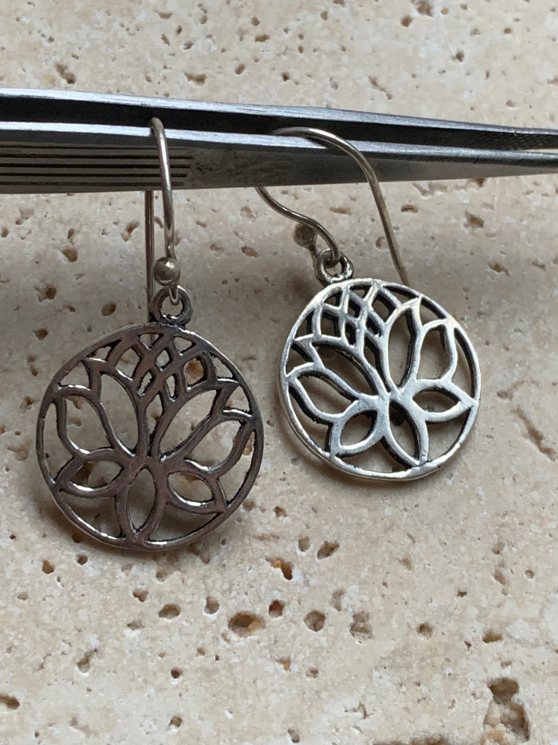 Boucles d'oreilles en forme de Lotus de 19 millimètres de diamètre, finition argenté, très beau modèle, simple et élégant parfait !