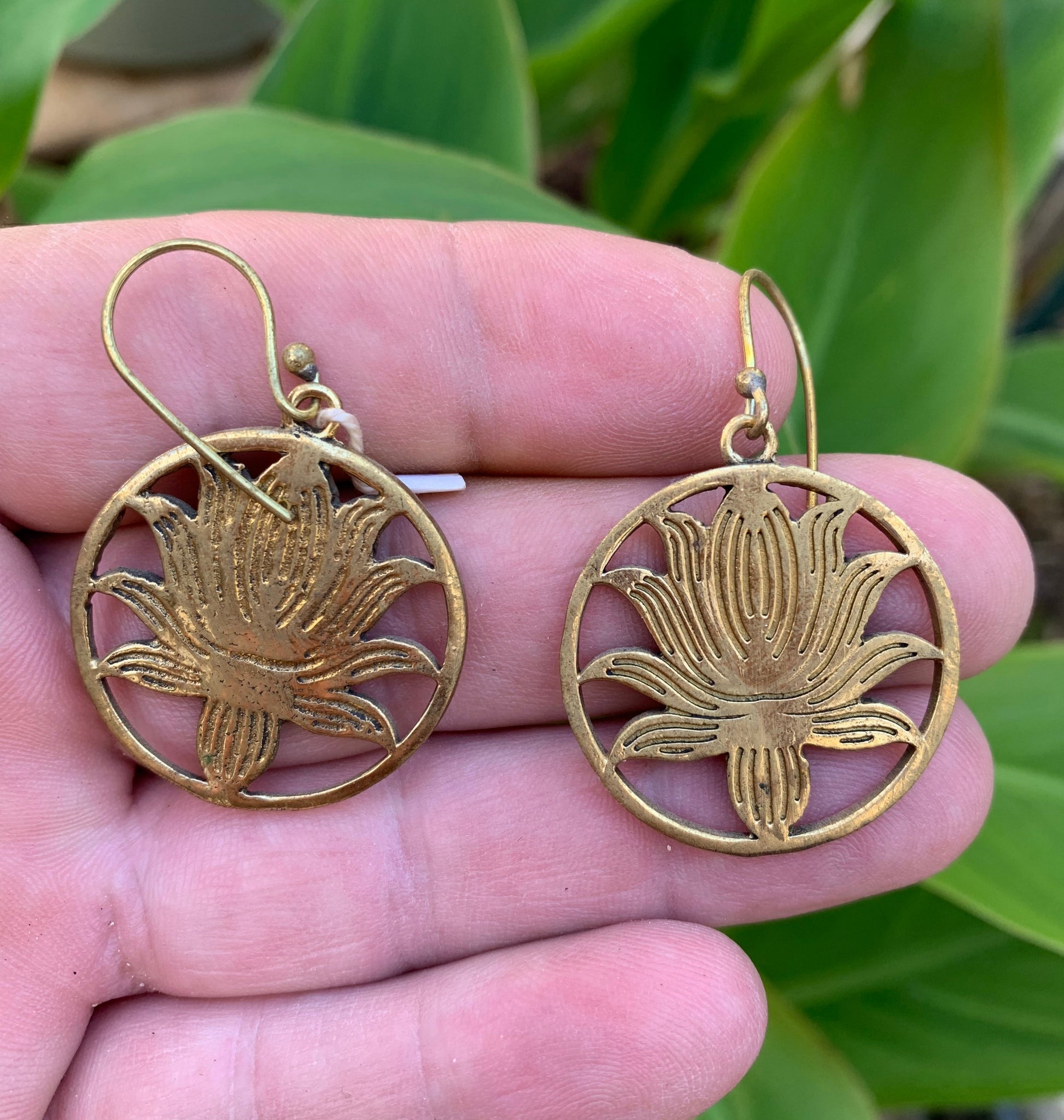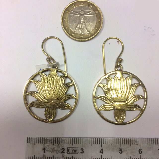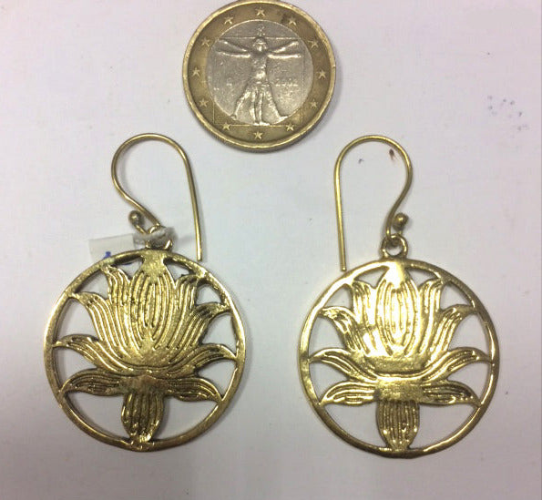 Boucles d'oreilles en forme de Lotus de 30 millimètres de diamètre, finition laiton, très beau modèle, parfait !