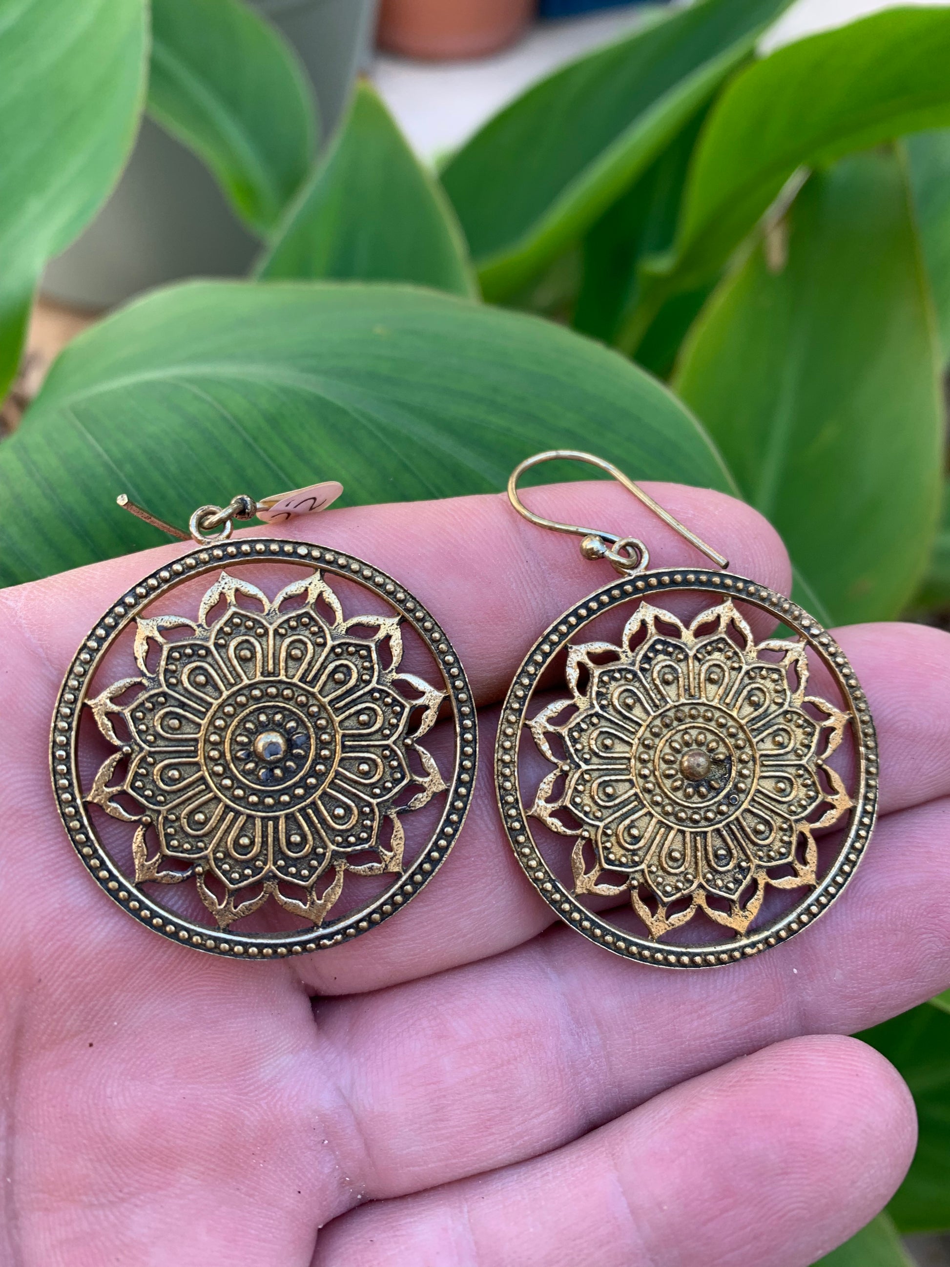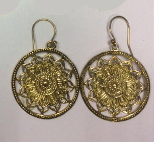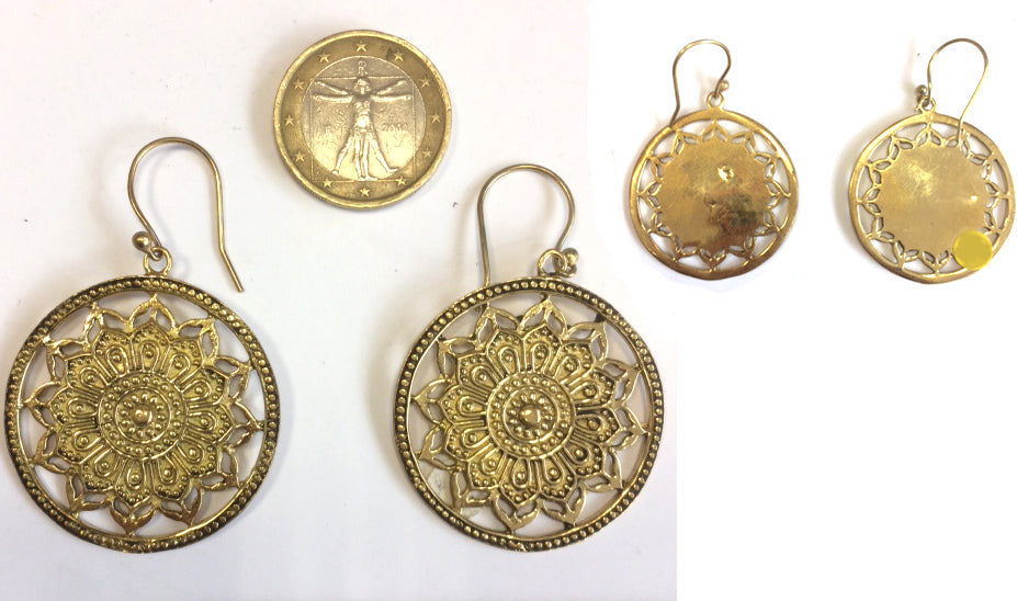 Boucles d'oreilles en forme de Mandala de 35 millimètres de diamètre, finition laiton, superbes pièces, parfait !