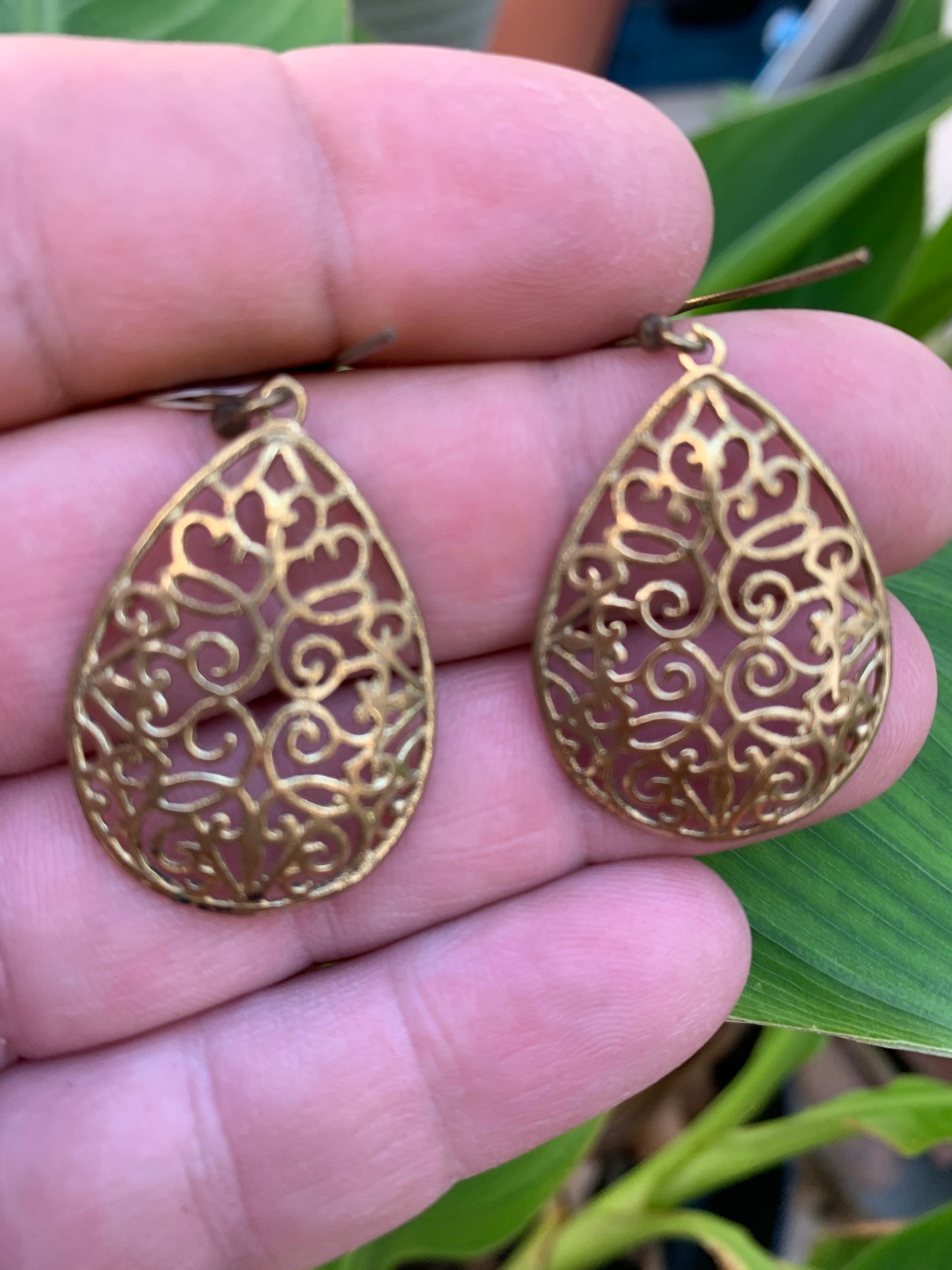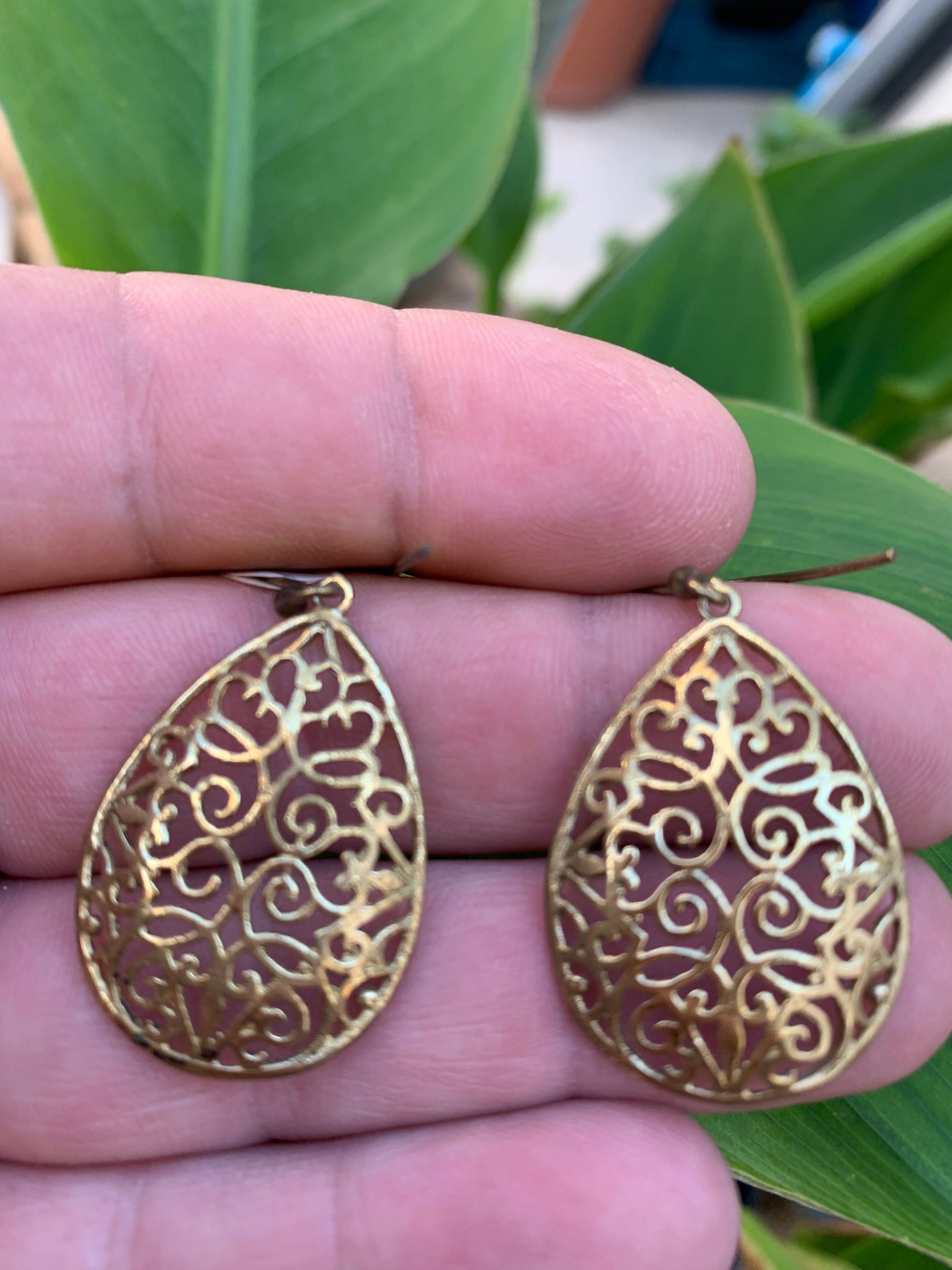 Boucles d'oreilles en forme de Mandala ovale de 35 millimètres de diamètre, hauteur totale de 55mm. Finition laiton, superbes pièces, parfait !
