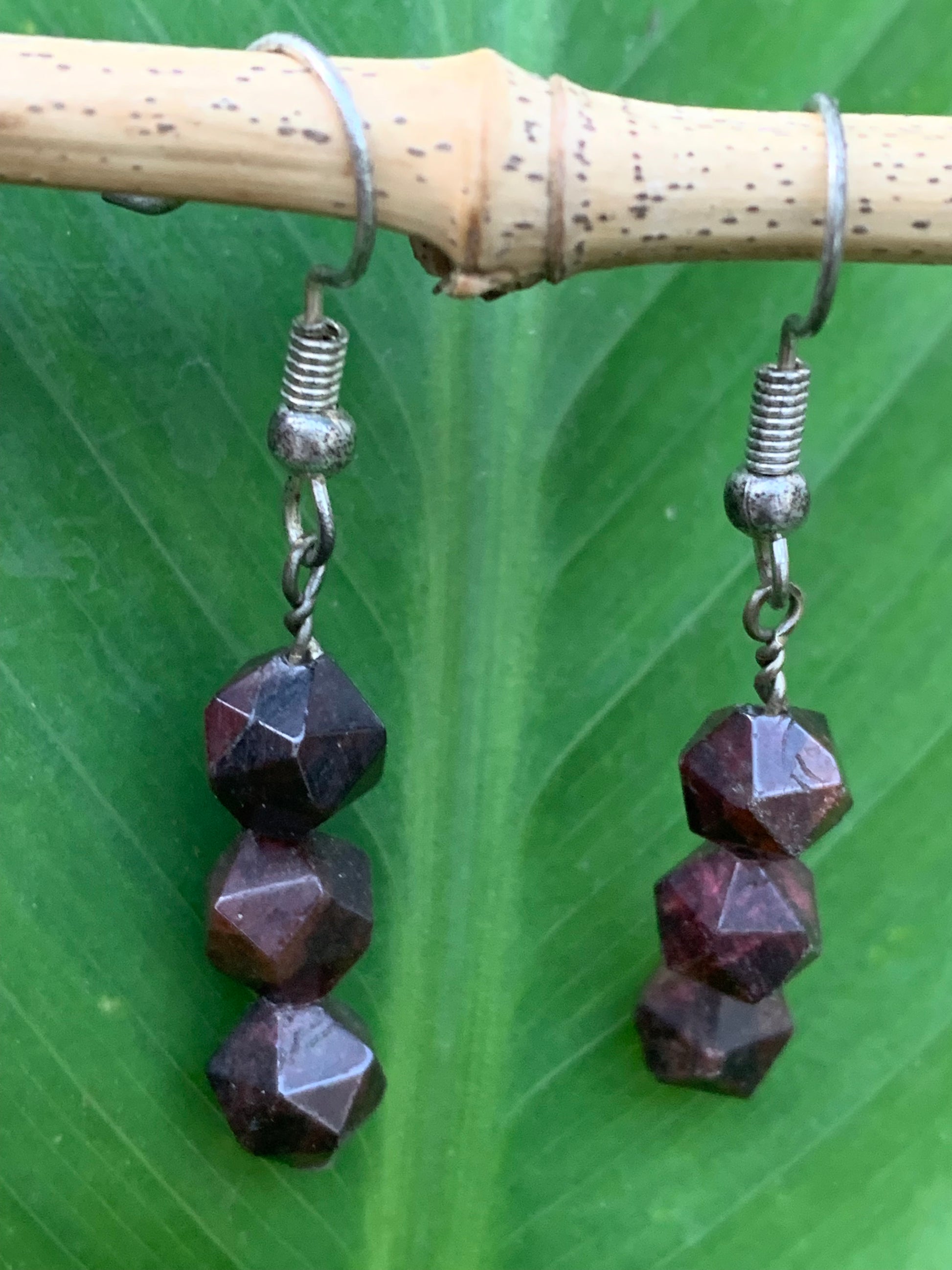 Boucles d'oreilles en Grenat Almandin, en perles icosaedre, qualité AA à AAA. Vendu en finition Argent, parfait !