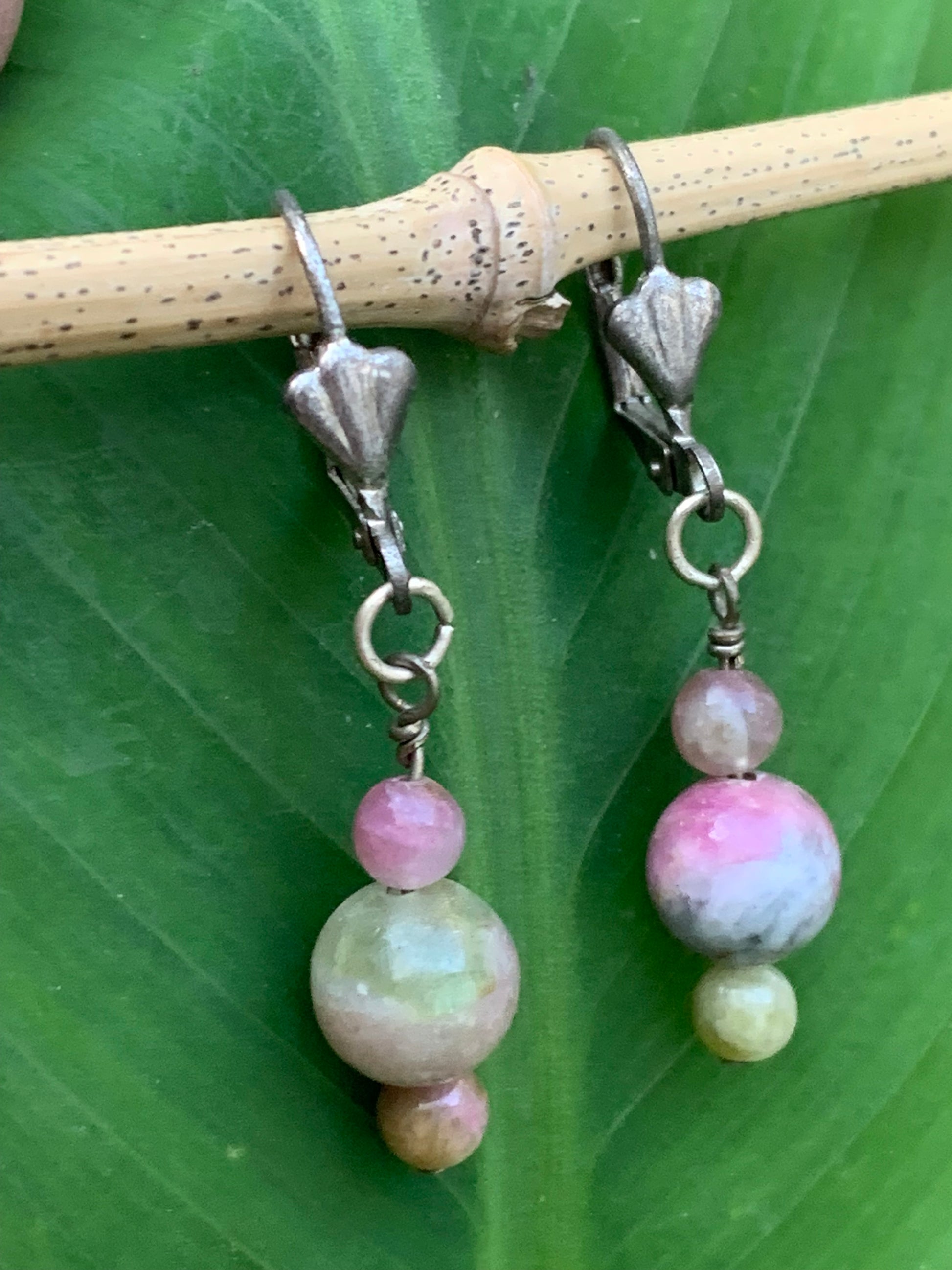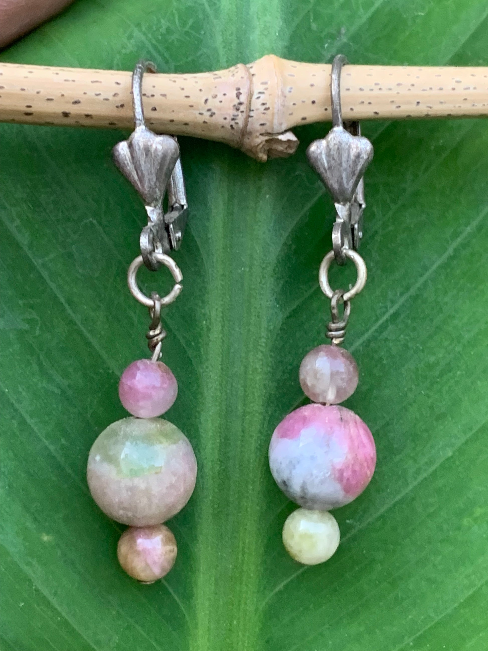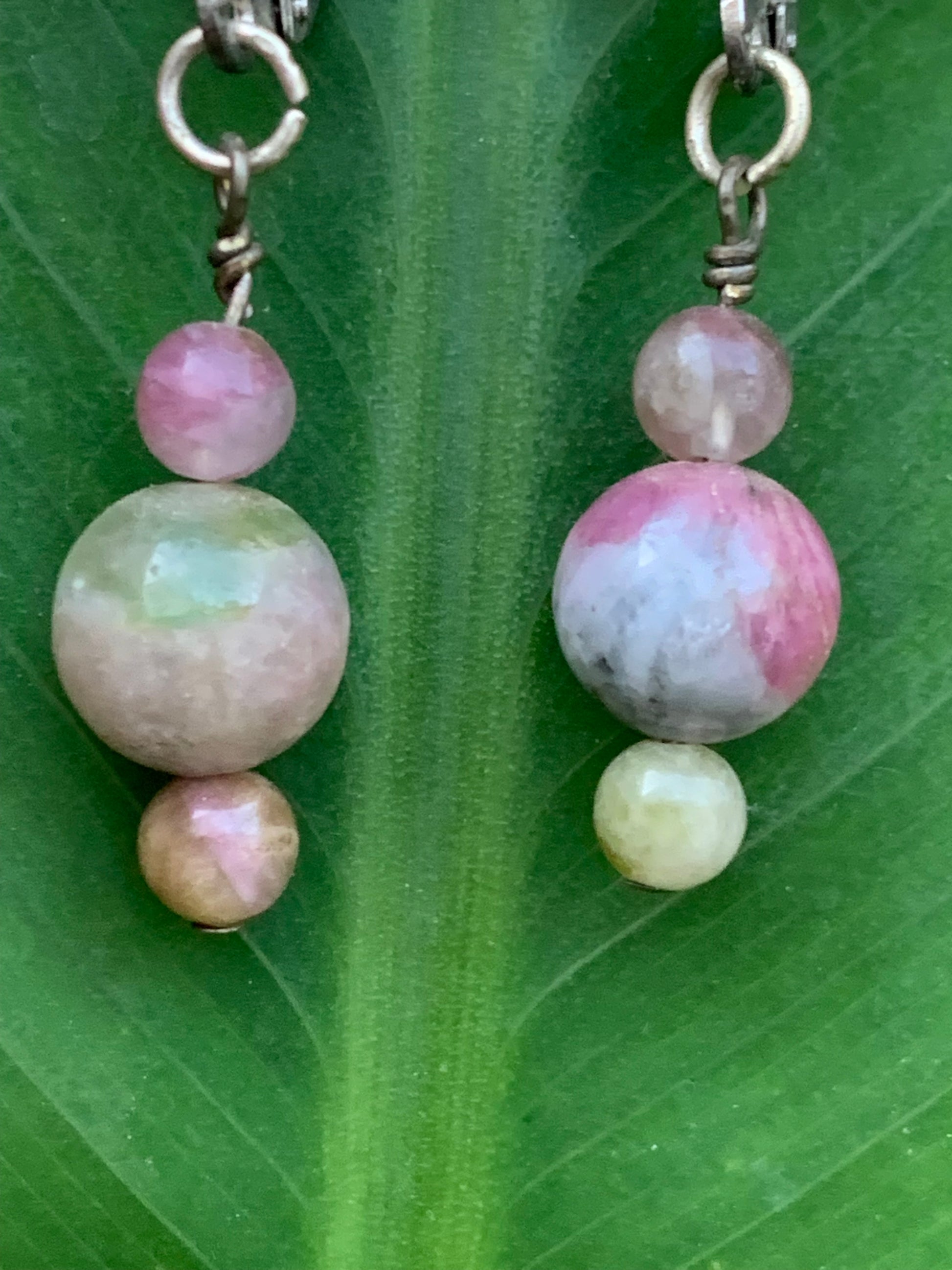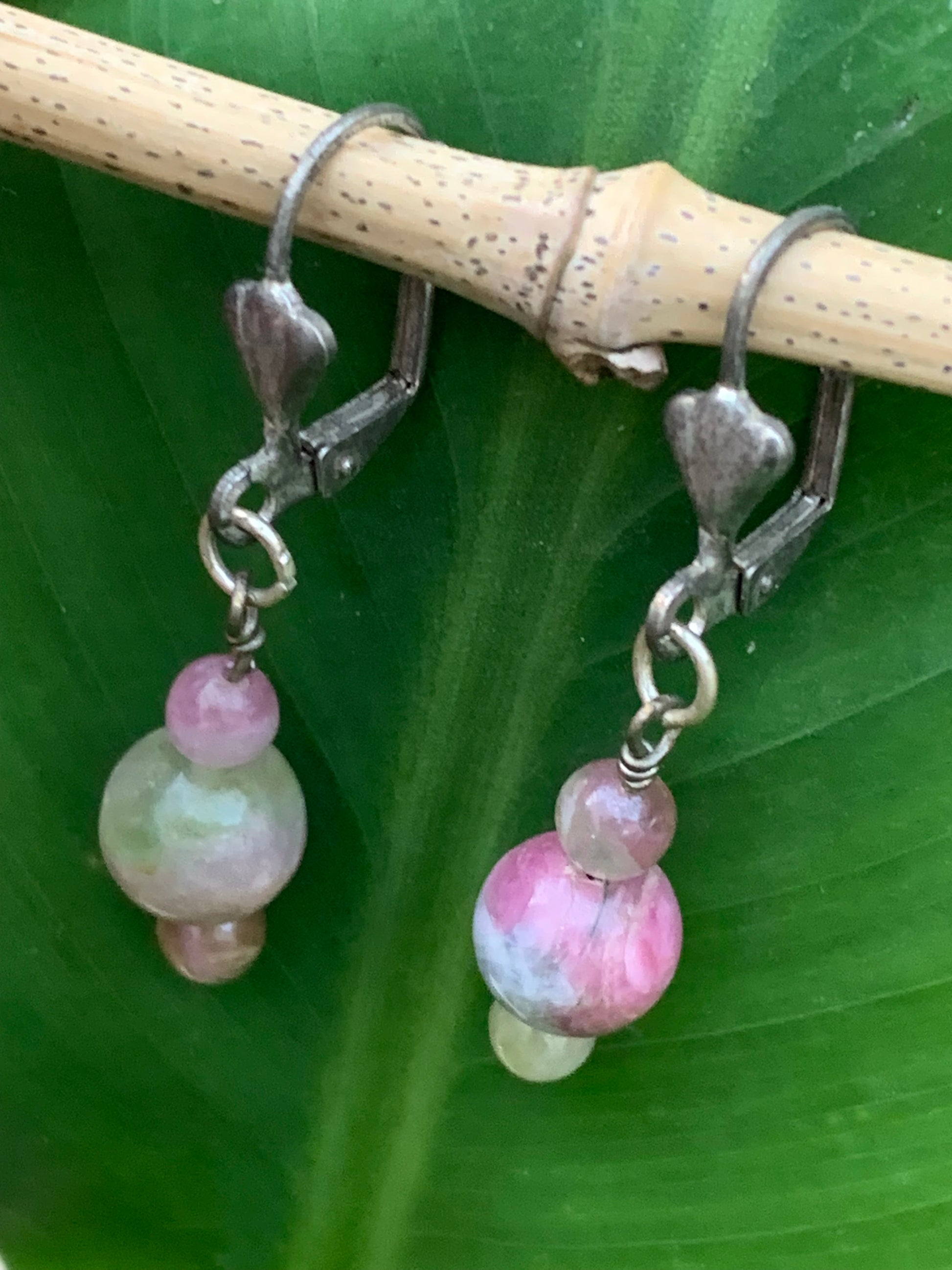 Boucles d'oreilles en Tourmaline rose (Rubellite), 3 perles sur tige en métal, qualité AA à AAA. Vendu en Argent ou en laiton finition argenté ou doré, parfait !