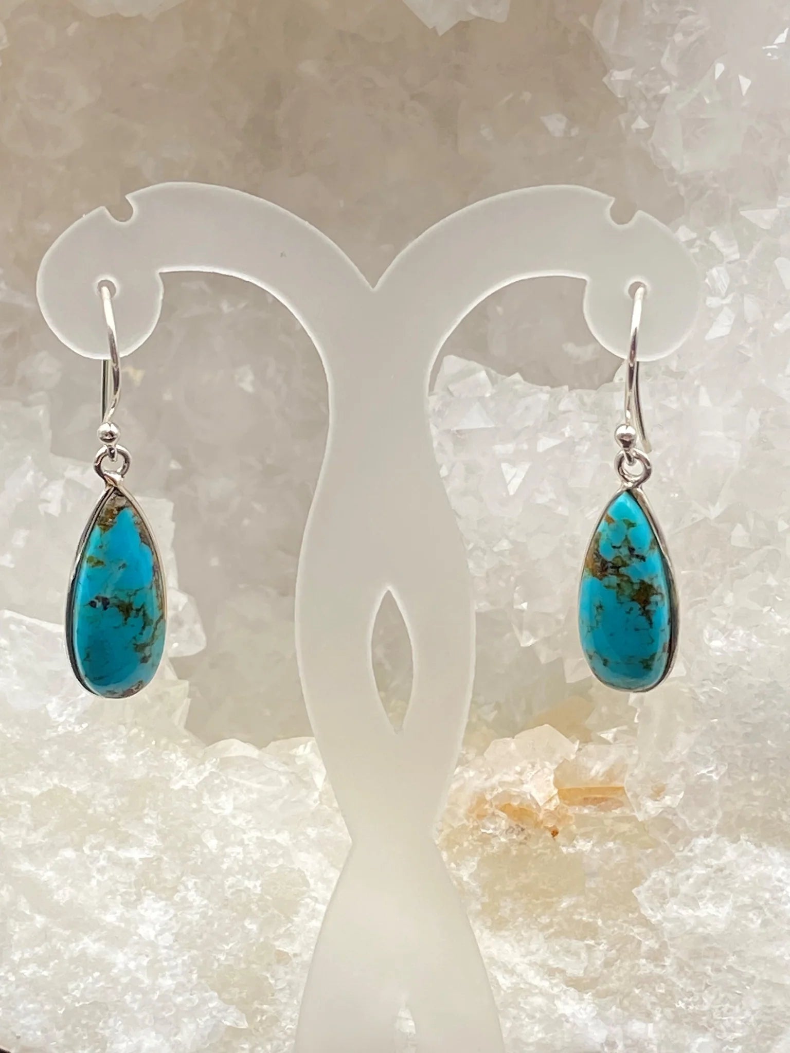 Boucles d'oreilles en Turquoise , cabochon sertis en forme de 'goutte', qualité AA à AAA. Vendu en finition Argent, parfait !