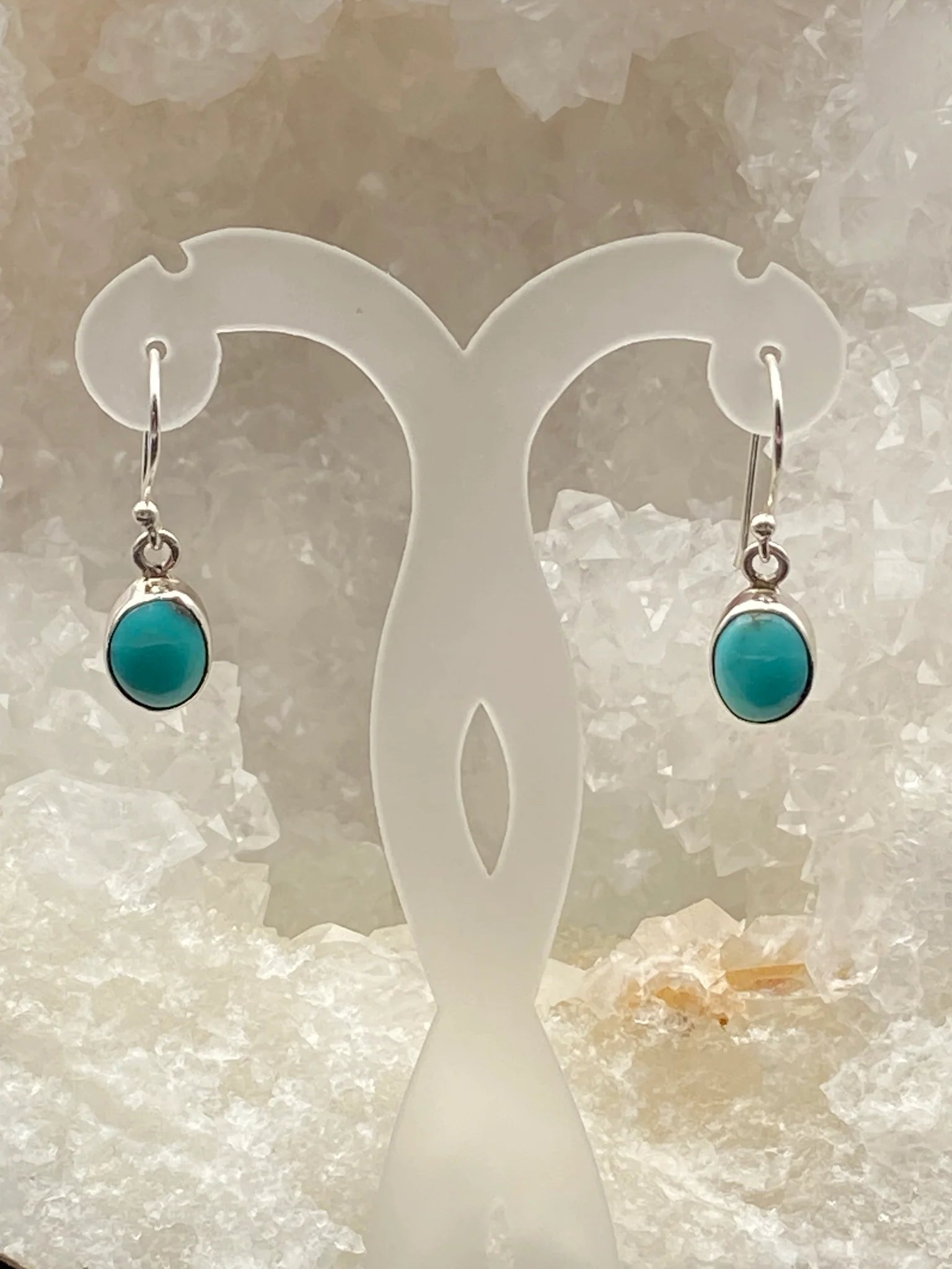 Boucles d'oreilles en Turquoise , cabochon sertis de forme ovale, qualité AA à AAA. Vendu en finition Argent, parfait !