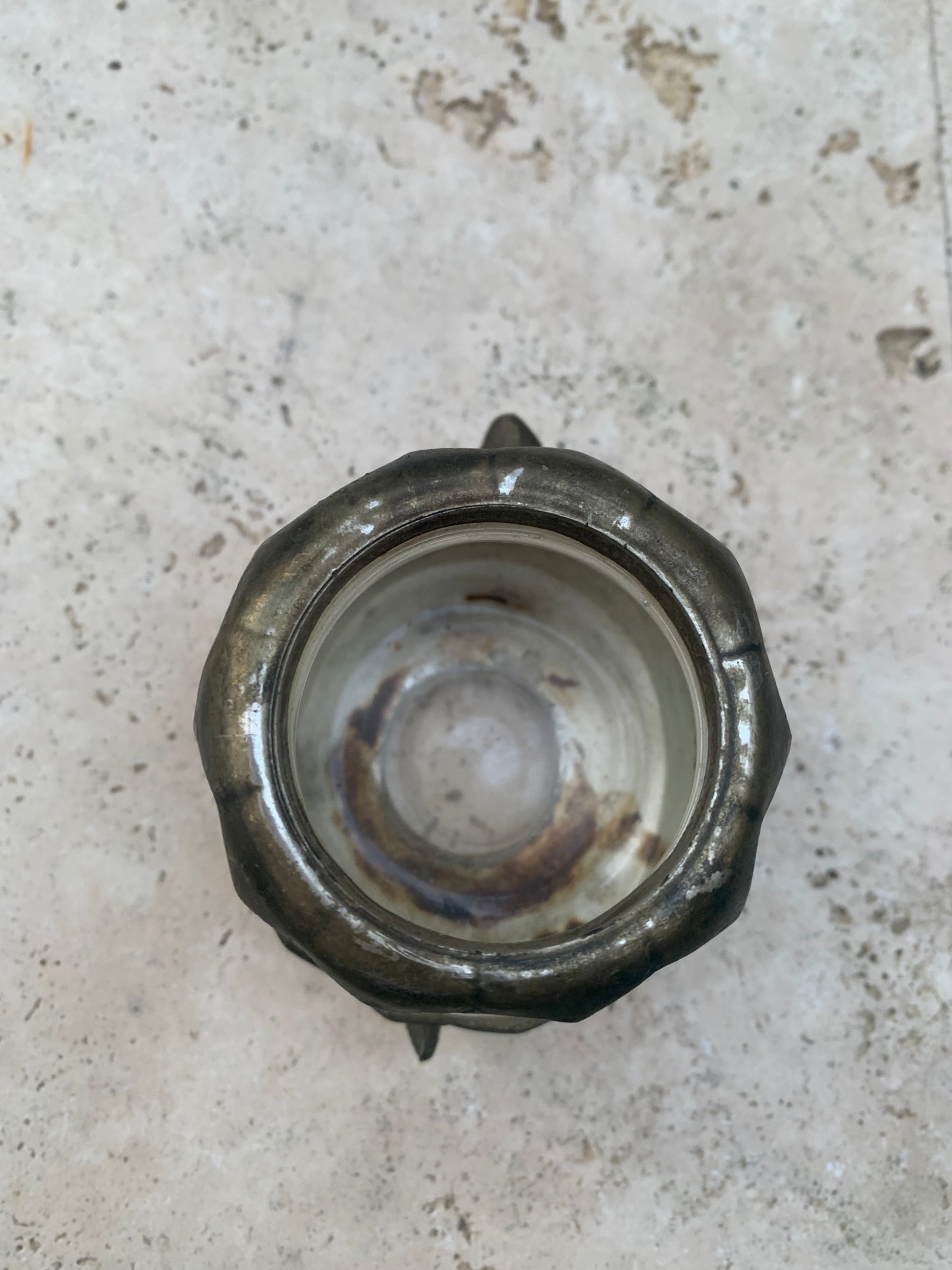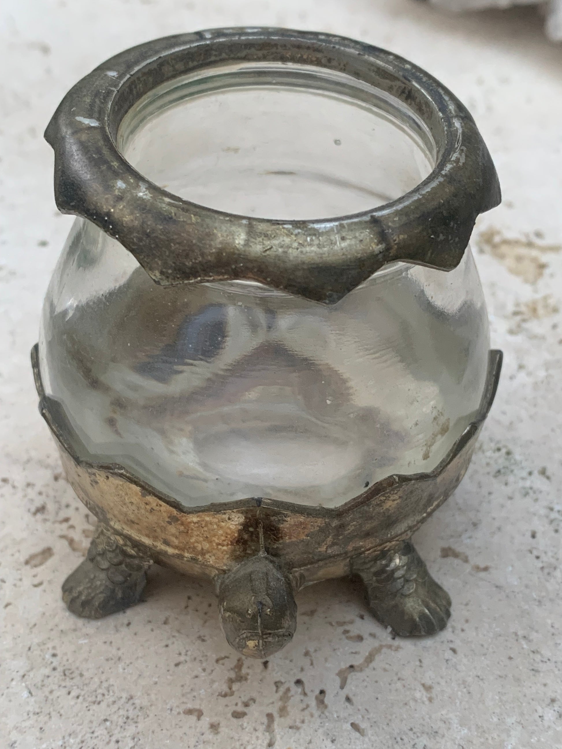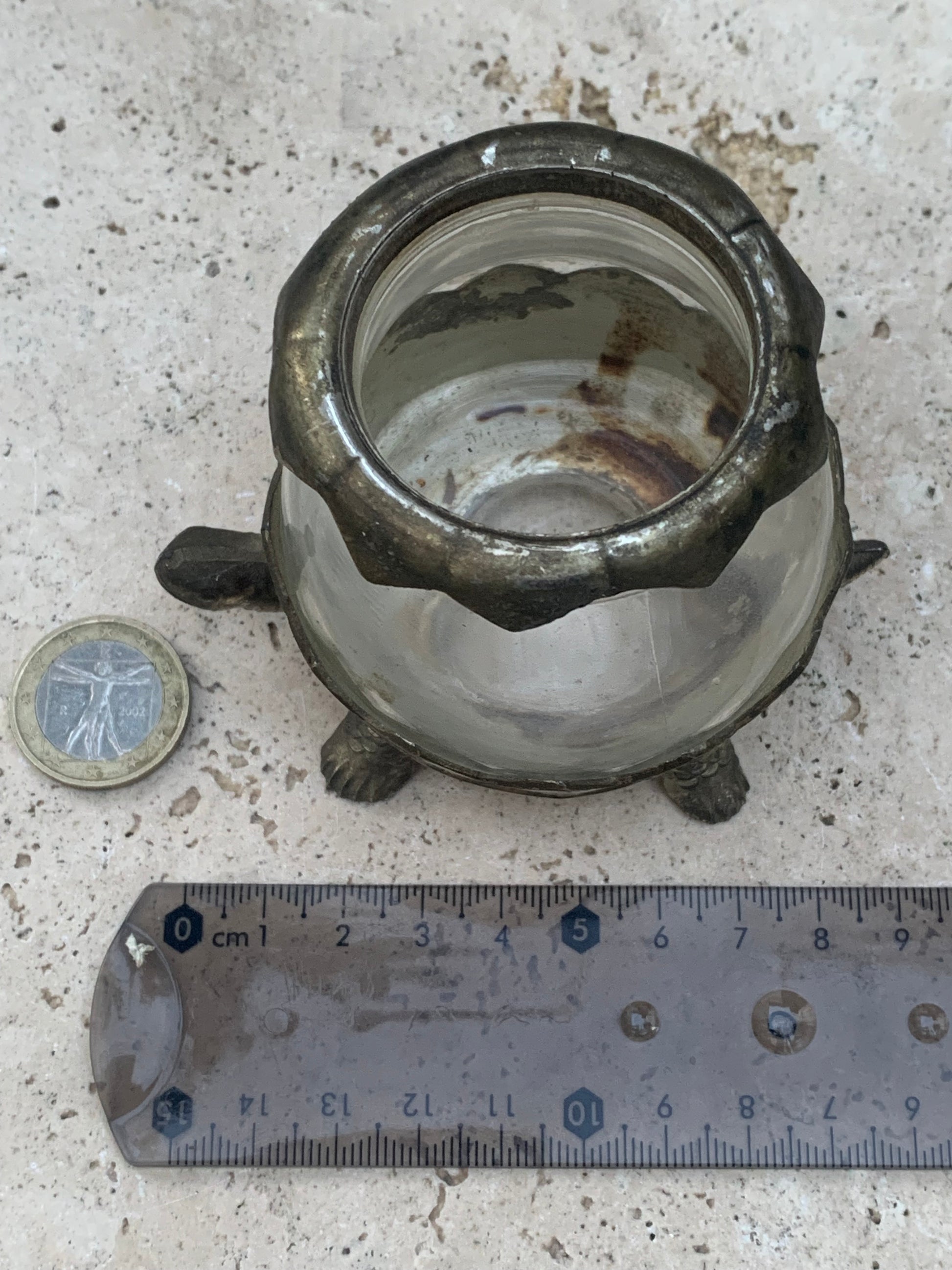 Bougeoir/ Photophore ancien du Japon en forme de tortue - En verre et métal - 92x69x62 cm - 297 gr. !