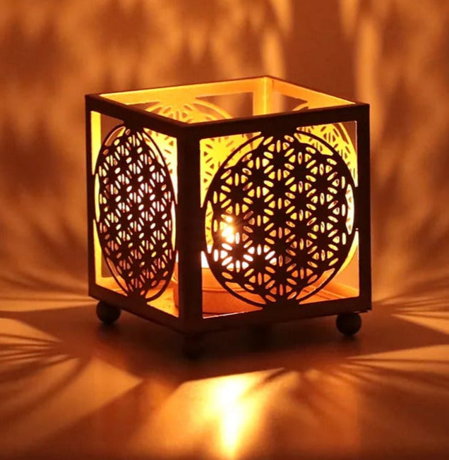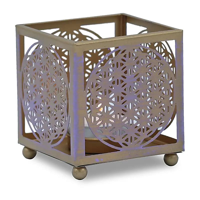 Bougeoir en métal, 8x8 cm - 145 grammes - Convient aux bougies chauffe plat et jusqu'à 4 cm environ ! Avec une superbe fleur de vie !