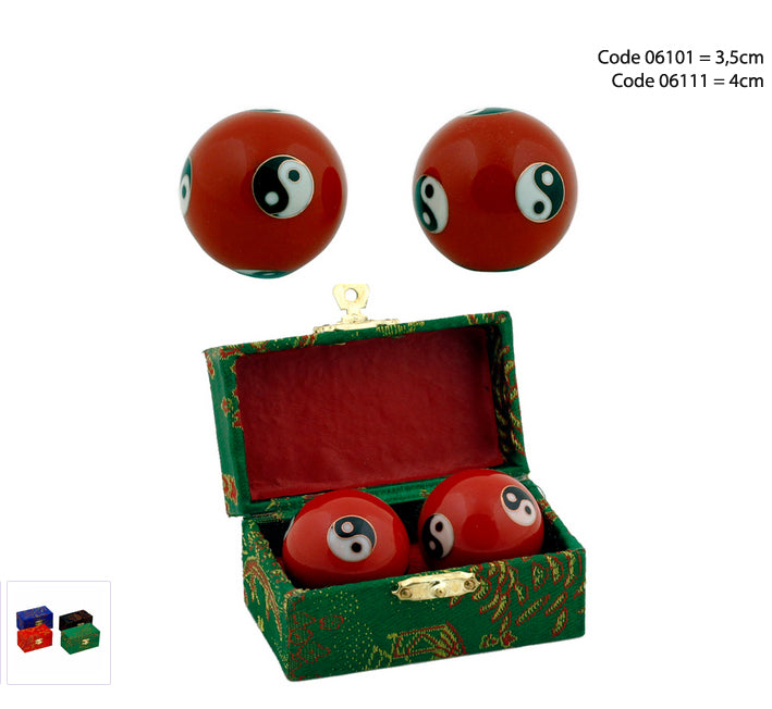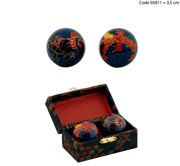 Boules chinoises de santé “sonores” – 6 modèles et 2 tailles au choix : 3,5 ou 4 cm de Ø - Protéger dans un coffret luxueux rouge, bleu ou vert !